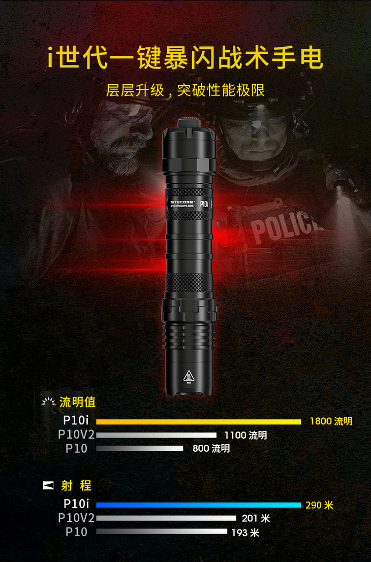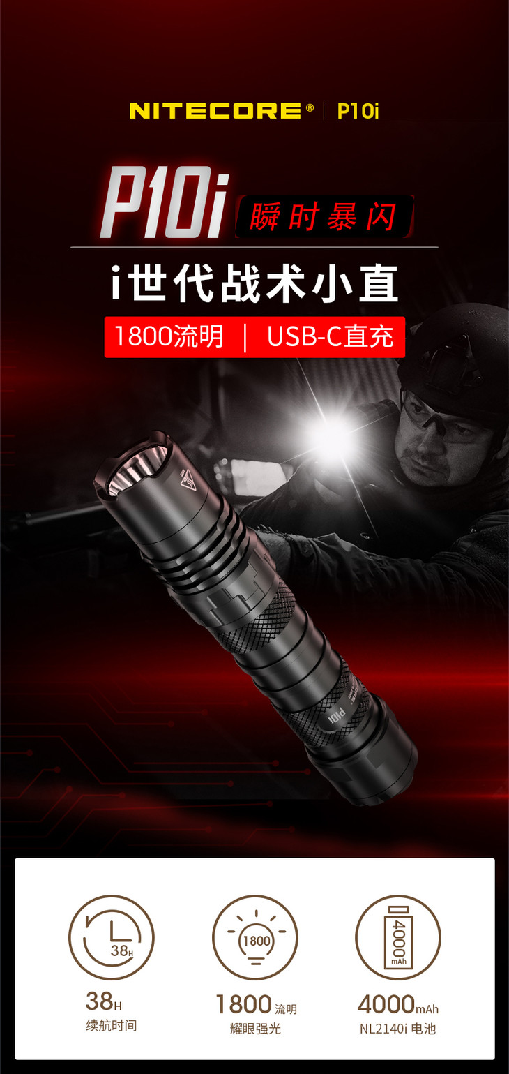 NITECORE奈特科尔P10i一键暴闪type-c充电执勤战术小直手电筒