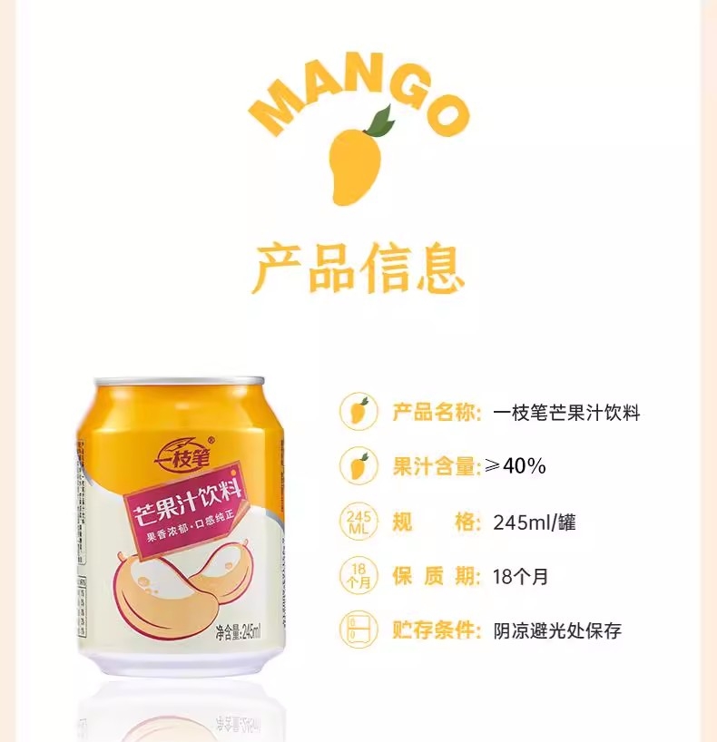 245ml/罐 一支笔 芒果汁饮料 浓缩果味果汁饮品 口感纯正
