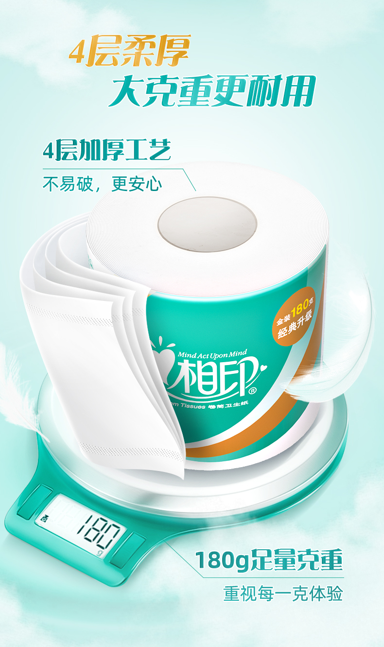 BT810(箱装)心相印180克27粒装四层卷筒卫生纸