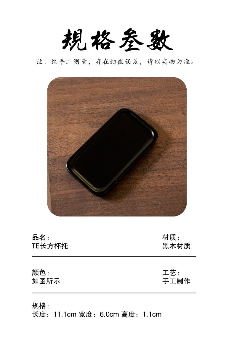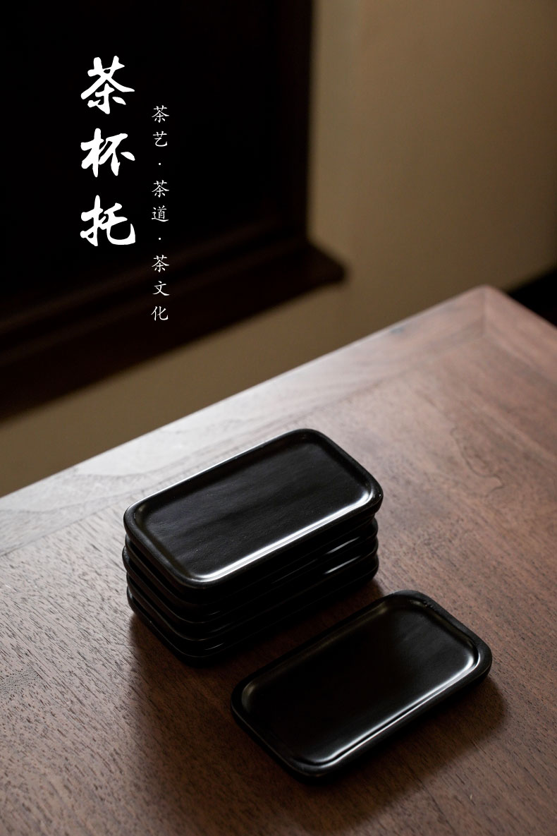 TE长方杯托/茶杯垫 杯垫/茶托组 黑木茶托功夫茶具茶道配件杯