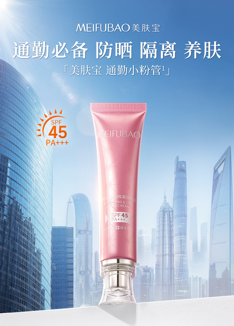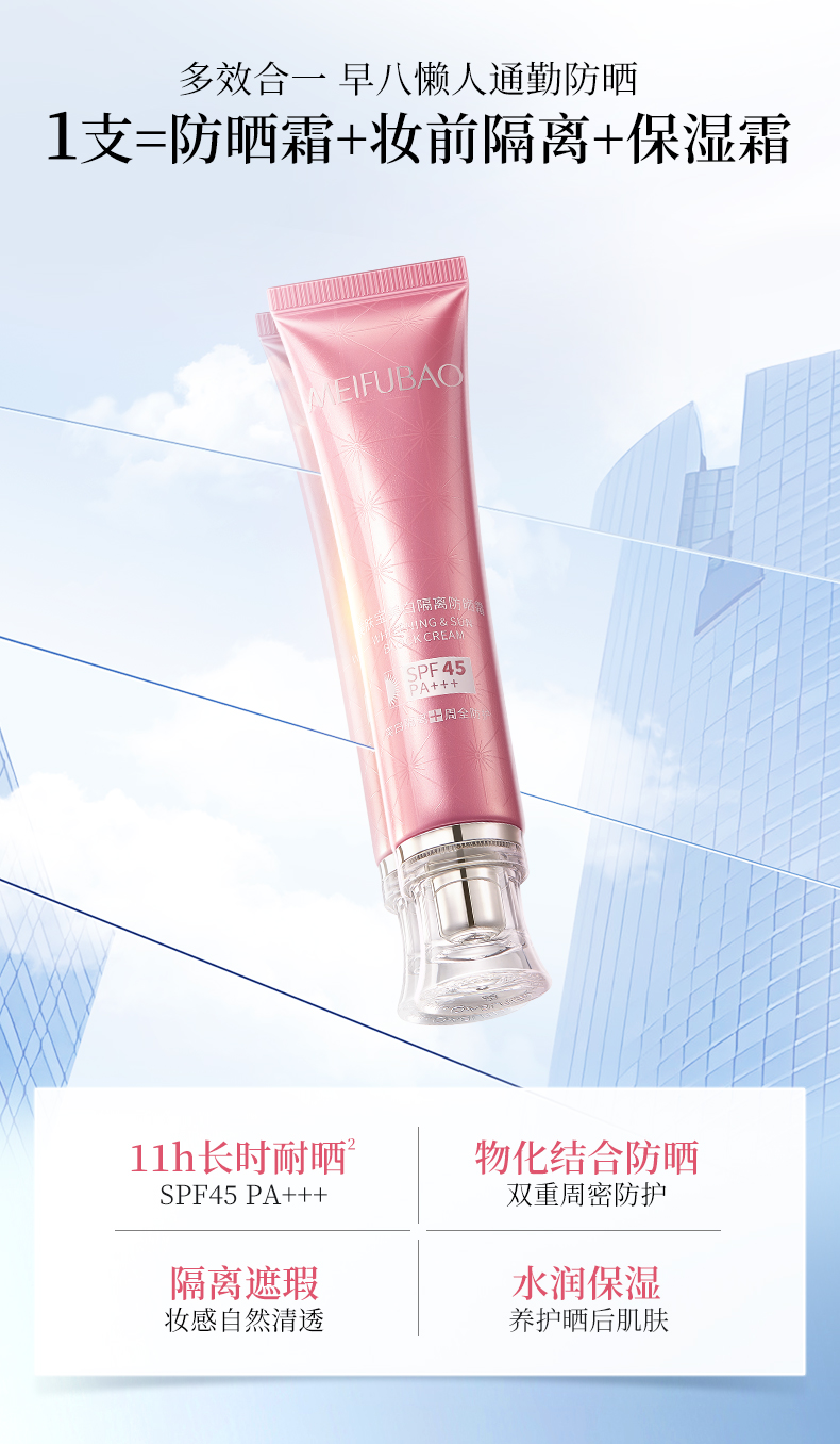 【年货节直降·45倍/50倍】美肤宝美白隔离防晒霜(小粉管)SPF45/50 PA+++ 40g 遮瑕三合一面部清爽户外防紫外线防晒乳
