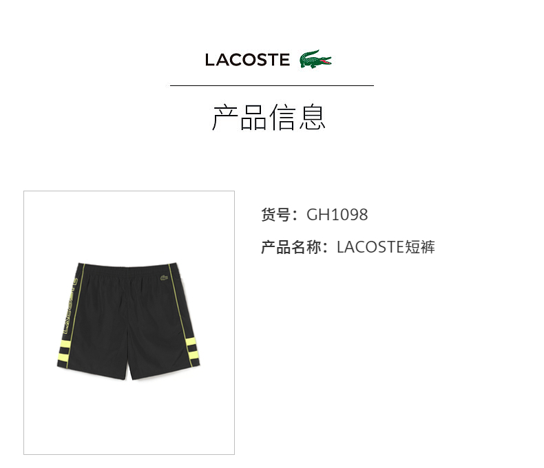 【海南专供价】Lacoste法国鳄鱼男士新款撞色运动短裤GH1879-98