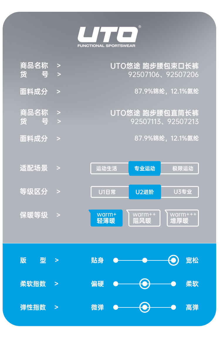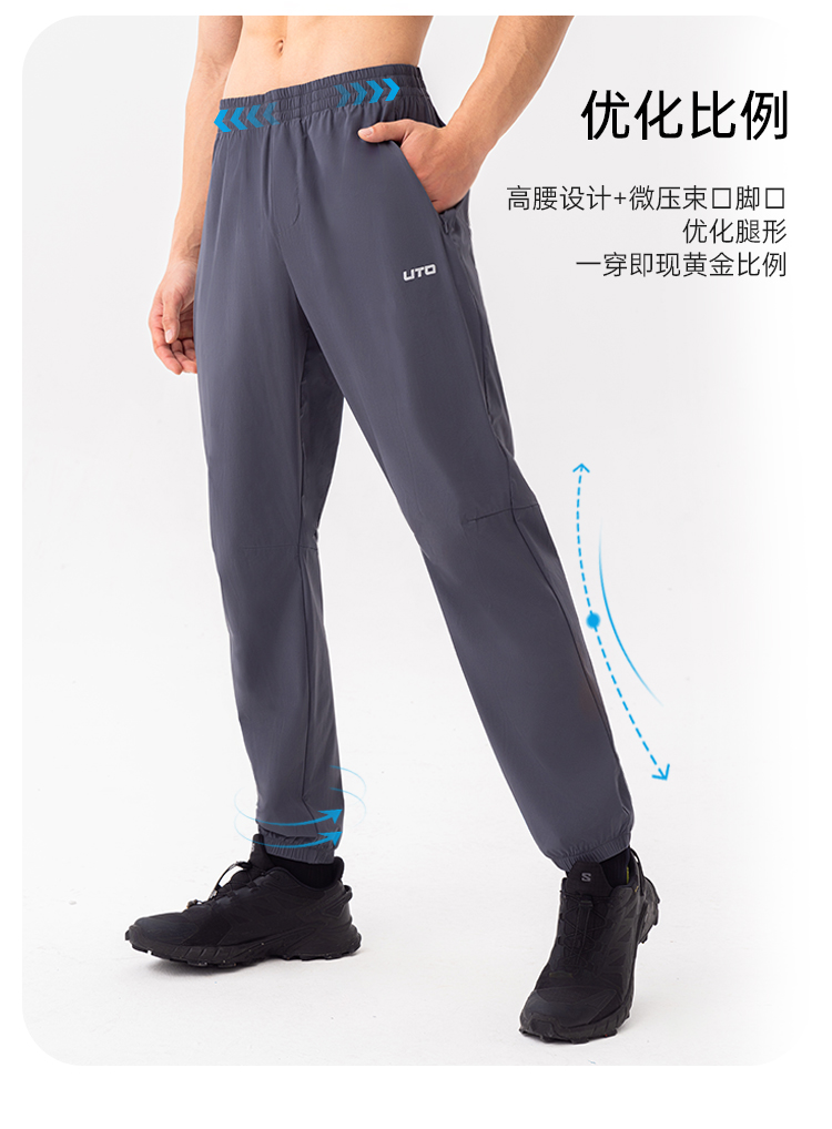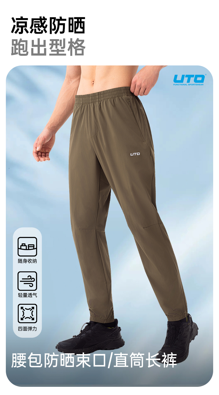 UTO/悠途防晒束口直筒腰包跑步长裤春夏薄款速干男女户外运动裤子【活动款】