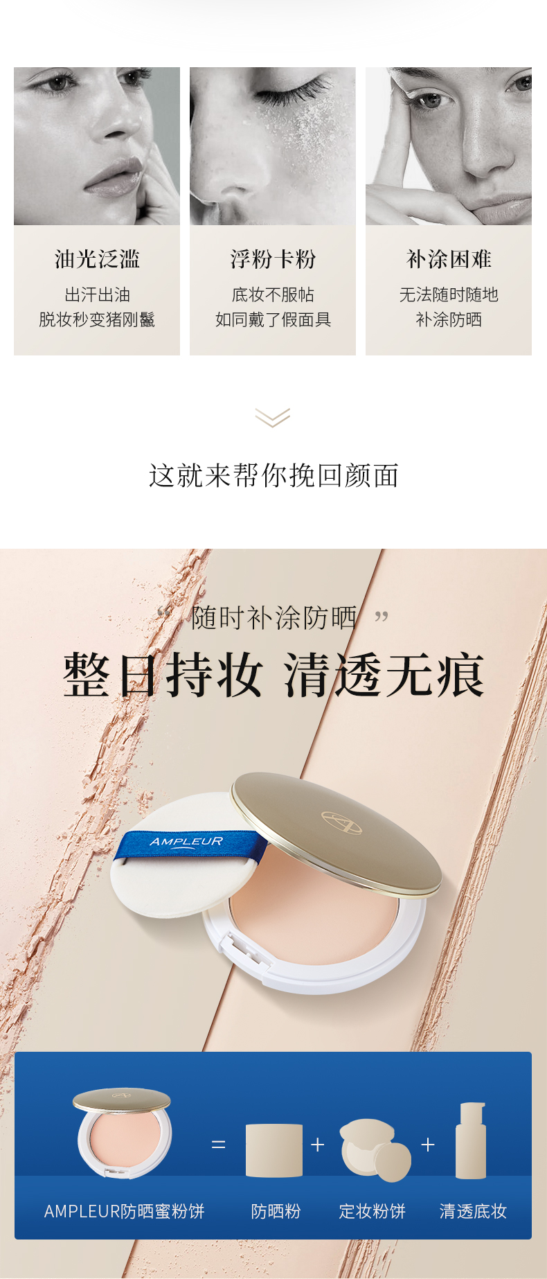 Ampleur防晒粉饼定妆防晒SPF50蜜粉饼持久控油