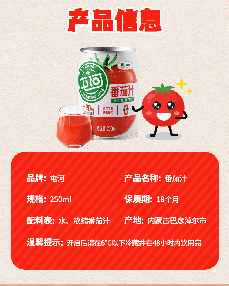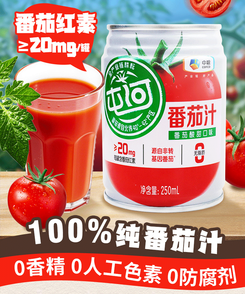 中粮屯河无糖番茄汁250ml果蔬汁(新老包装随机)