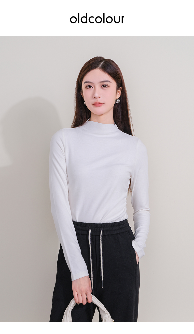 oldcolour欧珂冬季新款时尚修身纯色半高领长袖T恤女P440202A1