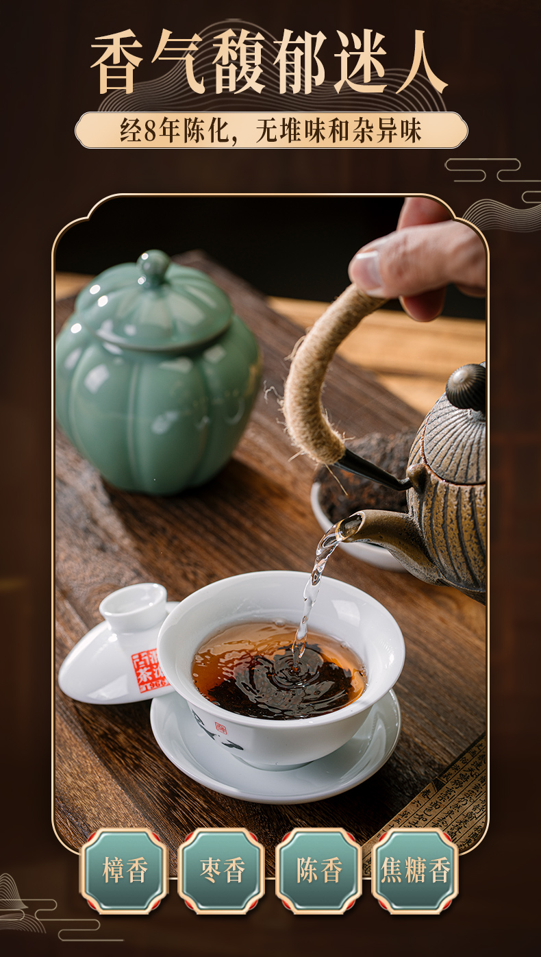 澜沧古茶2024年金古木香干仓老熟茶天青瓷罐装100g