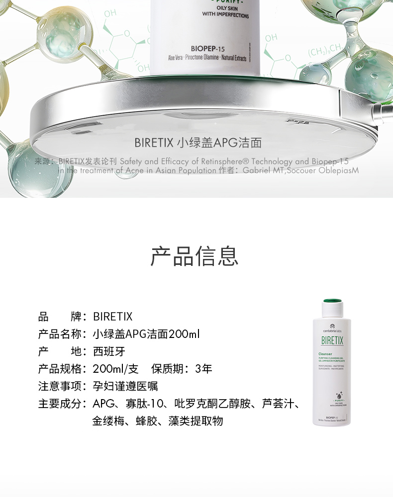 【郑州仓】西班牙BIRETIX小绿盖APG抗痘洁面 200ml/瓶