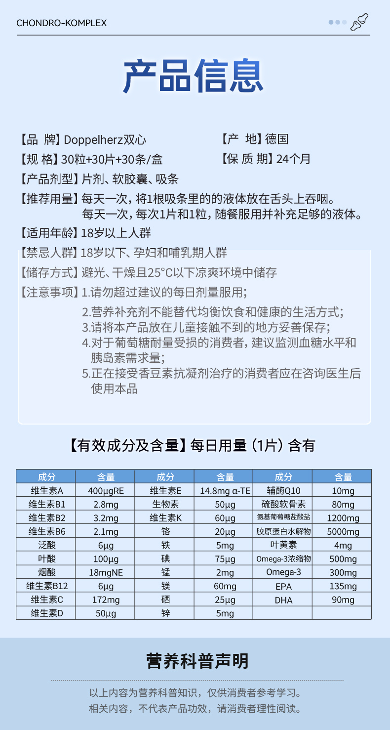 【德国双心】关节营养包胶囊中老年氨糖软骨素补充剂 两盒装(临期至26.7)