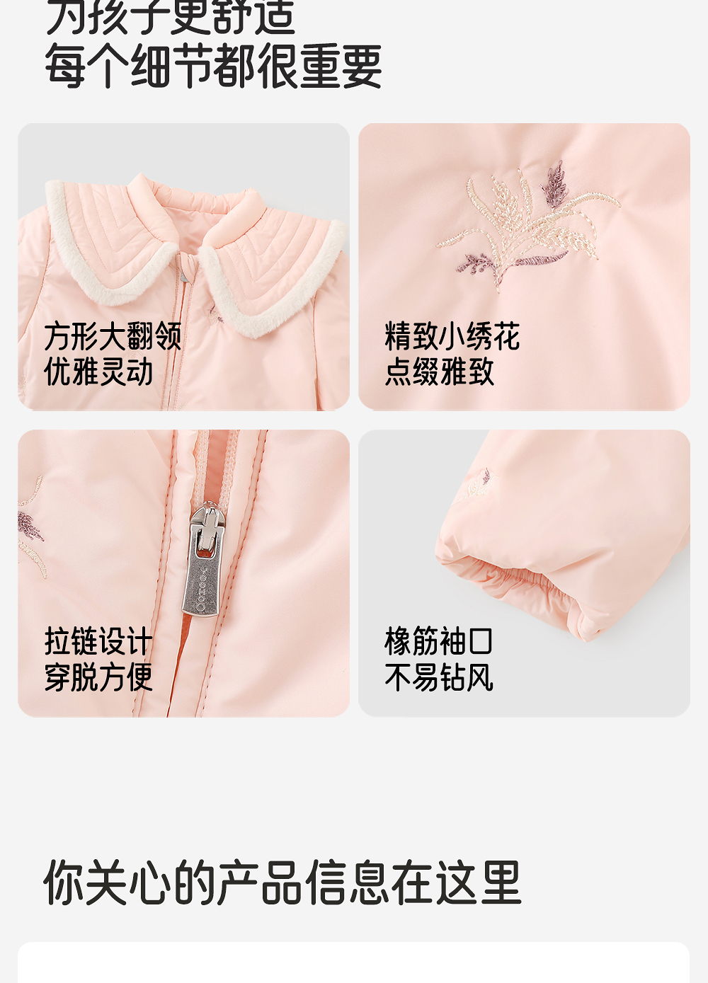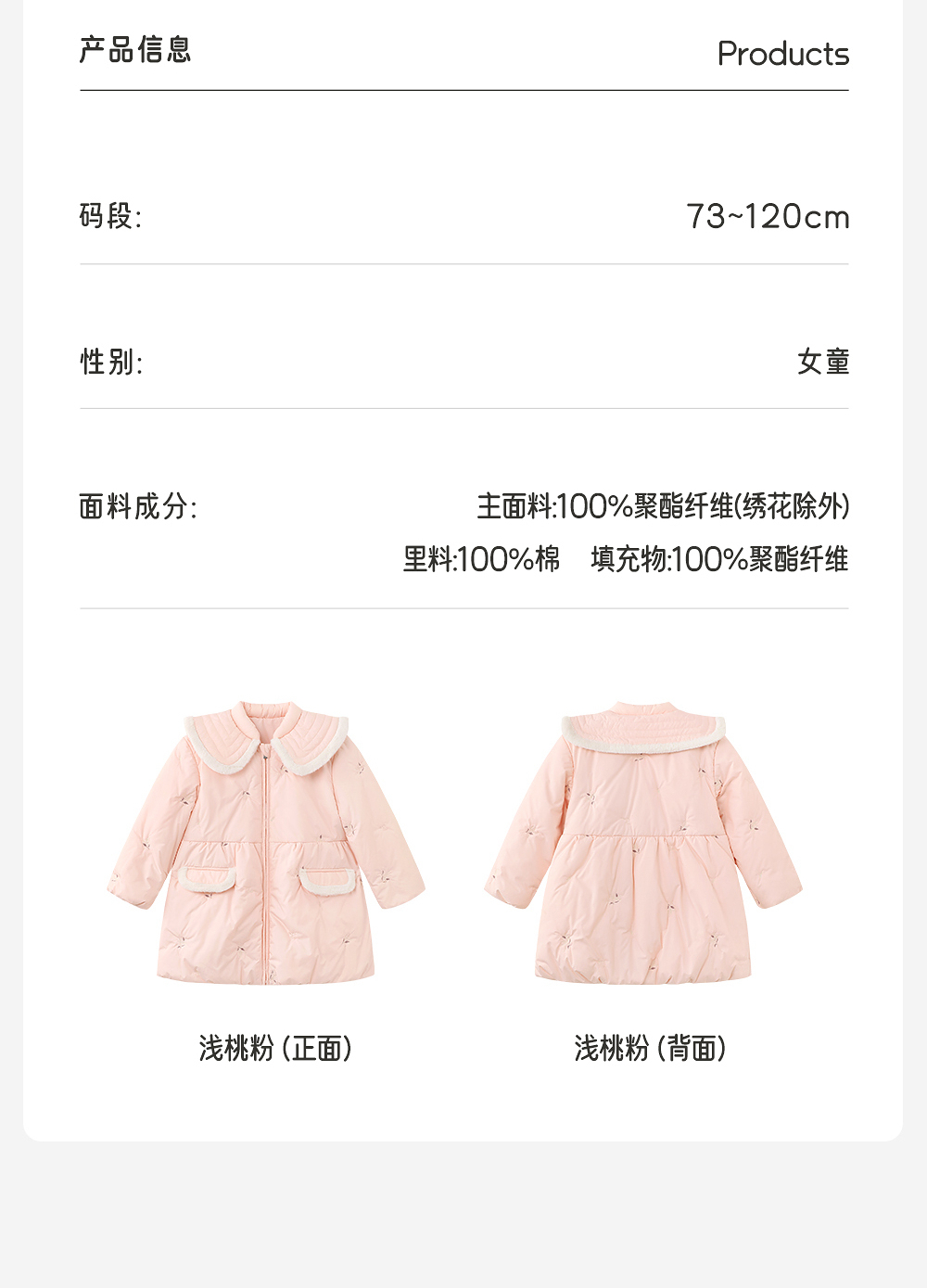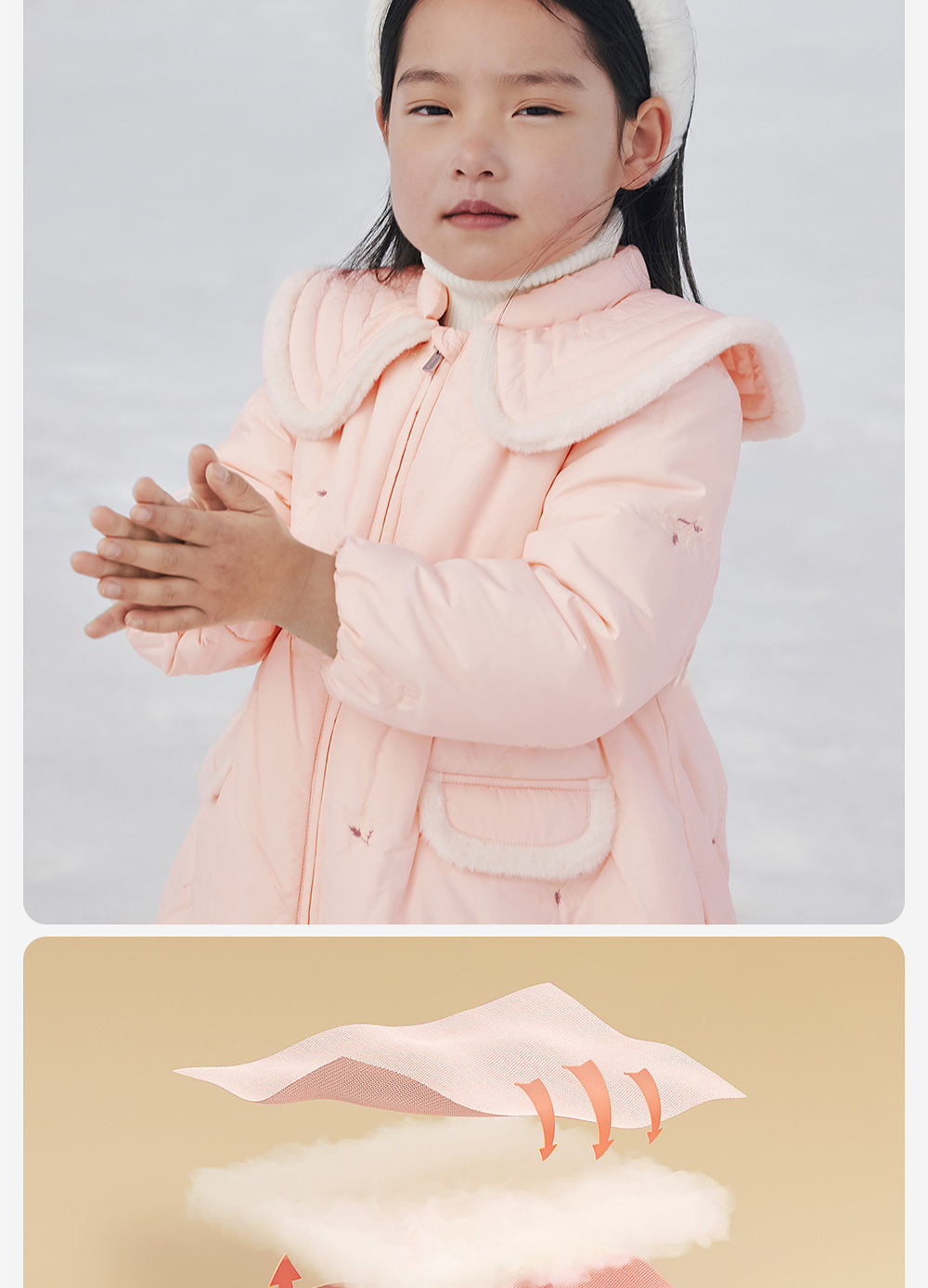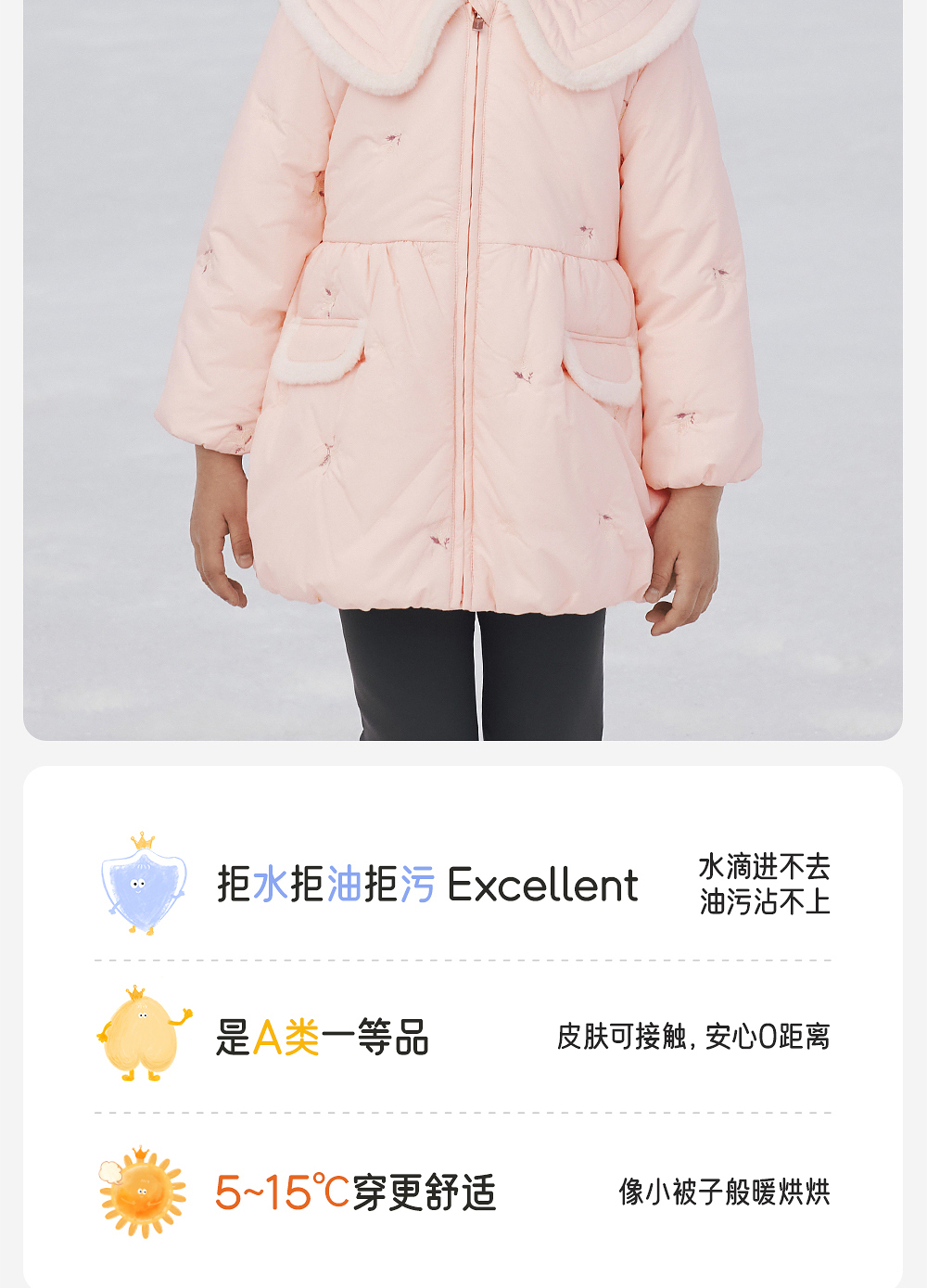 英氏儿童外套冬季三防保暖女宝宝长外套夹克茄克新款YRWQJ4R033A