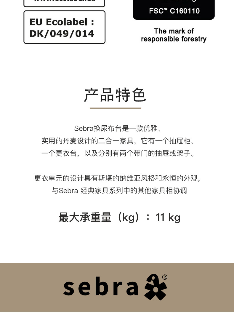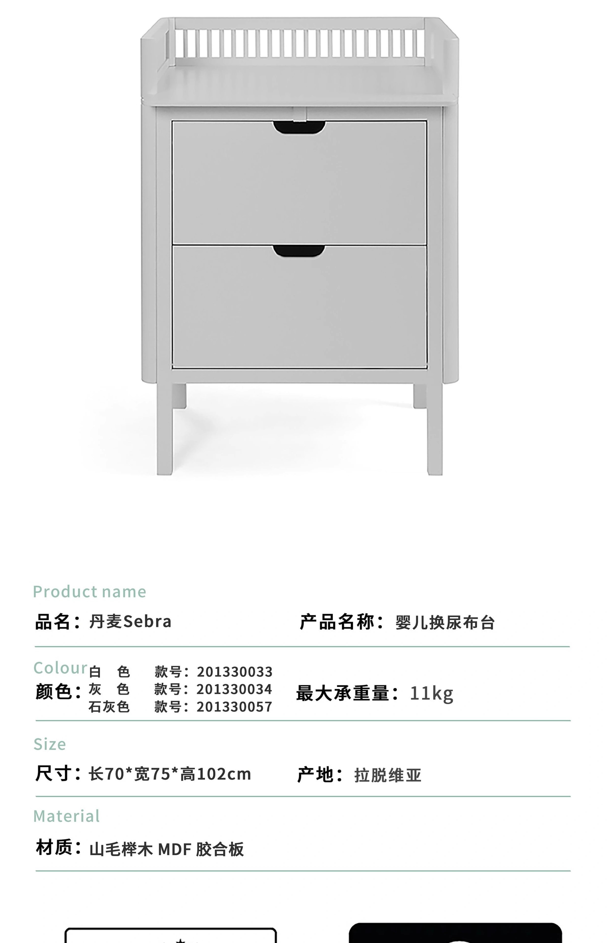 丹麦Sebra 新生婴儿护理台 换尿布台 附抽屉