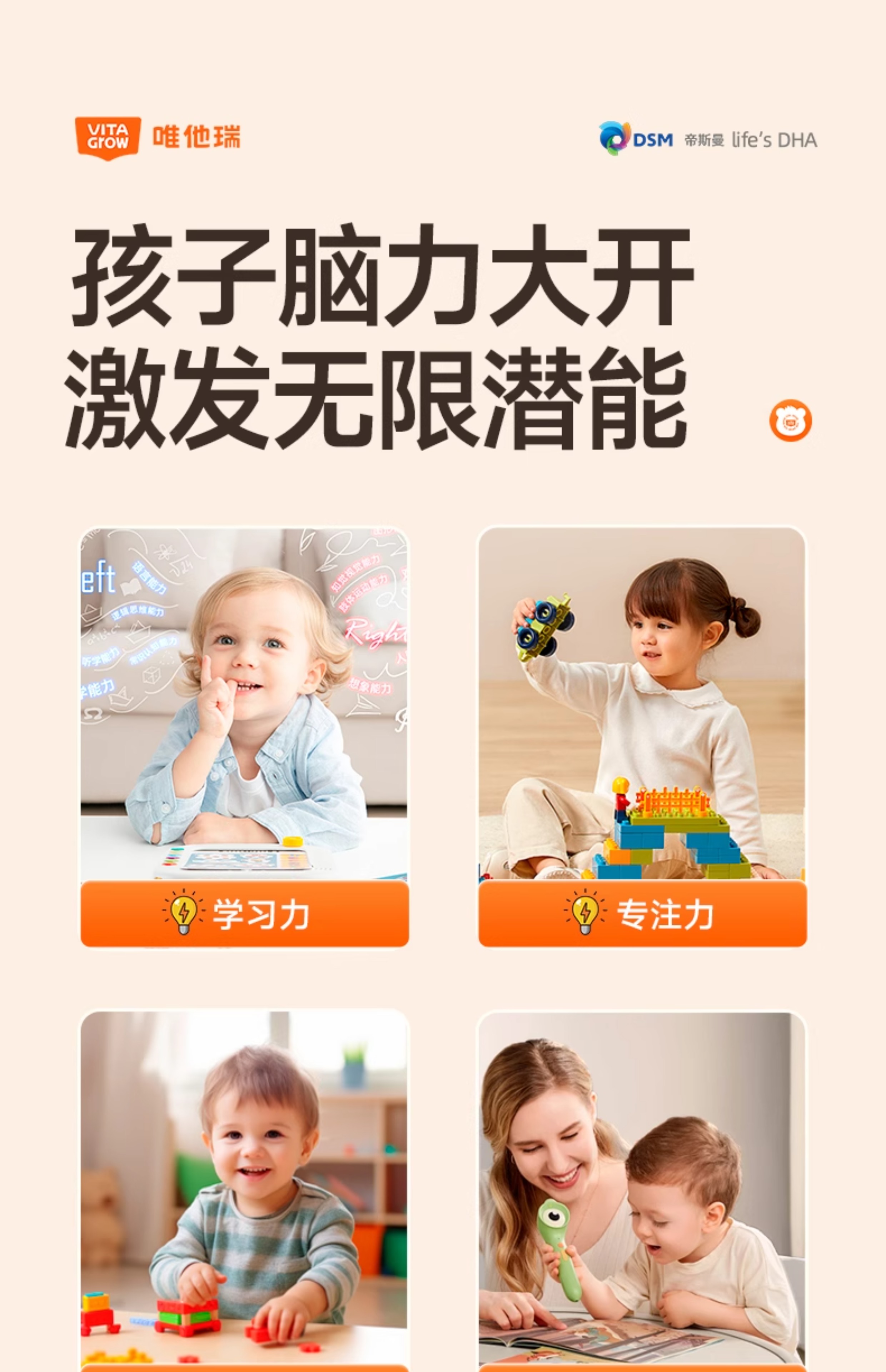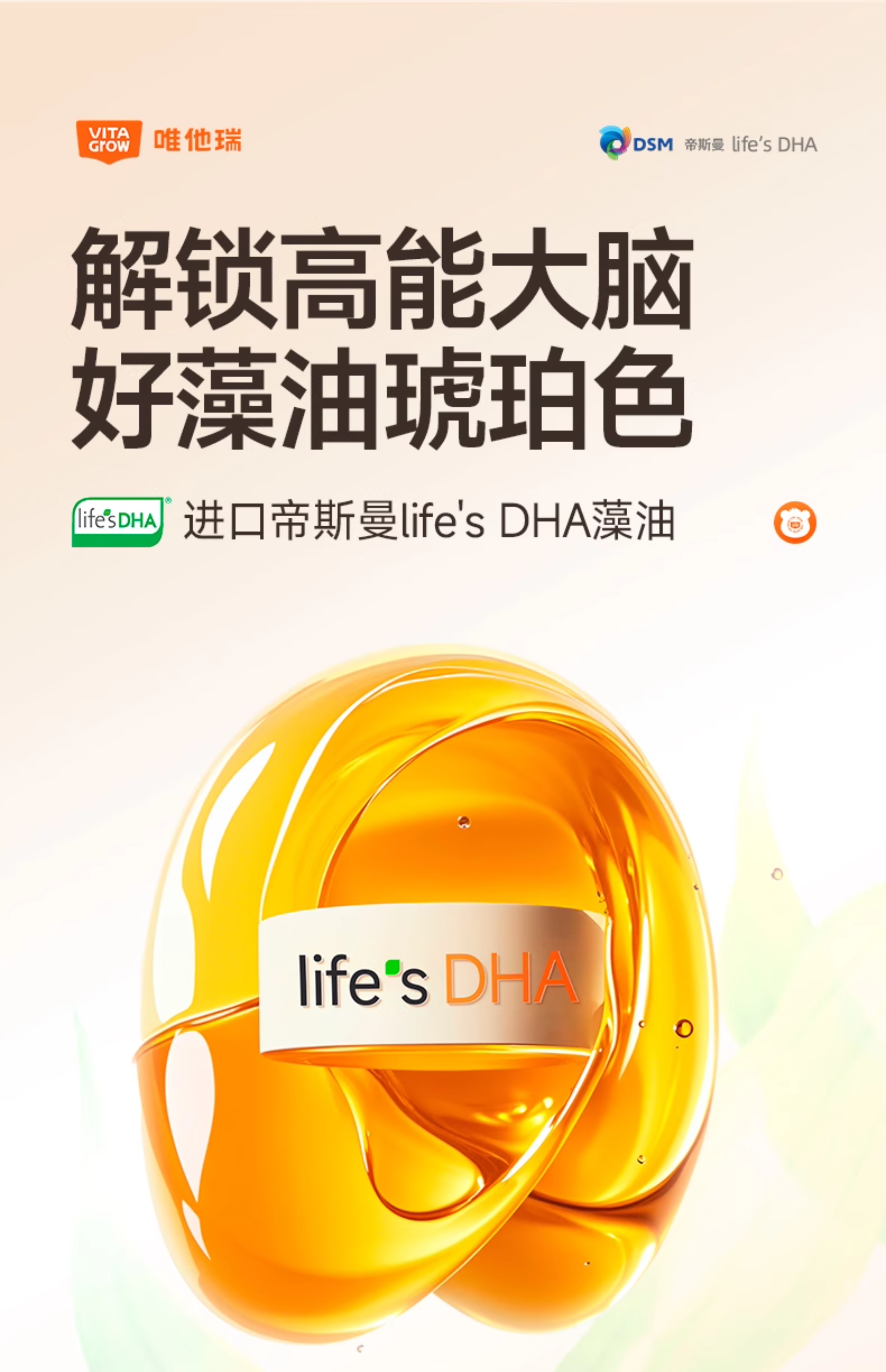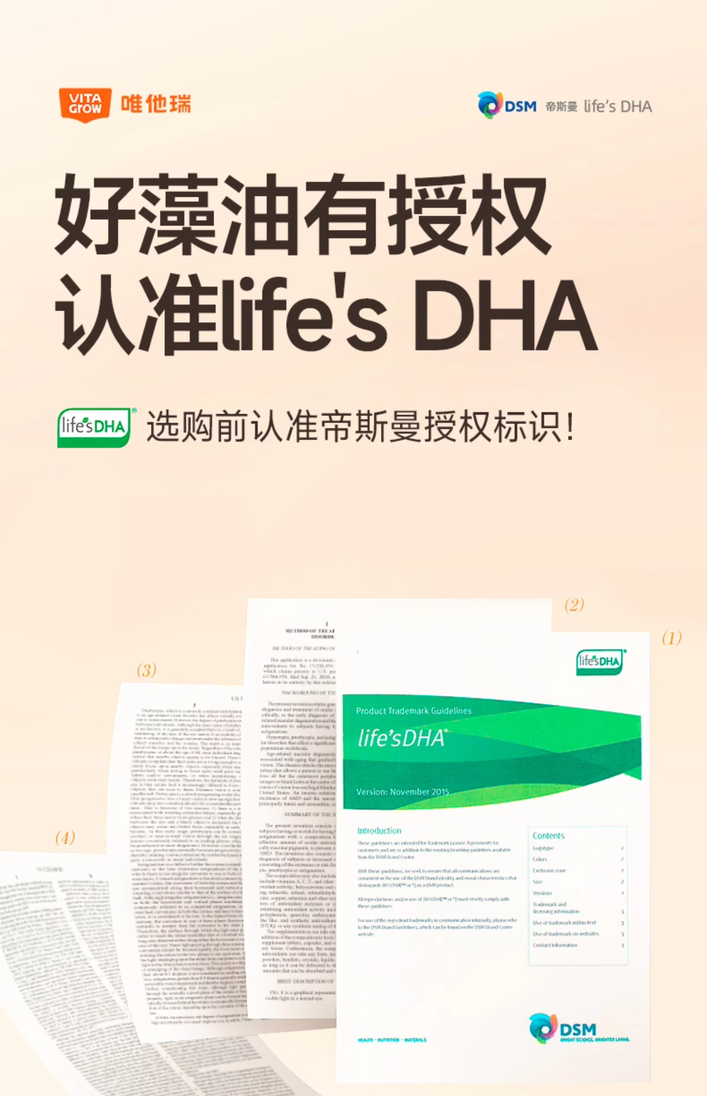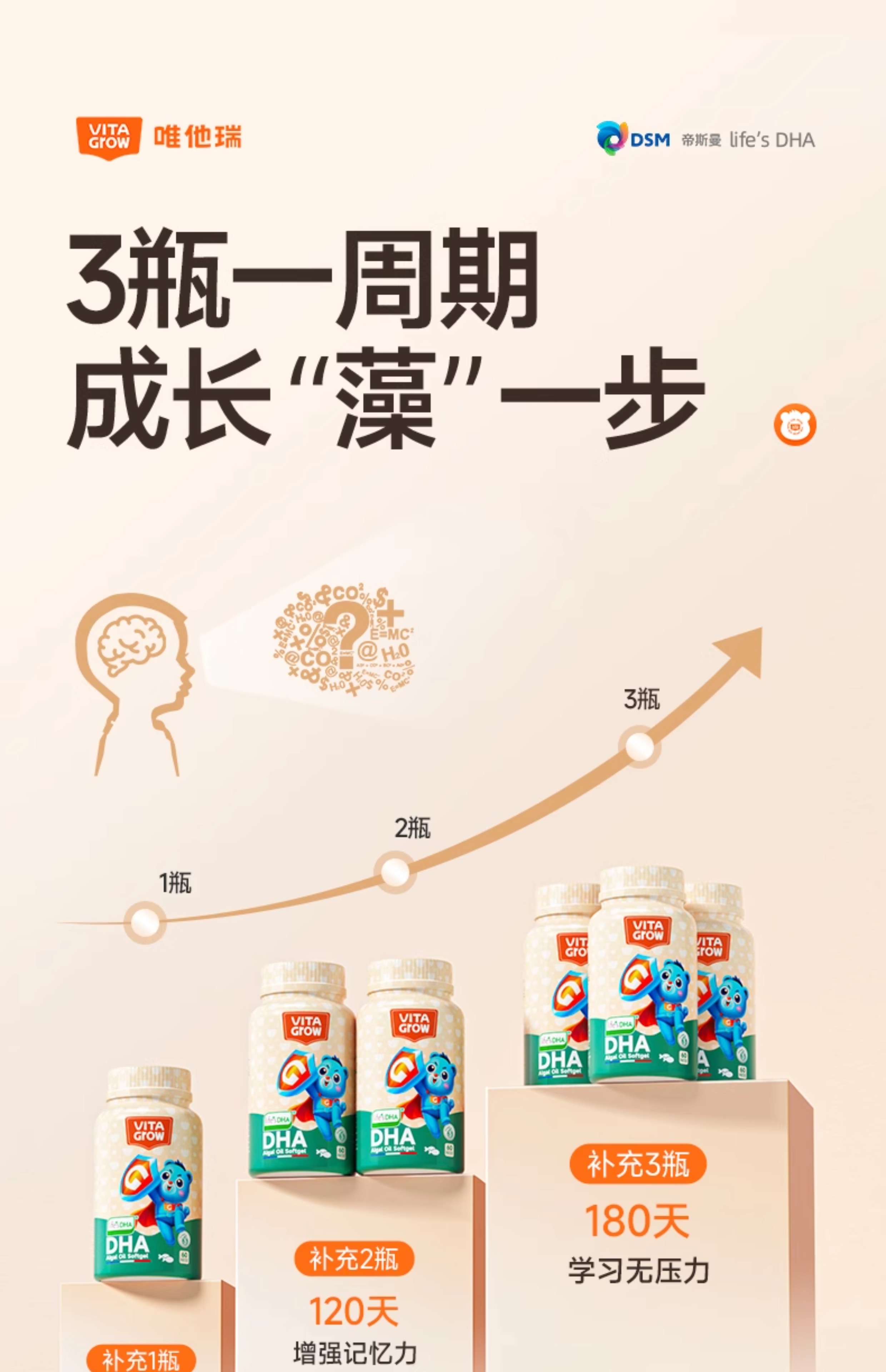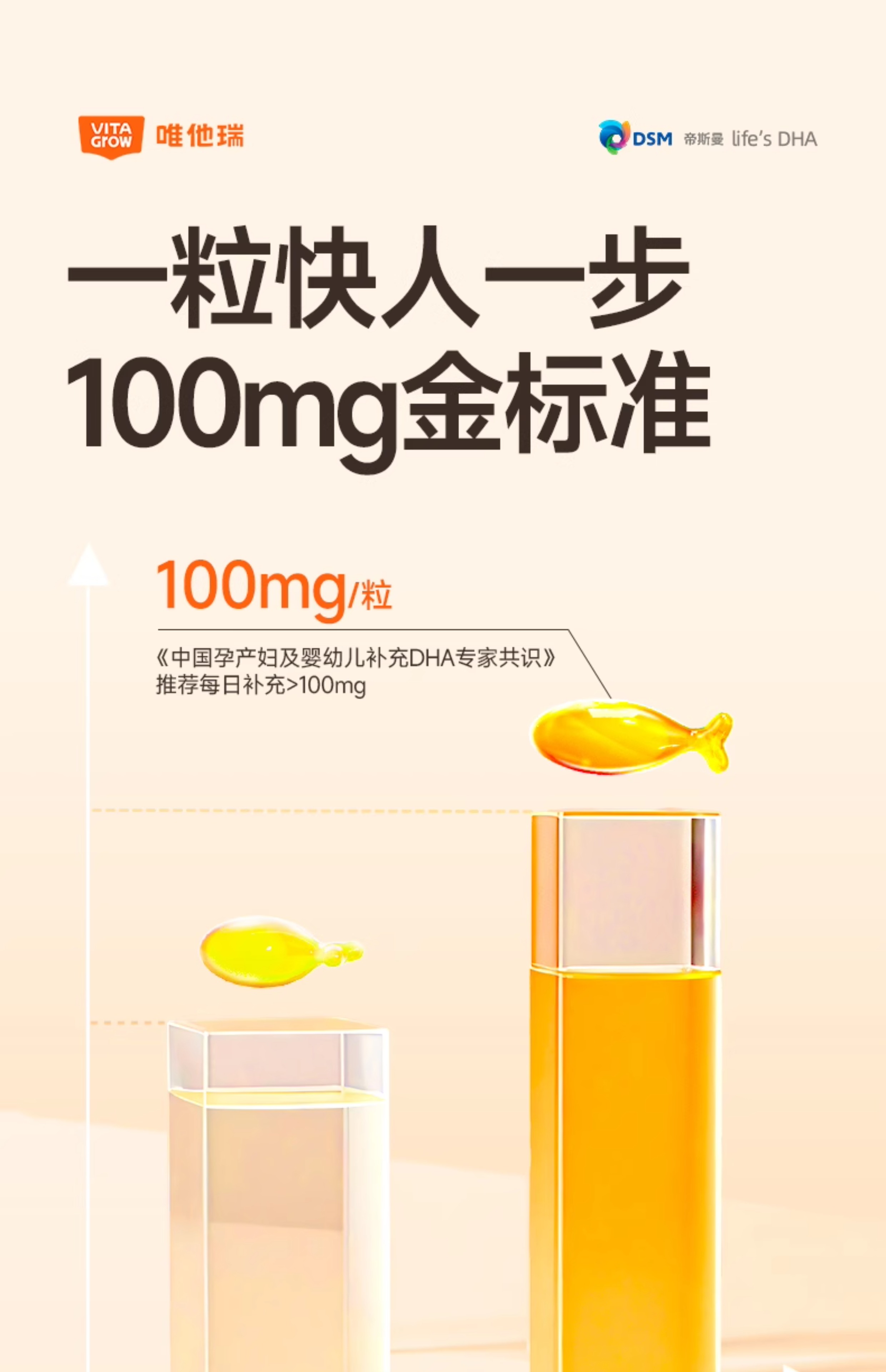 VITA Grow 藻油DHA软胶囊 60粒/瓶 金标级别窛氏隐甲藻婴幼儿低EPA 孩子脑力大开 激发无限潜能
