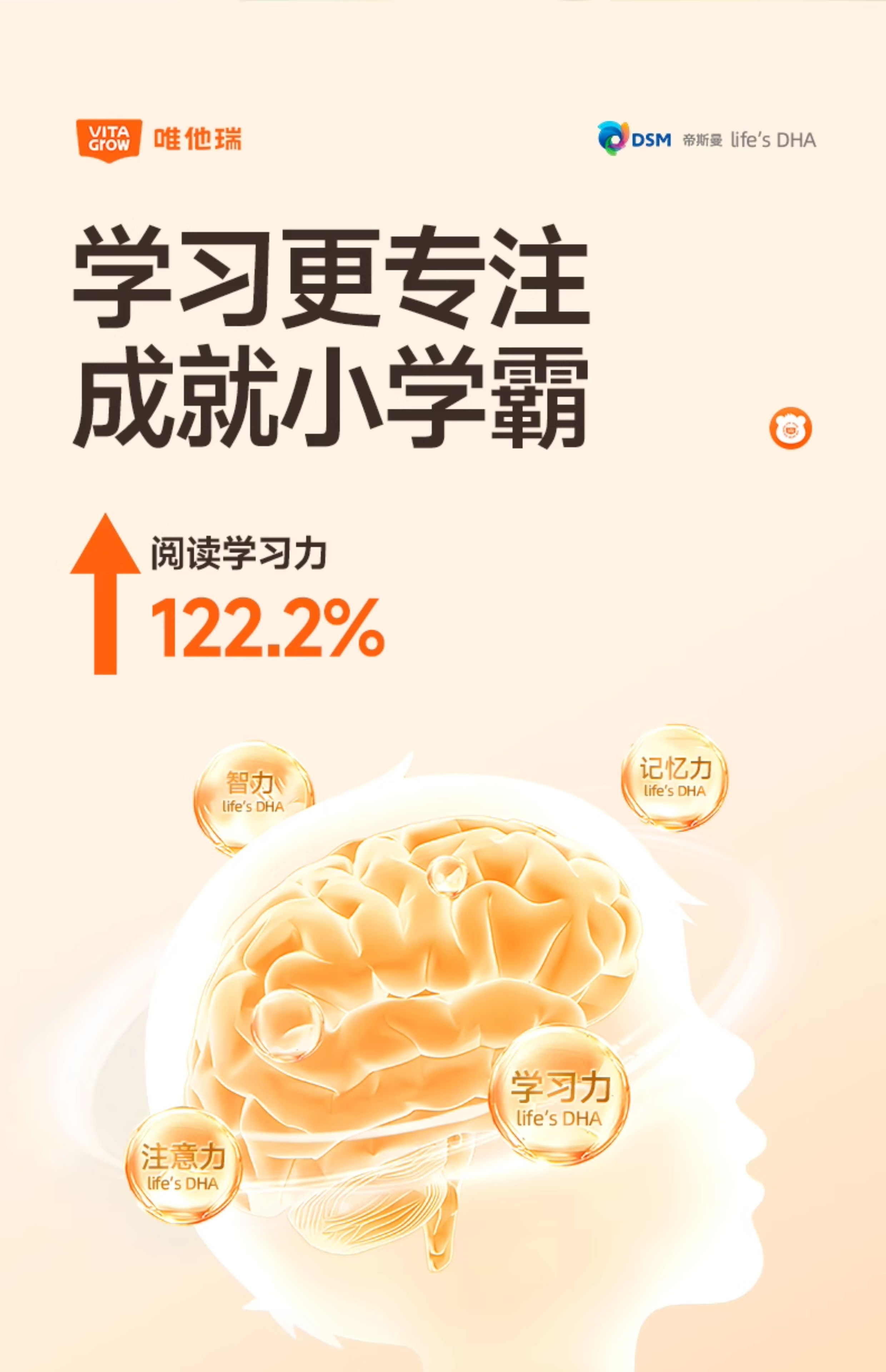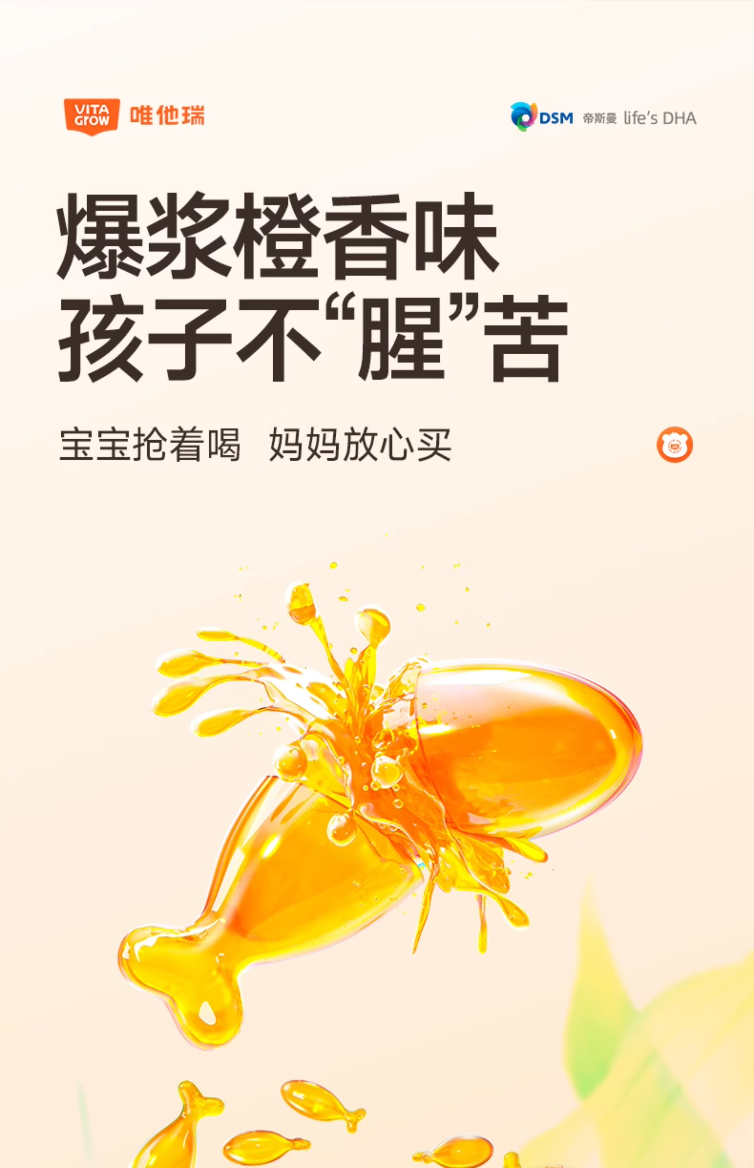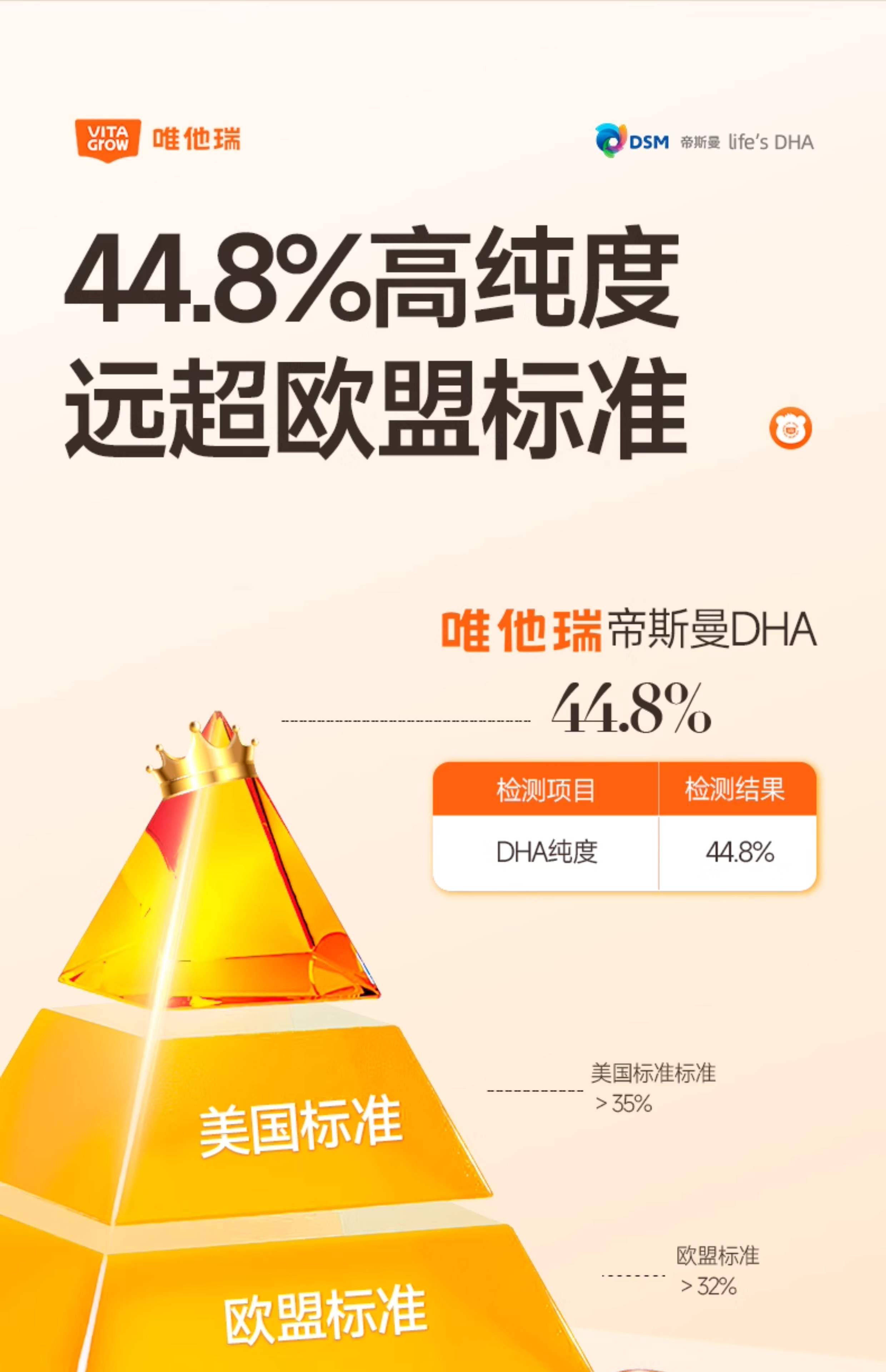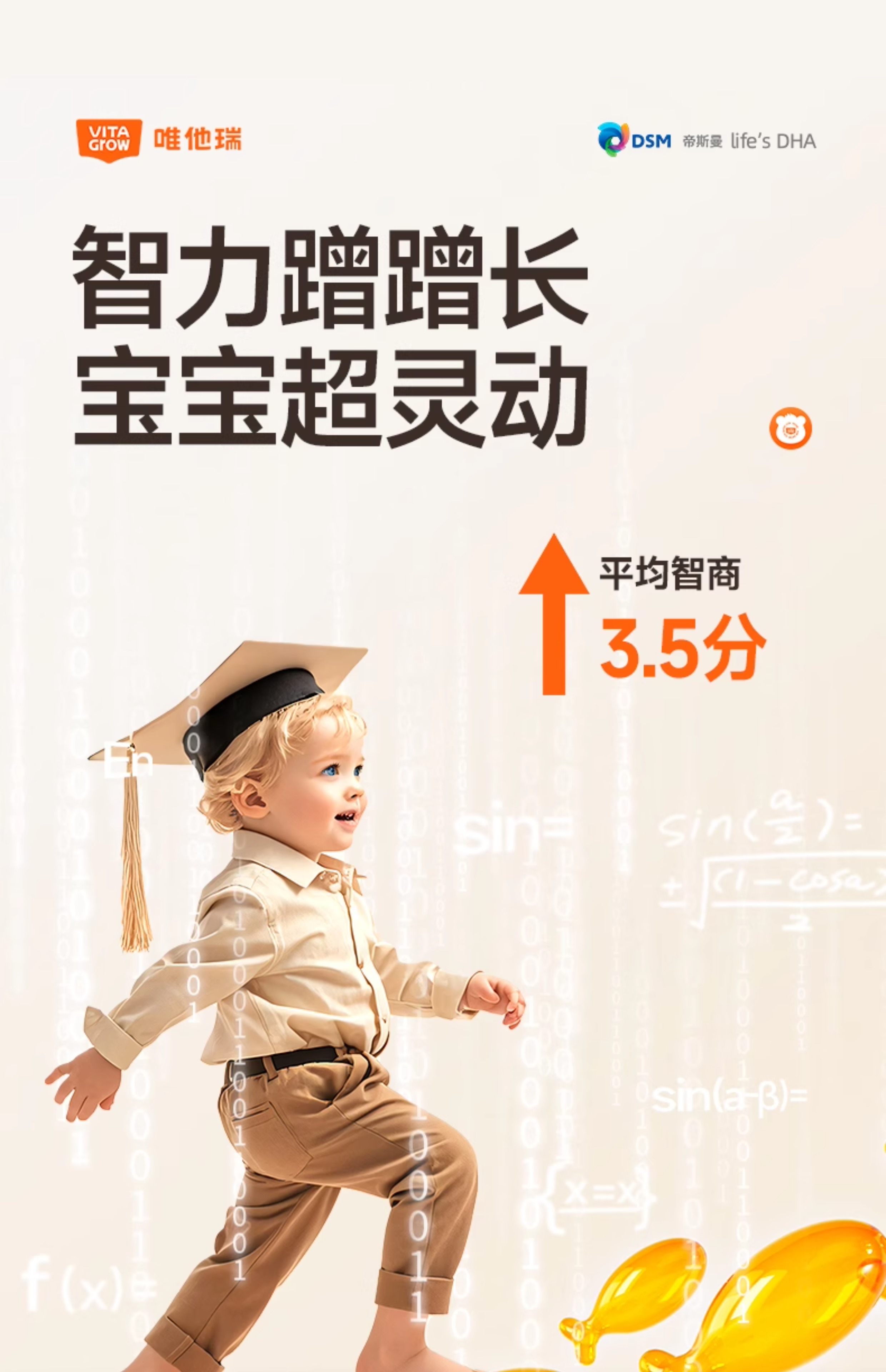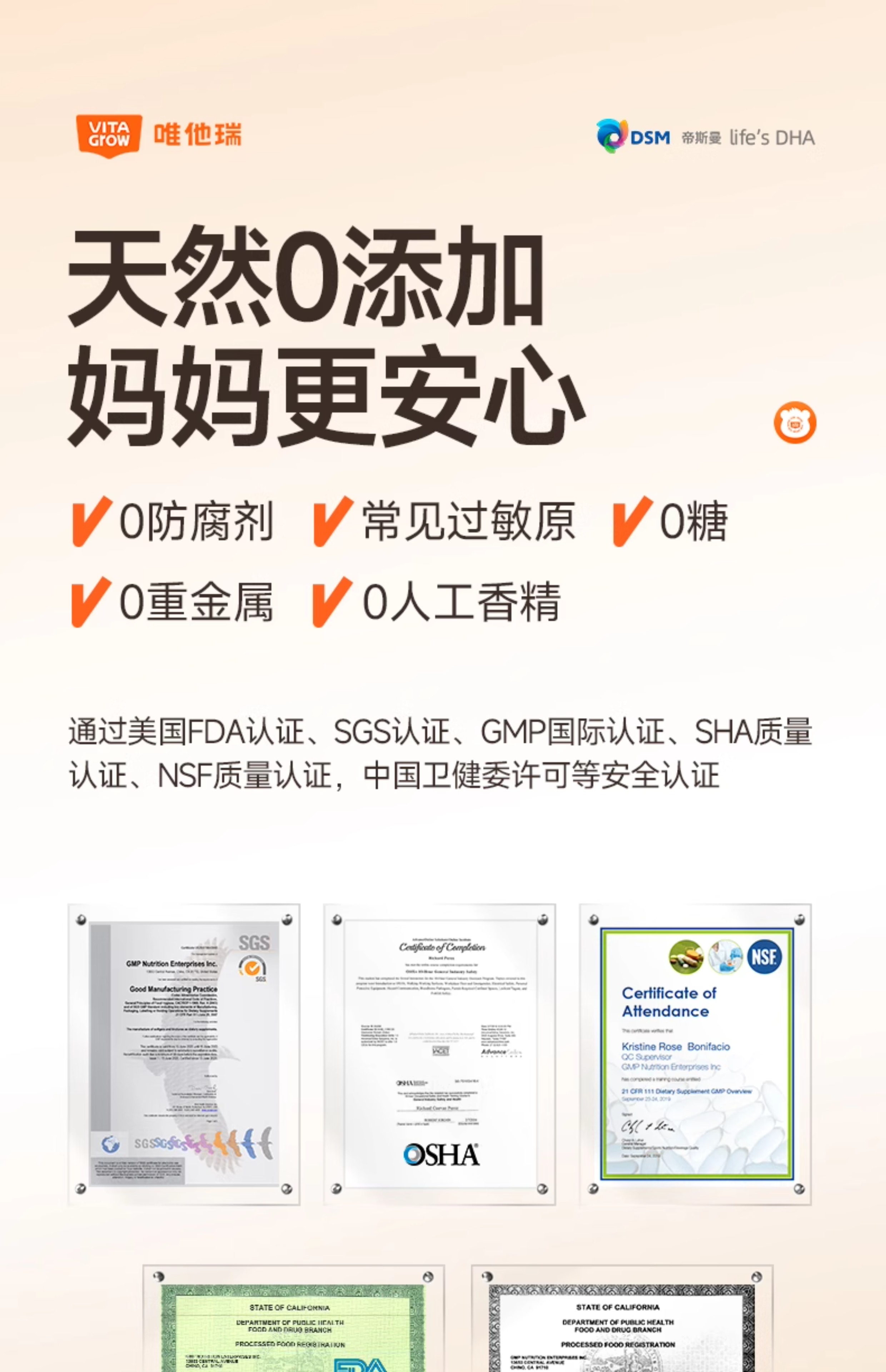 VITA Grow 藻油DHA软胶囊 60粒/瓶 金标级别窛氏隐甲藻婴幼儿低EPA 孩子脑力大开 激发无限潜能