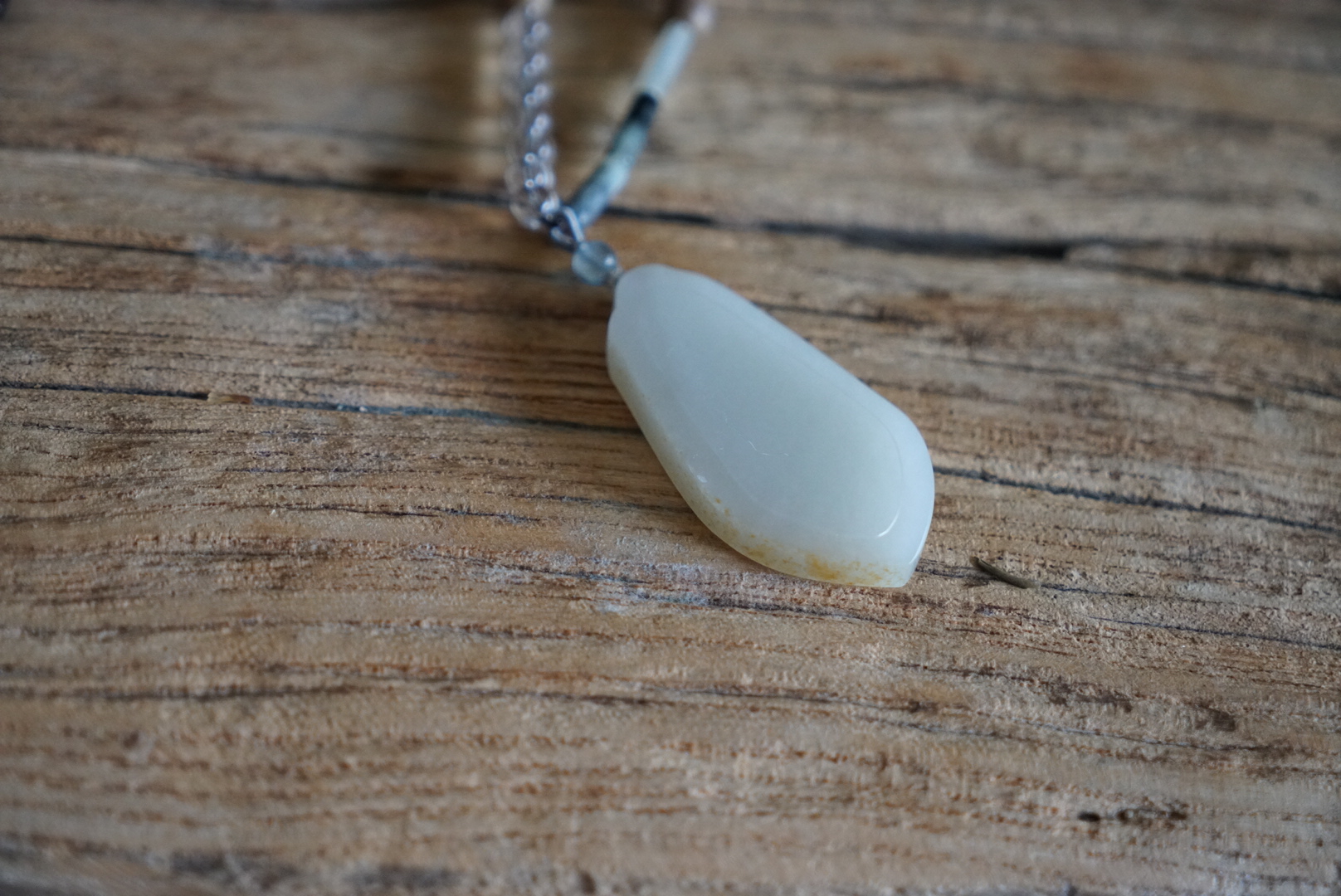 正宗新疆籽料和田玉·沉香原创项链。颜色厚度大小润度皮色都不错的一块和田玉,性价比非常非常高。现在青海料都要一万多了,要求不要太高买到这块籽料,真的捡漏了。这块我前面收的一直放着没拍照没销售,这价格现在看看,性价比太高了。