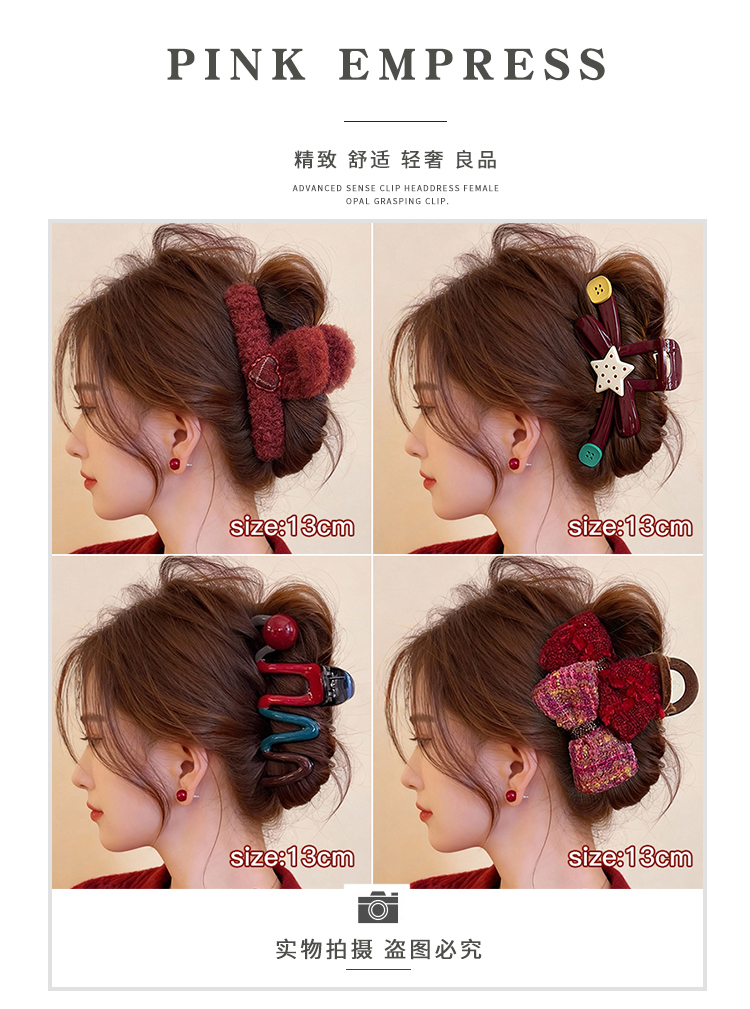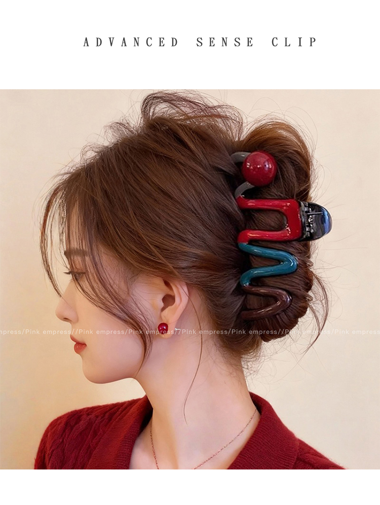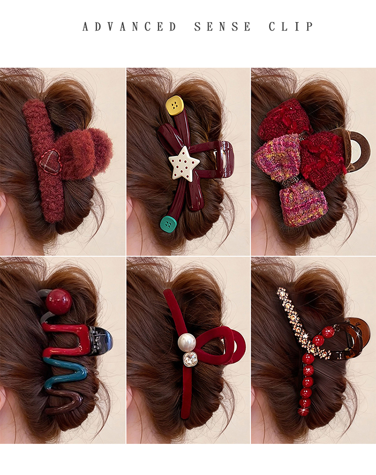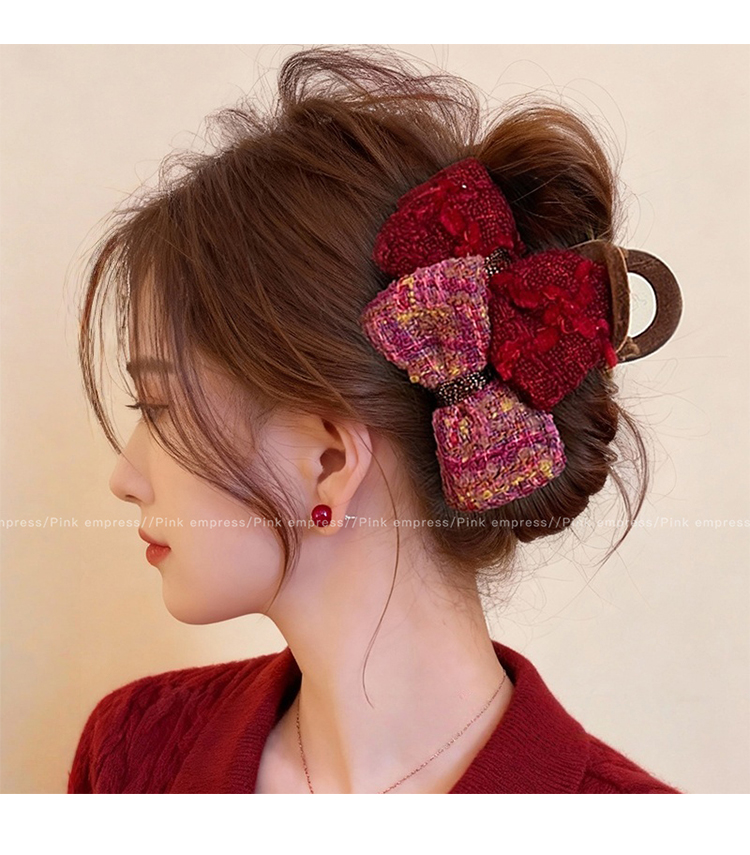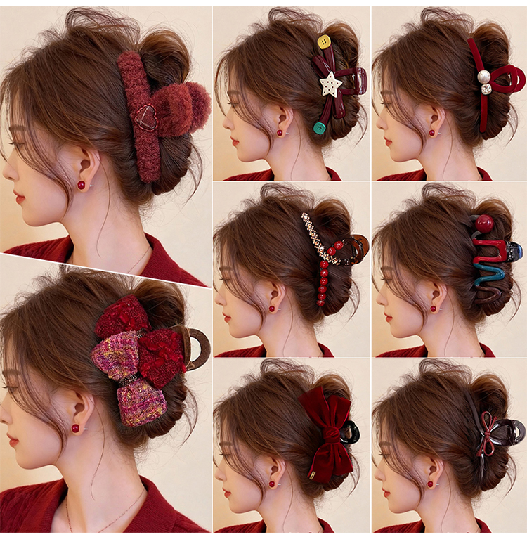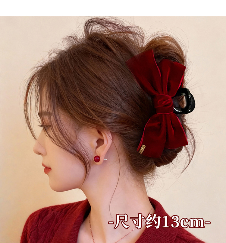2026年新年红色蝴蝶结抓夹大号发夹女新款高级感鲨鱼夹子后脑勺头饰