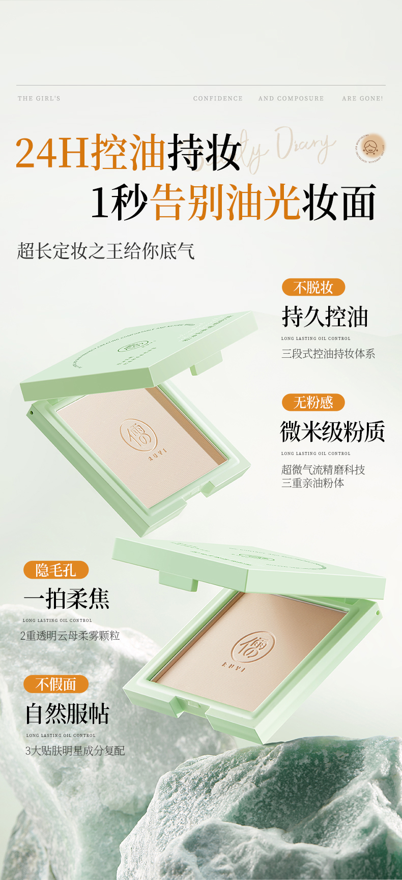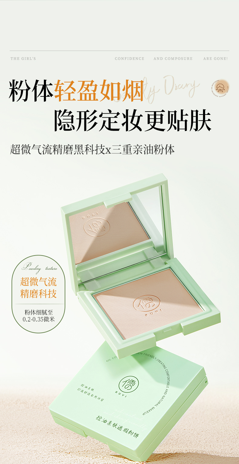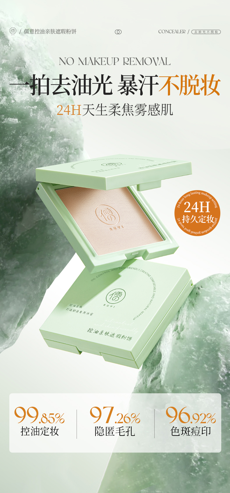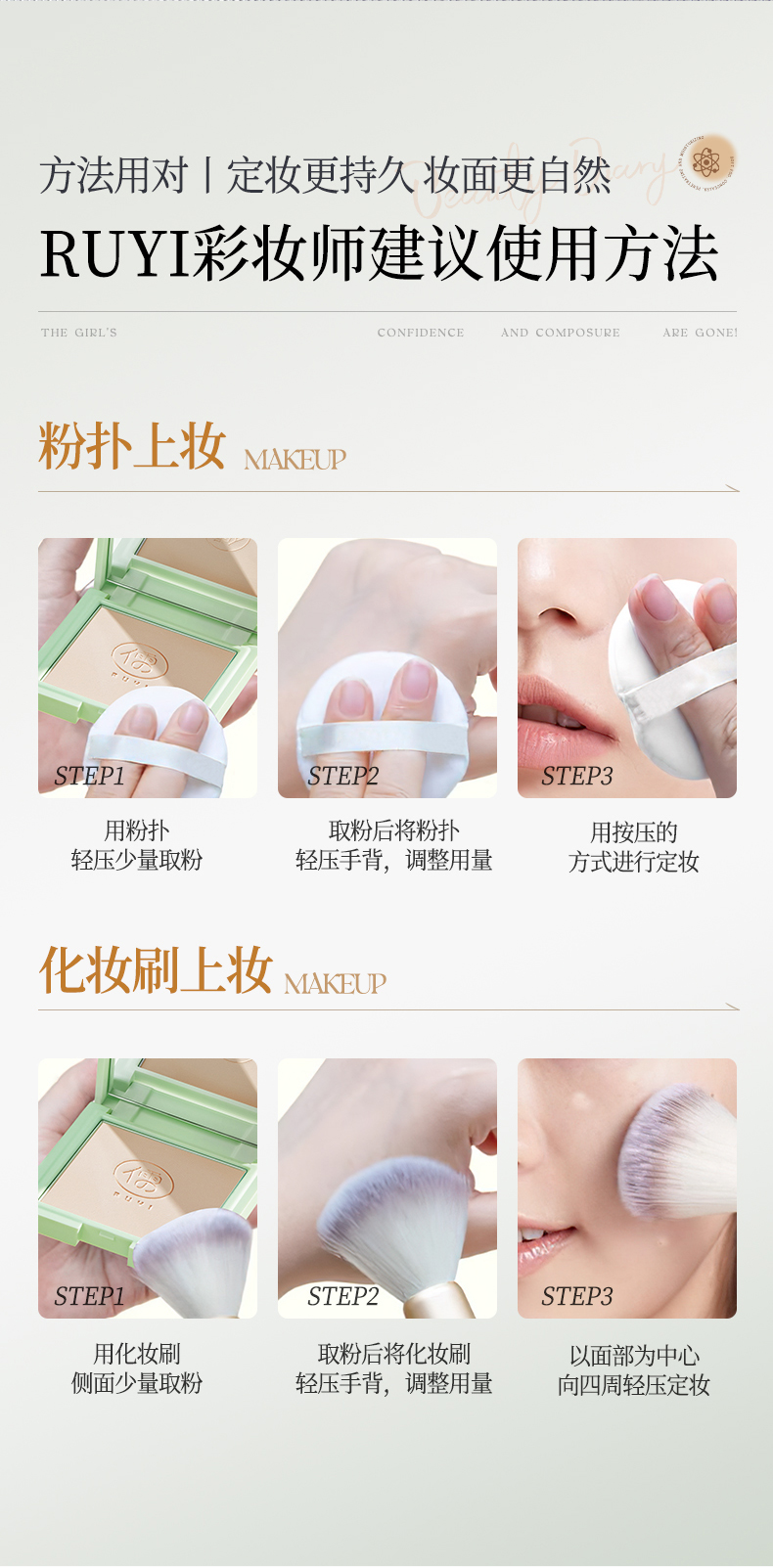 儒意控油亲肤遮瑕粉饼9.5g 柔焦定妆粉饼控油持久遮瑕防水防汗不脱妆蹭不掉气垫蜜散粉女|儒意官方商城