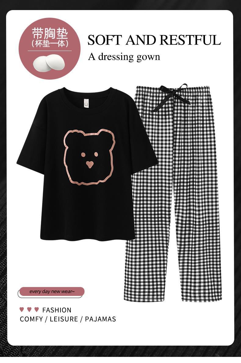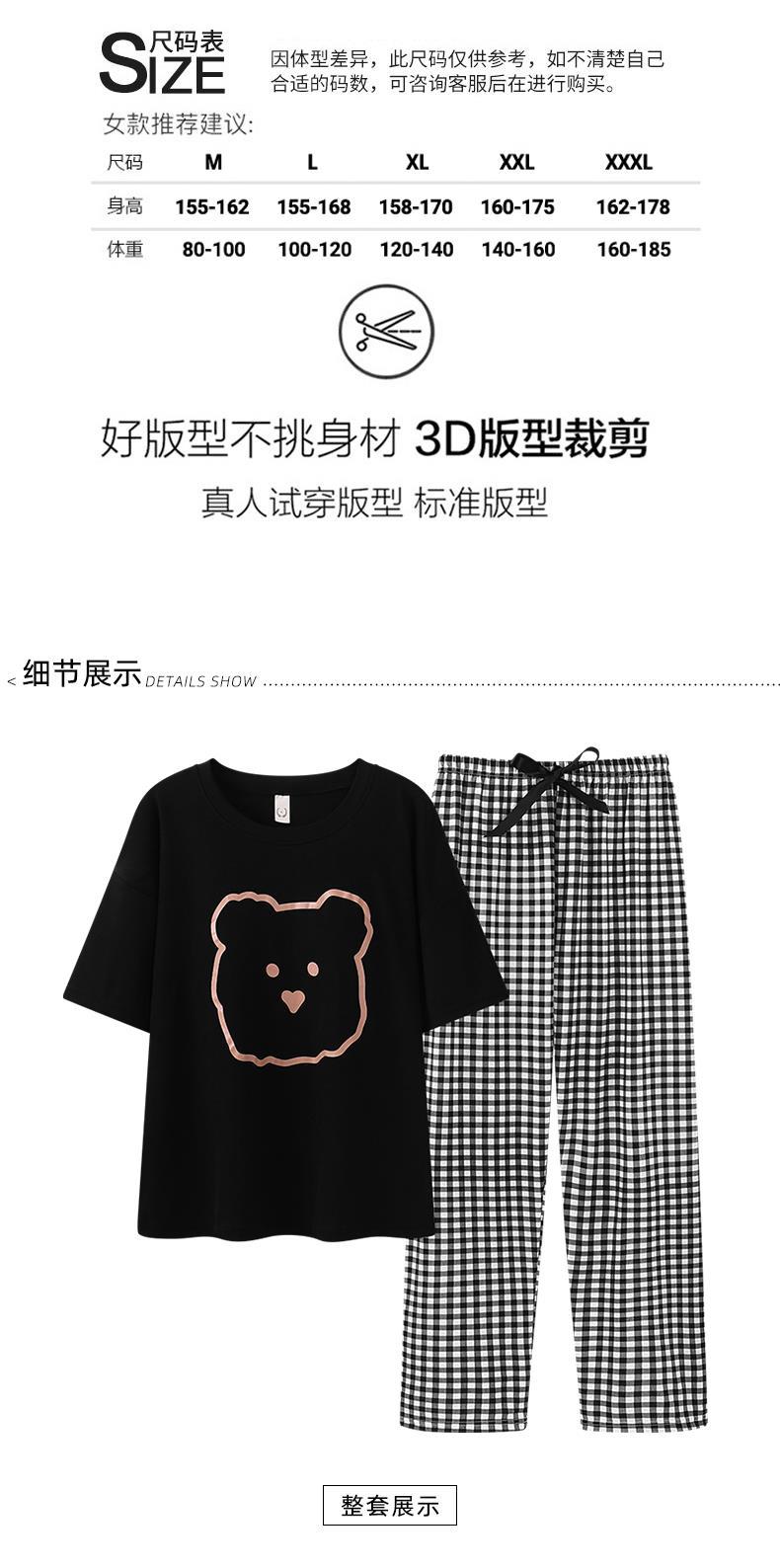 【新款上架!女士小熊夏季凉感睡衣套装】薄款简约格子设计,短袖搭配胸垫,舒适贴合,让你拥有更好的睡眠体验。