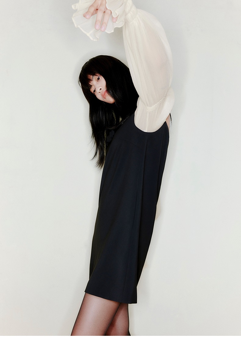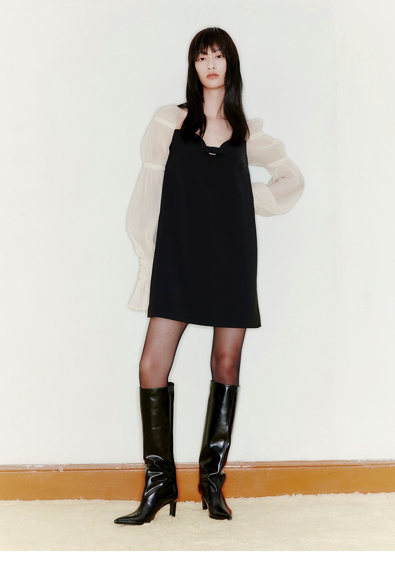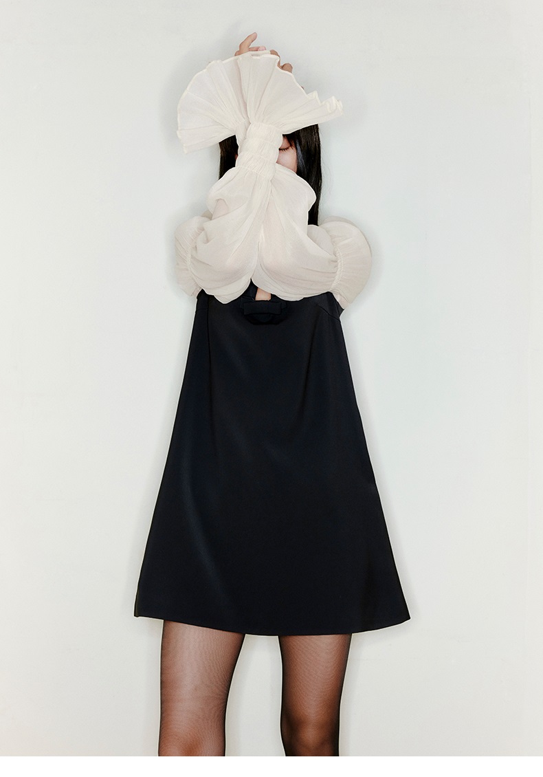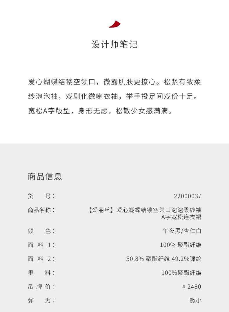 【爱丽丝】爱心蝴蝶结镂空领口泡泡柔纱袖A字宽松连衣裙/22000037