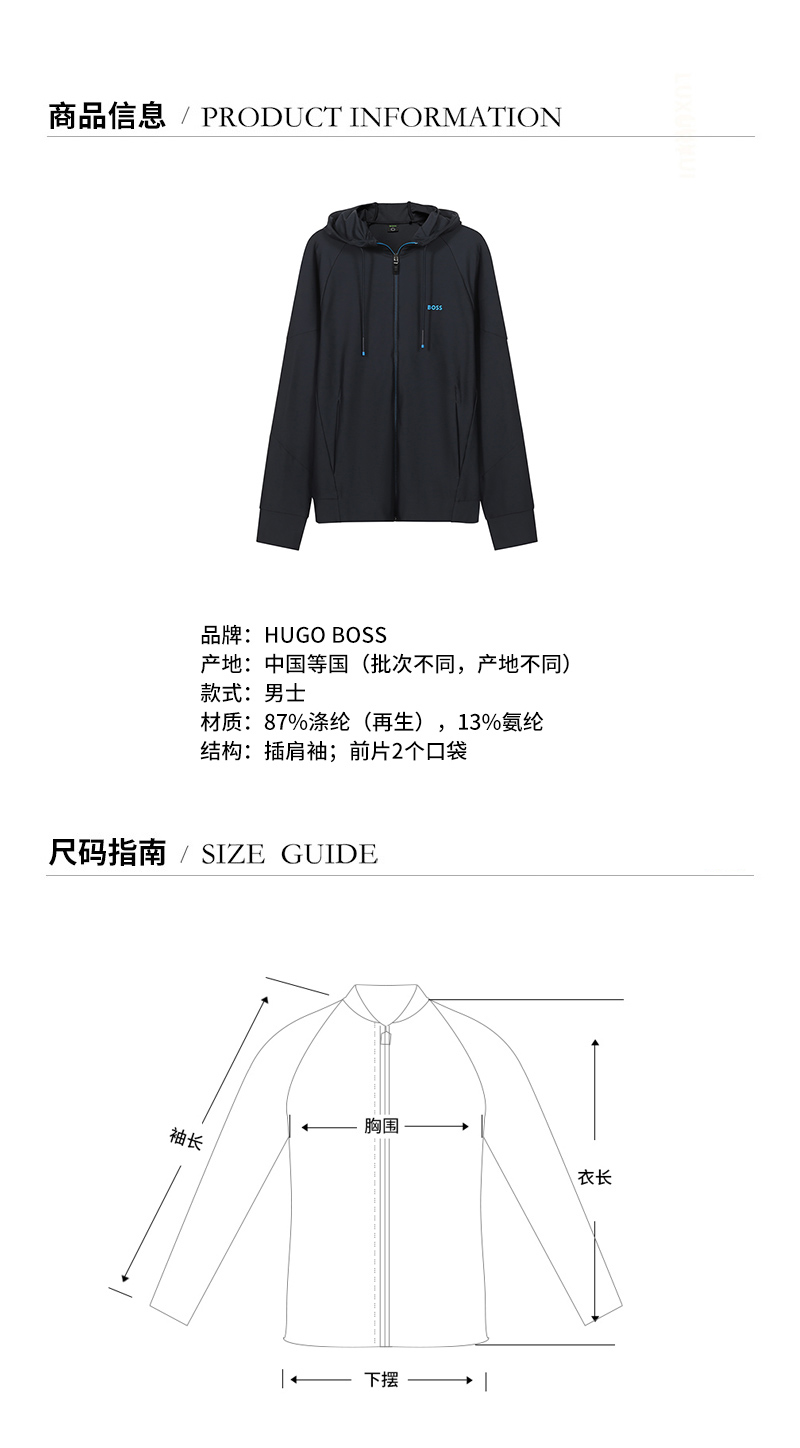HUGO BOSS/雨果博斯【22春夏新款】男士连帽拉链卫衣开衫运动衫外套LOGO图案 50465669