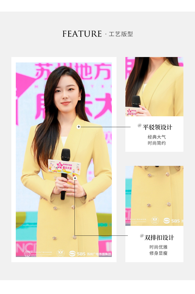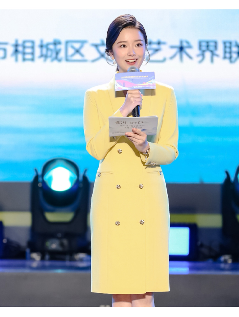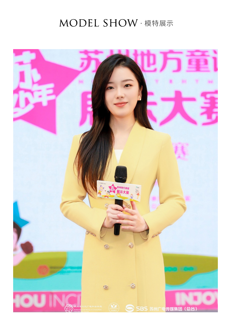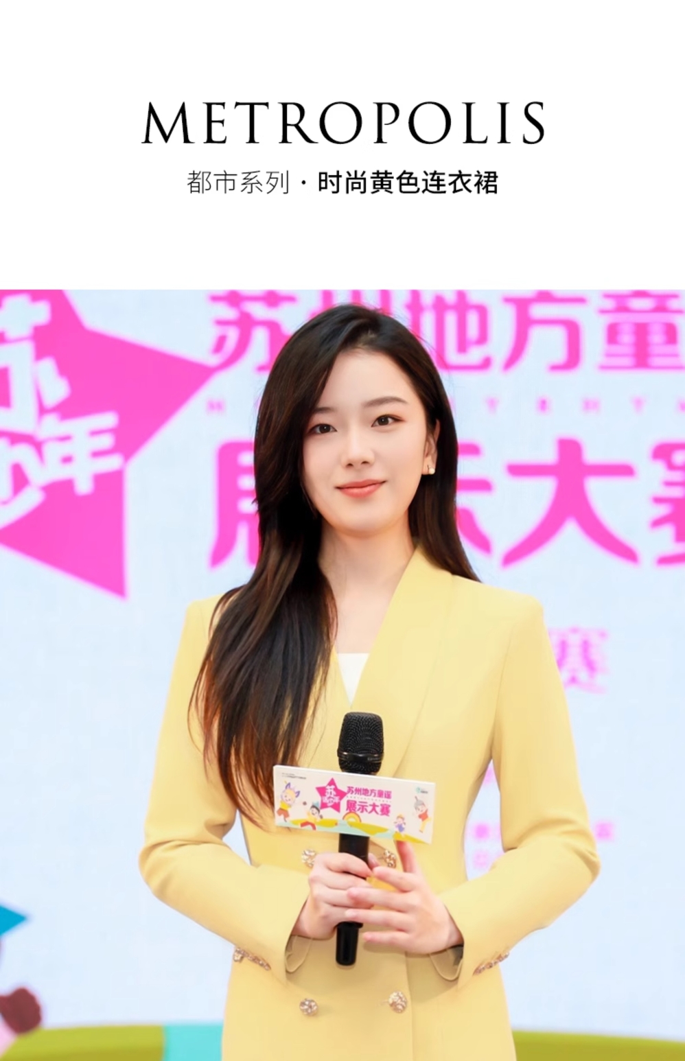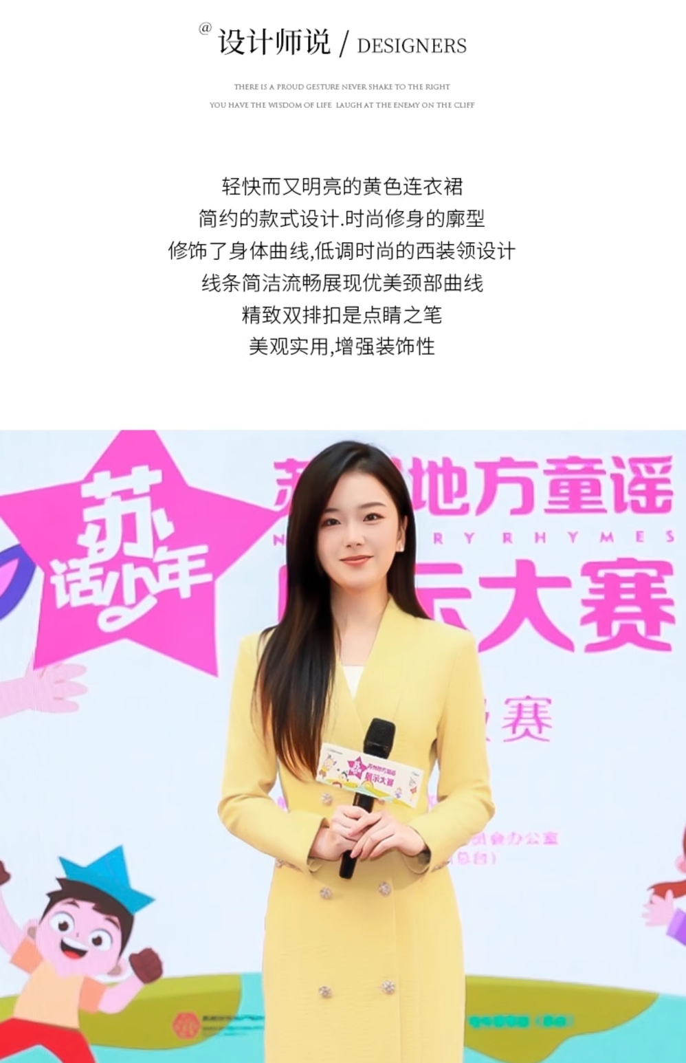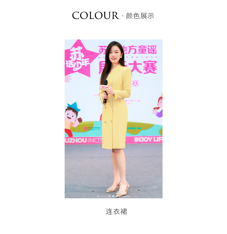 IWY/黄色西装连衣裙女修身播音艺考生主持人正装高端显瘦 233043Q1