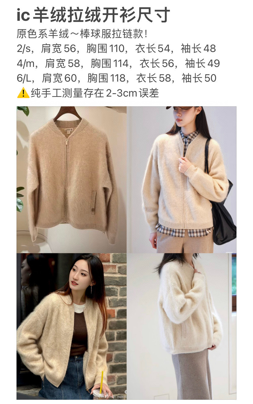 小禾2025年爆款羊绒拉绒开到货! 这件真的超级给力! 羊绒拉绒工艺,原色系羊绒,没有添加任何添加剂,棒球款,拉链设计~保暖又好穿