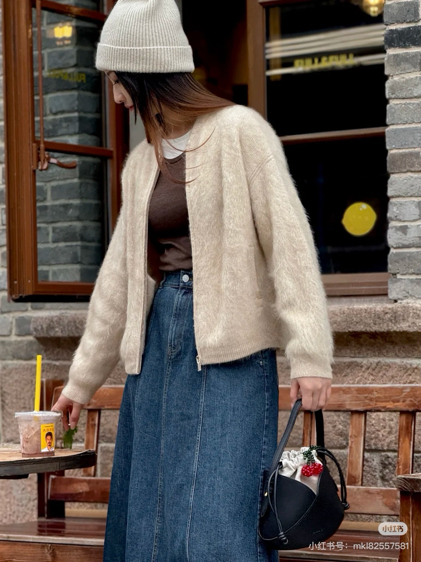 114-4 月底发货 渠道货 小禾 肉桂色 羊绒拉绒开衫 小皮草质感 我穿6码宽松效果 号很足
