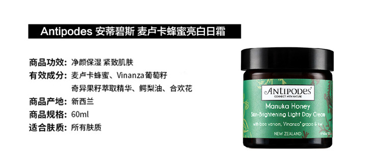 【新西兰直邮】新西兰Antipodes麦卢卡蜂蜜眼霜改善眼部暗沉30ml