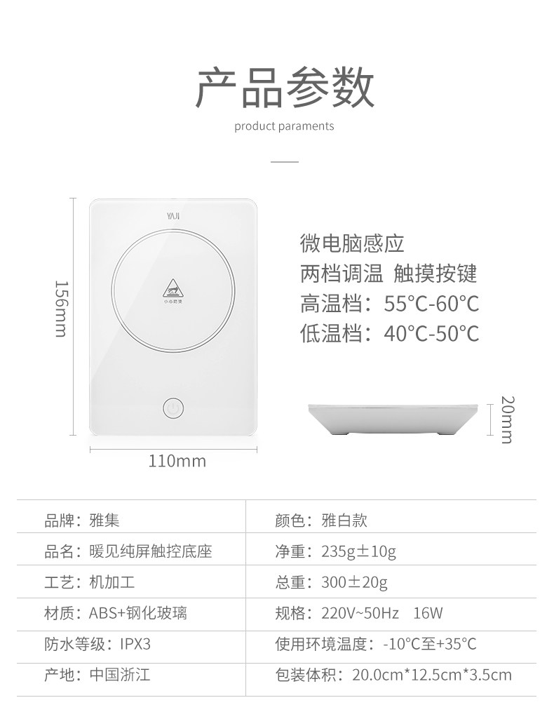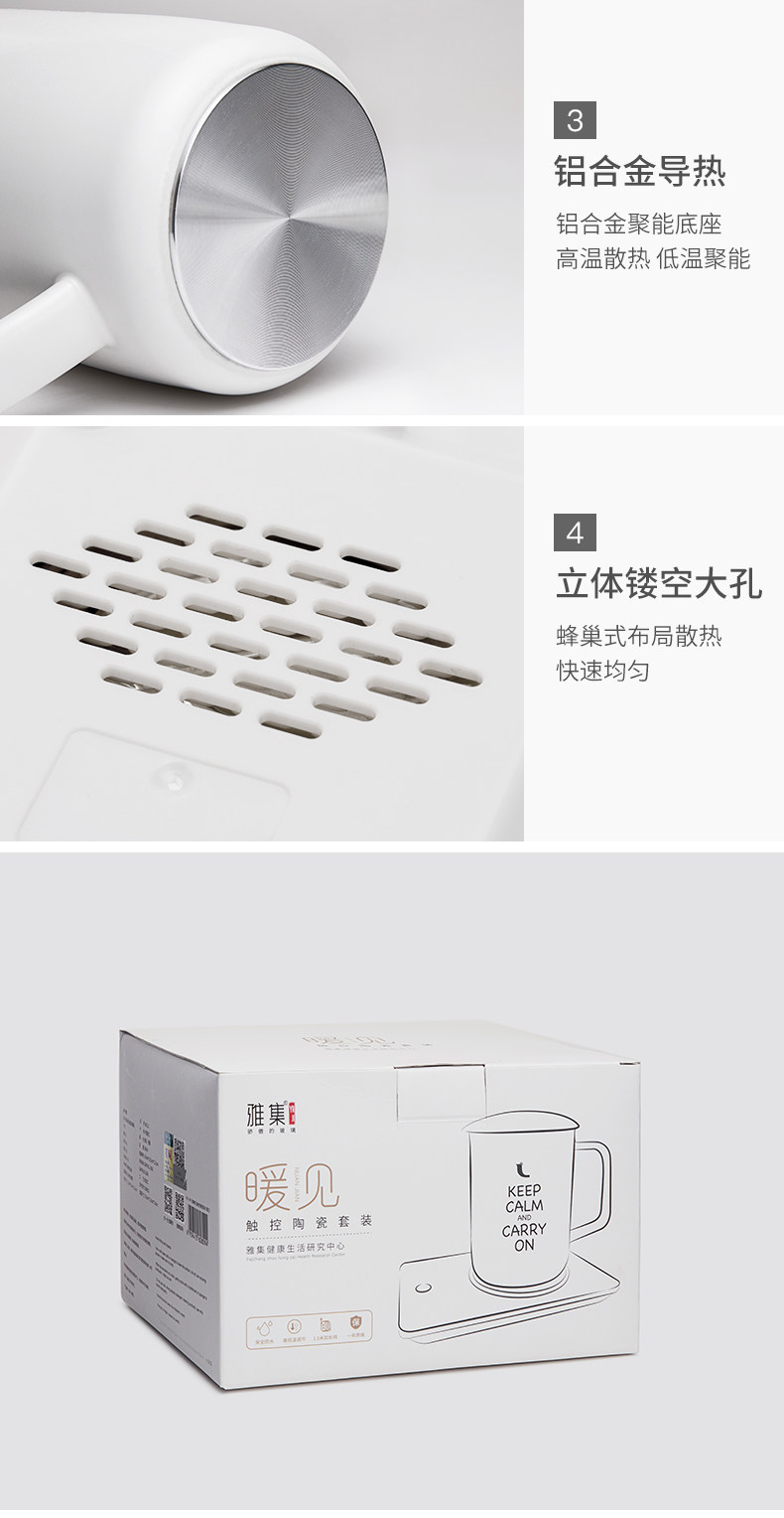 雅集电器暖见触控保温底座+陶瓷杯套装(雅白)