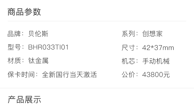 贝伦斯BHR033TI01 商品图9