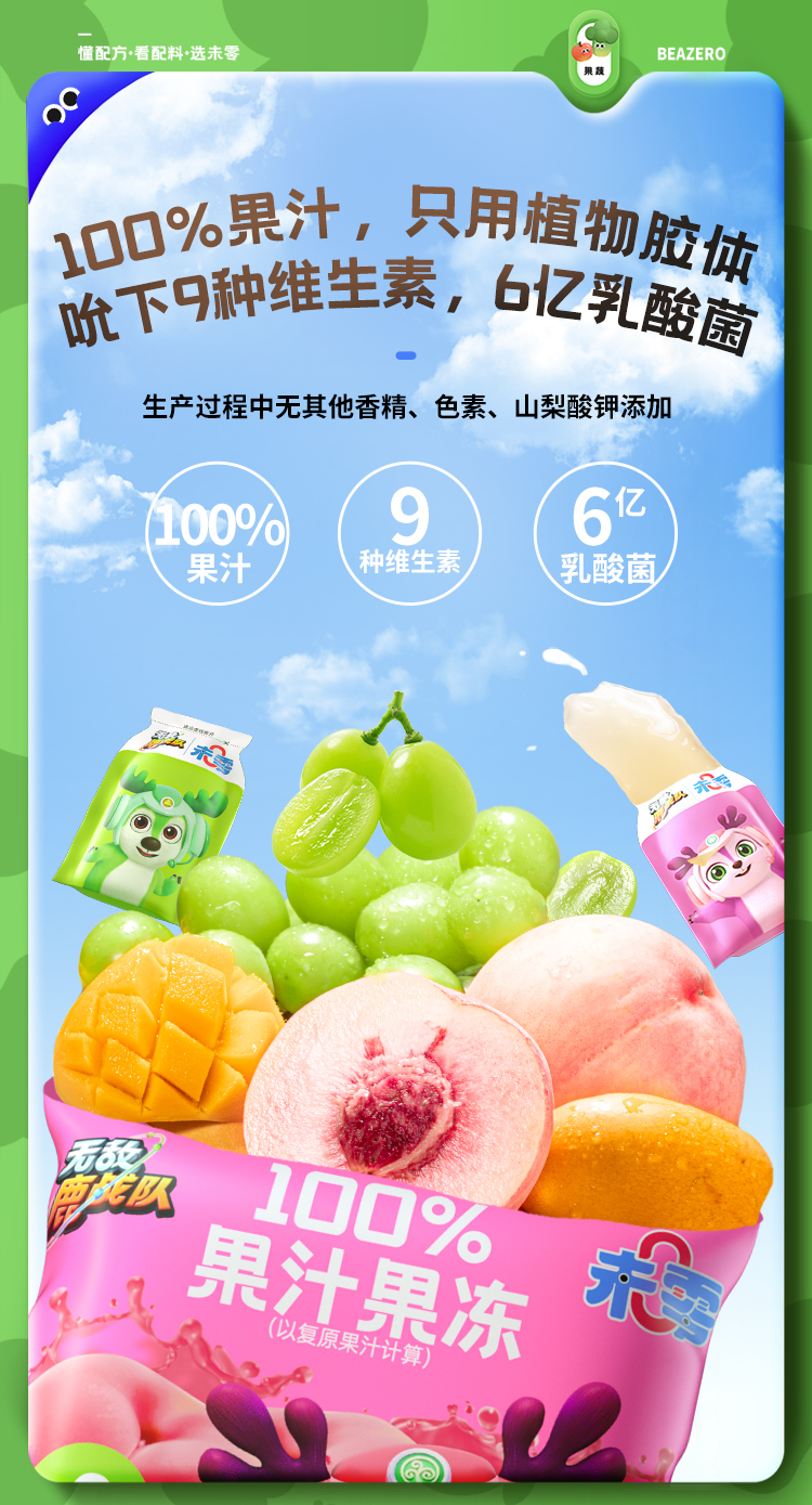 【未零】水果果汁果冻5袋 鹿战队9种维生素益生菌儿童健康零食