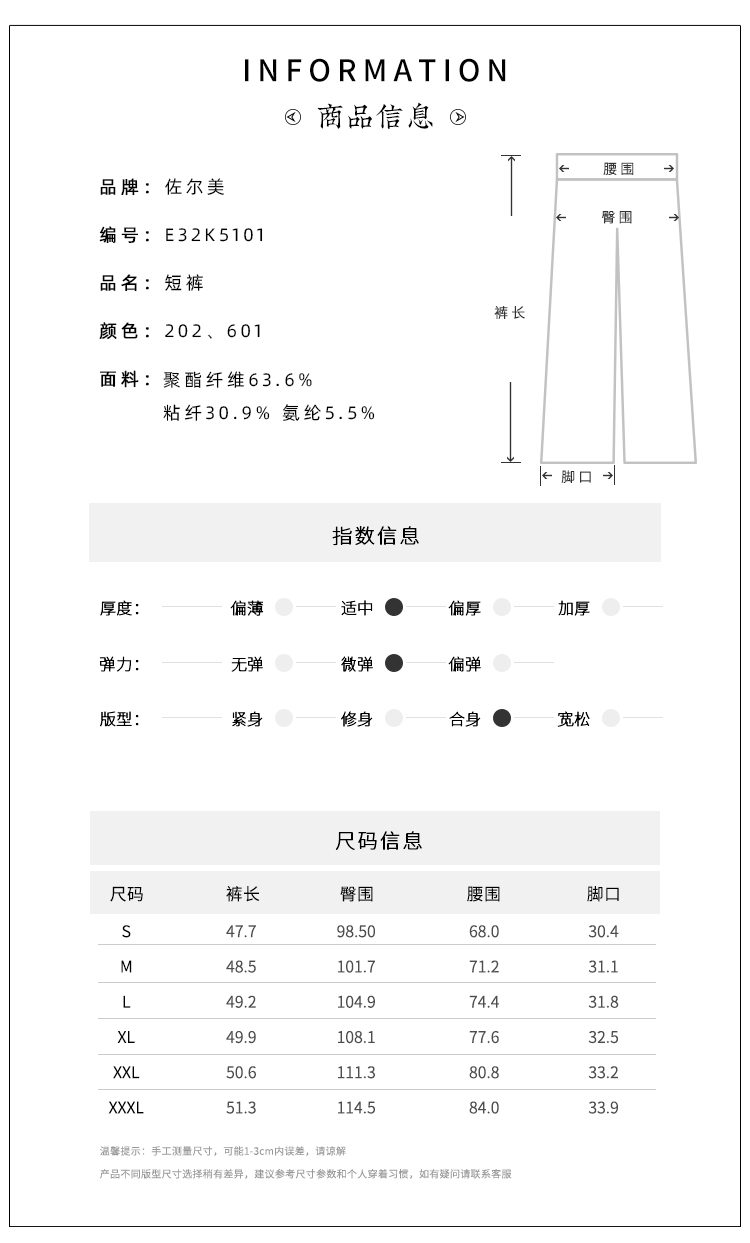 佐尔美夏季新款 时尚休闲百搭五分裤女E32K5101