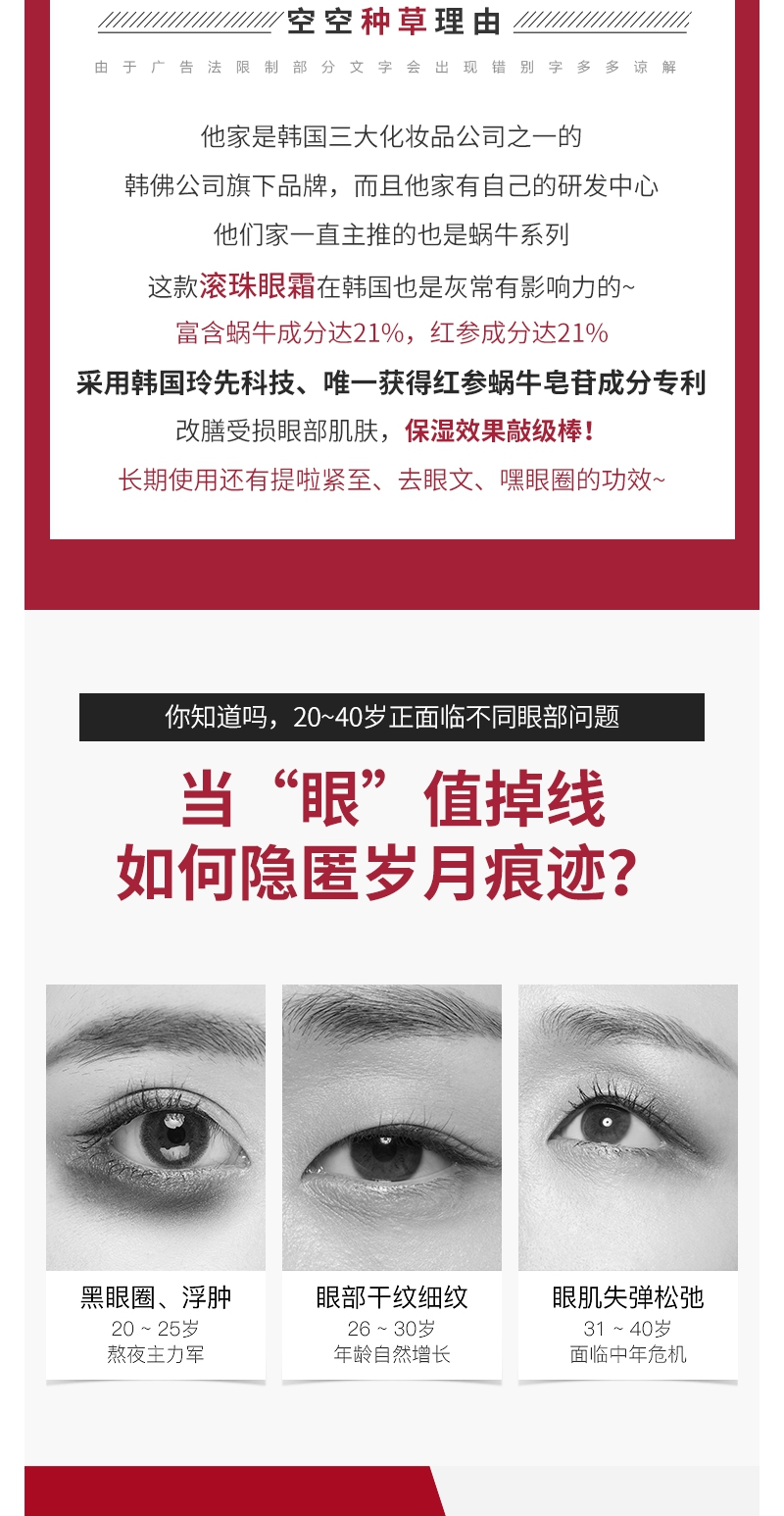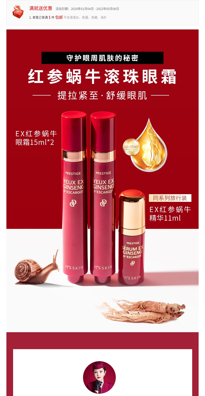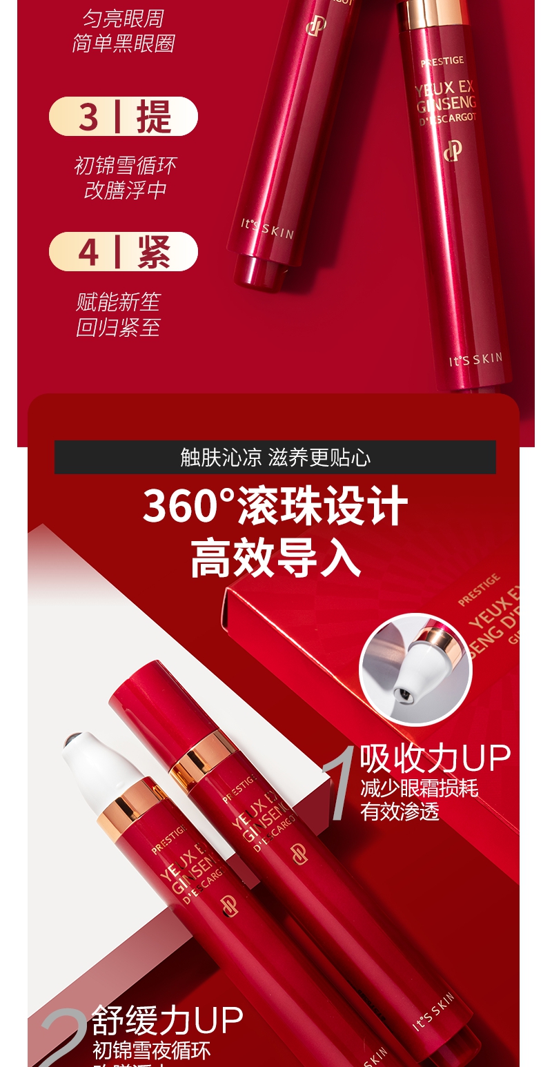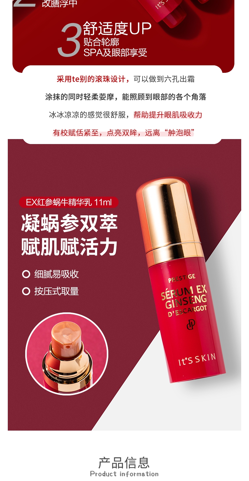 【YZ】韩国its skin伊思红参蜗牛滚珠精华眼霜15ml套装