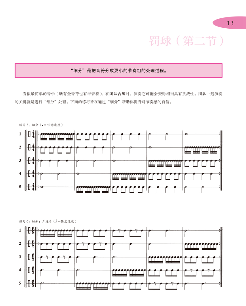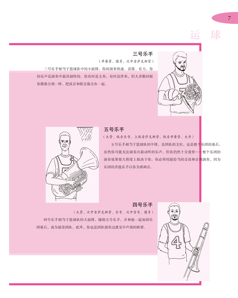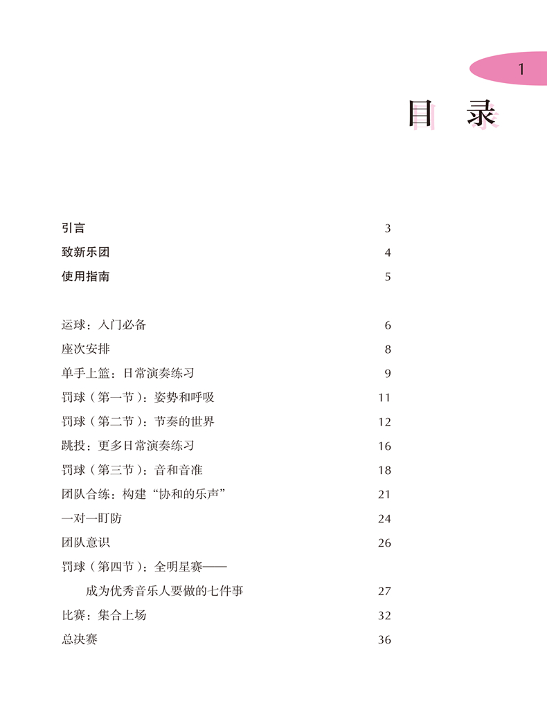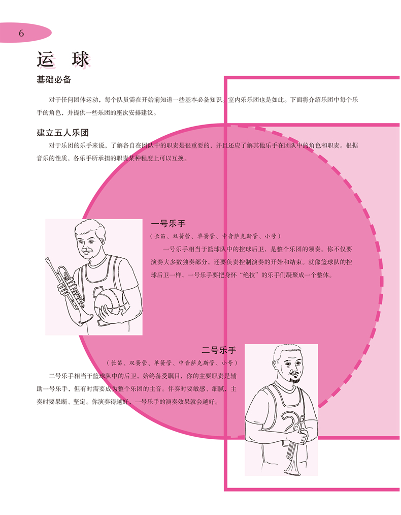 《管乐篮球队——零起步室内乐演奏速成》系列是上海音乐出版社从维也纳环球出版社引进的一套管乐队训练教程,包括《管乐篮球队·C调乐器(高音谱)》《管乐篮球队·降B调乐器》《管乐篮球对·降E调乐器》《管乐篮球队·F调乐器》和《管乐篮球队·C调乐器(低音谱)》五册。作者将五个声部灵活搭配,用轻松有趣的形式,把乐队演奏与篮球运动相类比,启发读者通过篮球运动员之间的分工和配合来体会、领悟室内乐乐手之间的合作。教程从篮球队这一比喻出发,将乐手看作是篮球场上的队员,各种乐理知识和演奏技法则相当于篮球运动中的各种技术、技巧动作,从“运球”“单手上篮”“罚球”“跳投”到最后的“全明星赛”和“总决赛”,循序渐进地向室内乐初学者讲解管乐合奏的基础知识和技巧。除此之外,书中大量练习曲目和合奏乐曲都配有示范音频(可扫描二维码聆听),无论单个演奏者还是乐团,都能通过对比自身演奏和录音示范来磨练技巧、获得进步。
