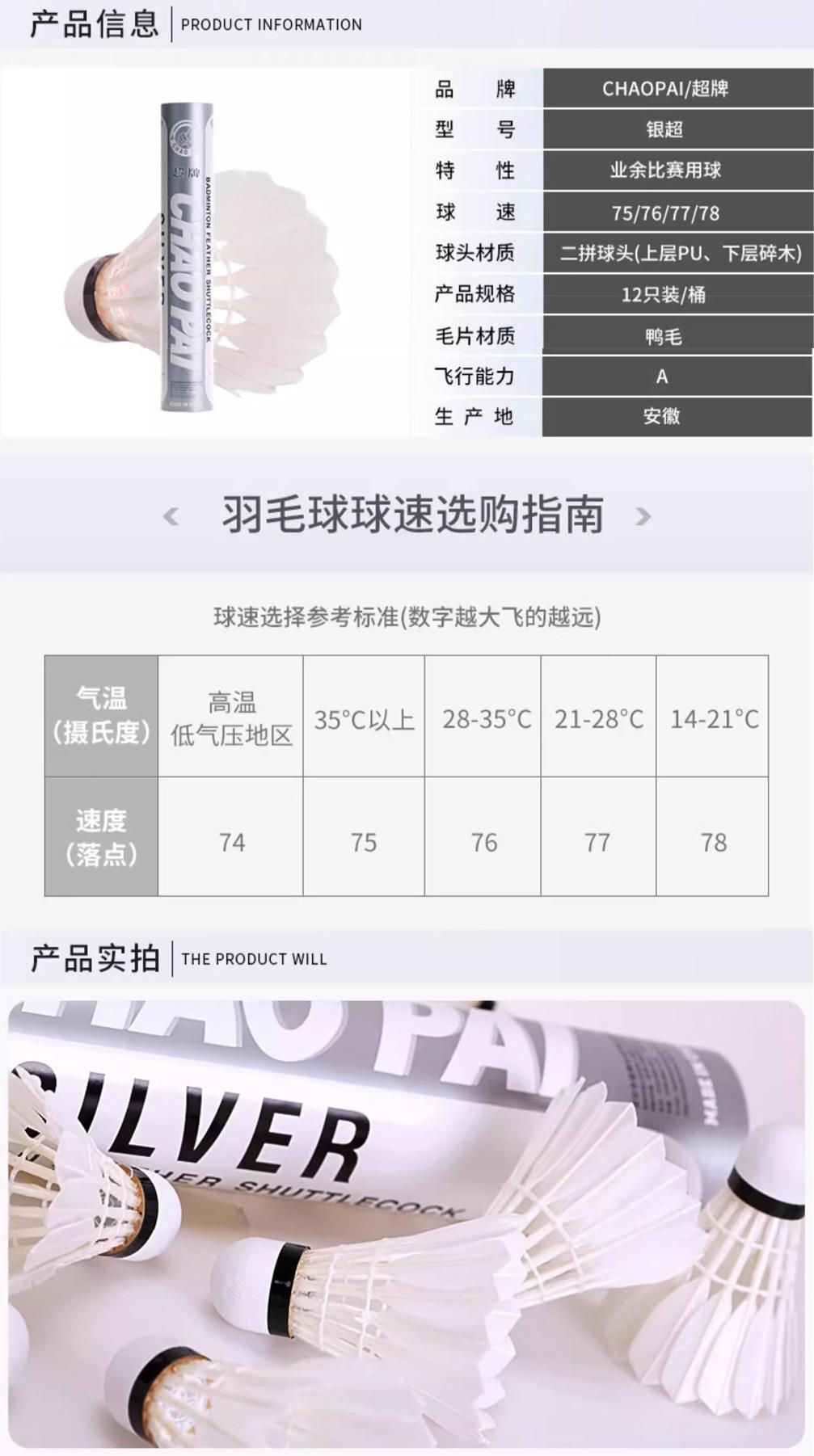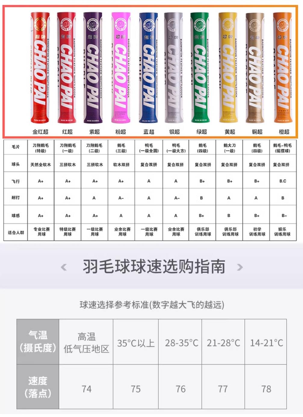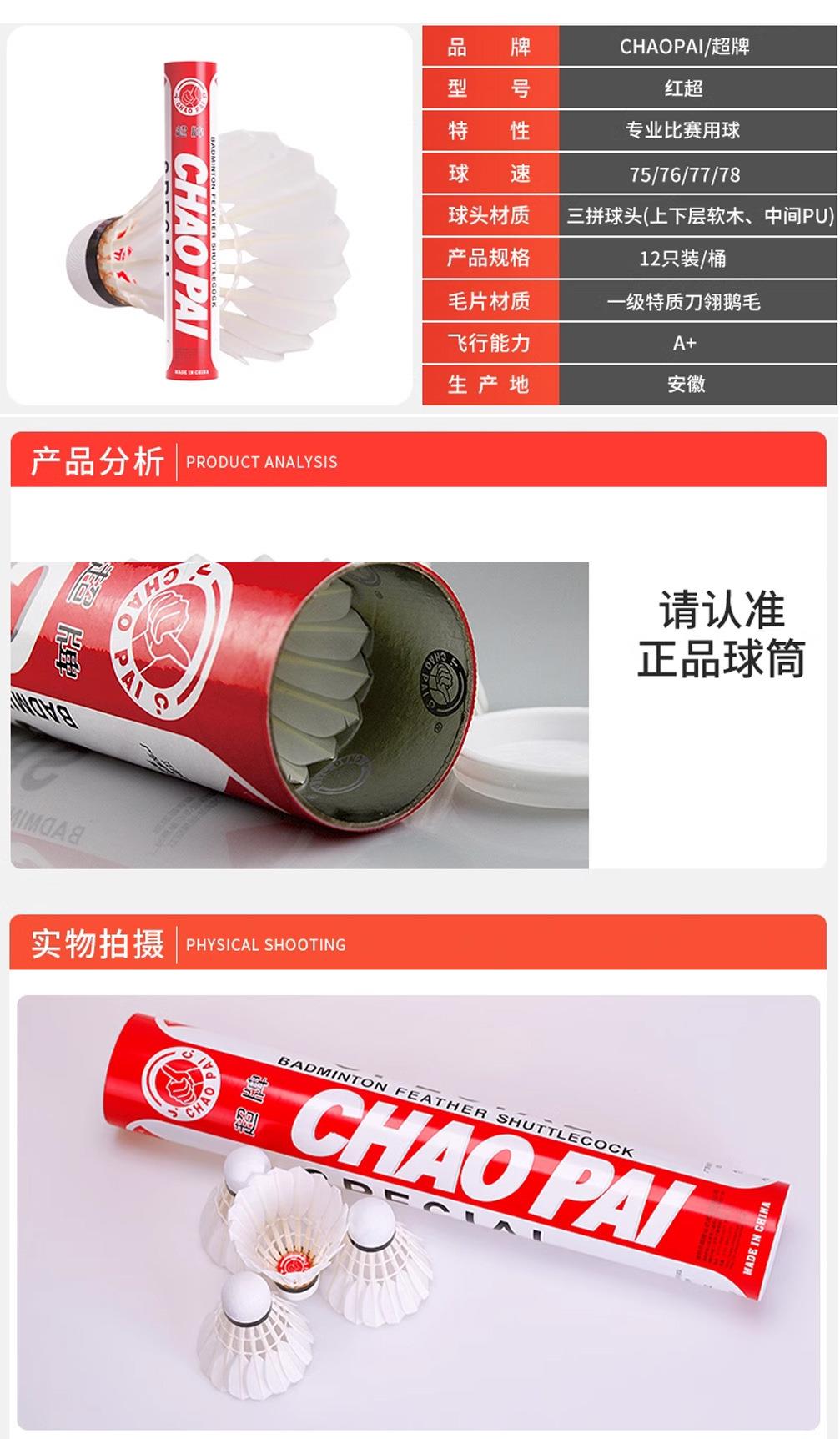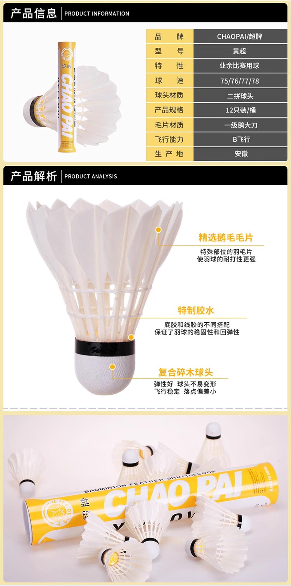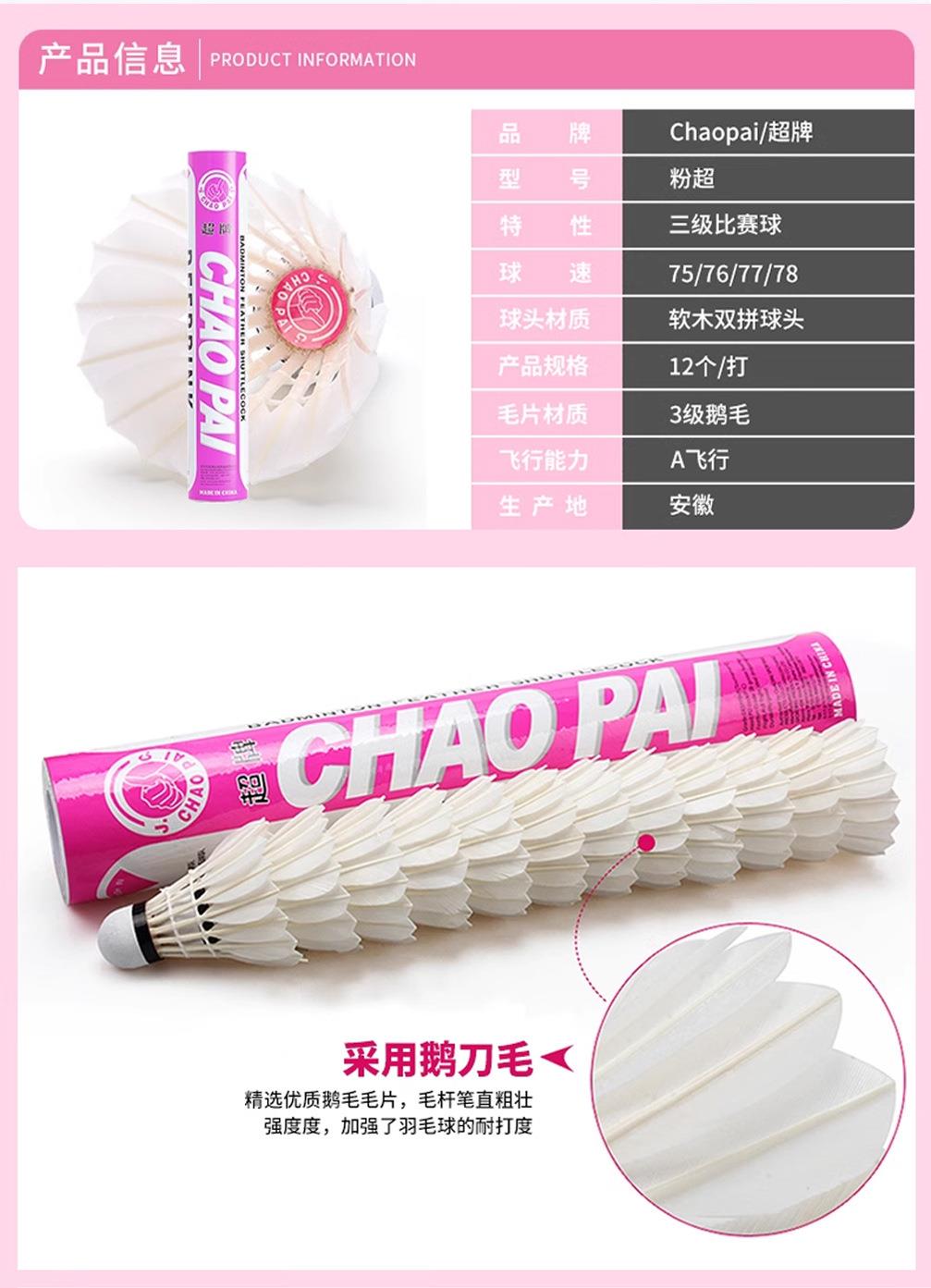 正品CHAOPAI超牌 黄超羽毛球 粉超 红超专业比赛球球耐打飞行稳定