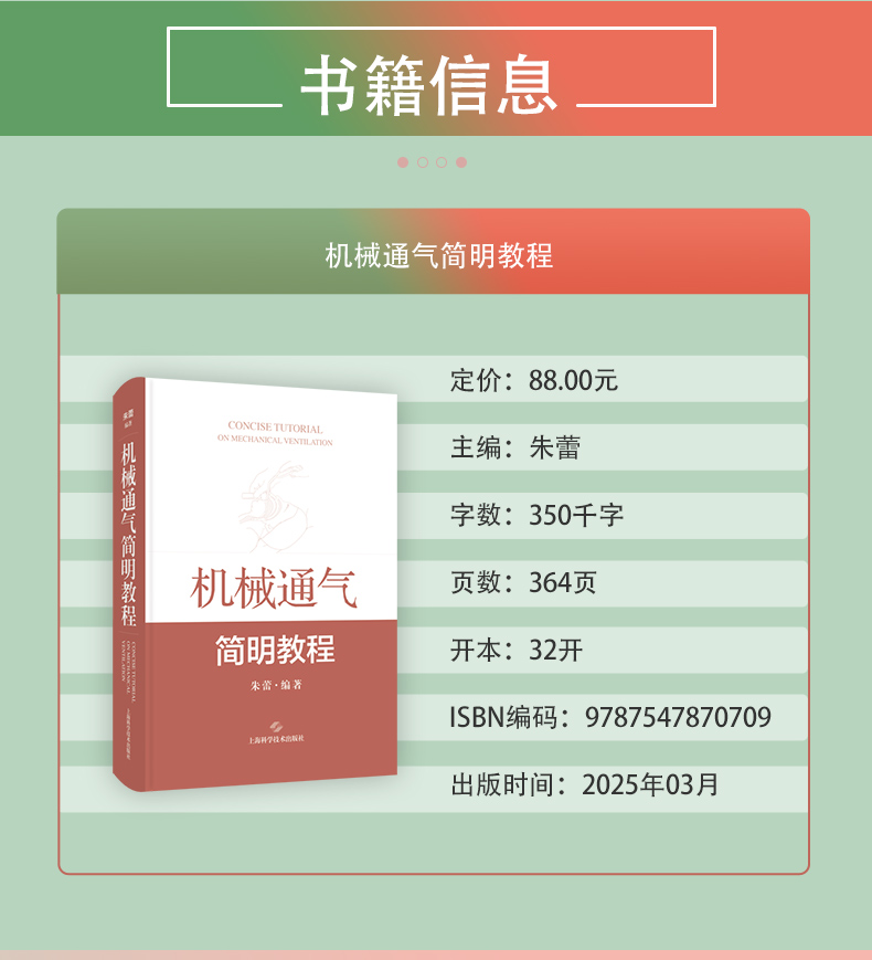 机械通气简明教程 朱蕾 配有100余幅插图 并附有实际临床病例分析 供急救医学科等部门临床医生必备工具书 上海科学技术出版社