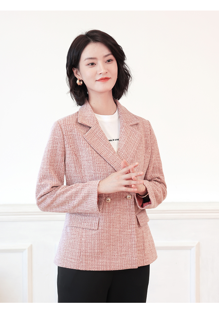 佐尔美新品秋季新品职场风条纹束腰女士中袖外套E81SO14