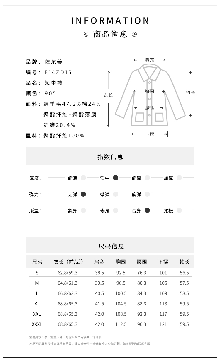 佐尔美秋冬新款 气质小香风上衣外套女E14ZD15