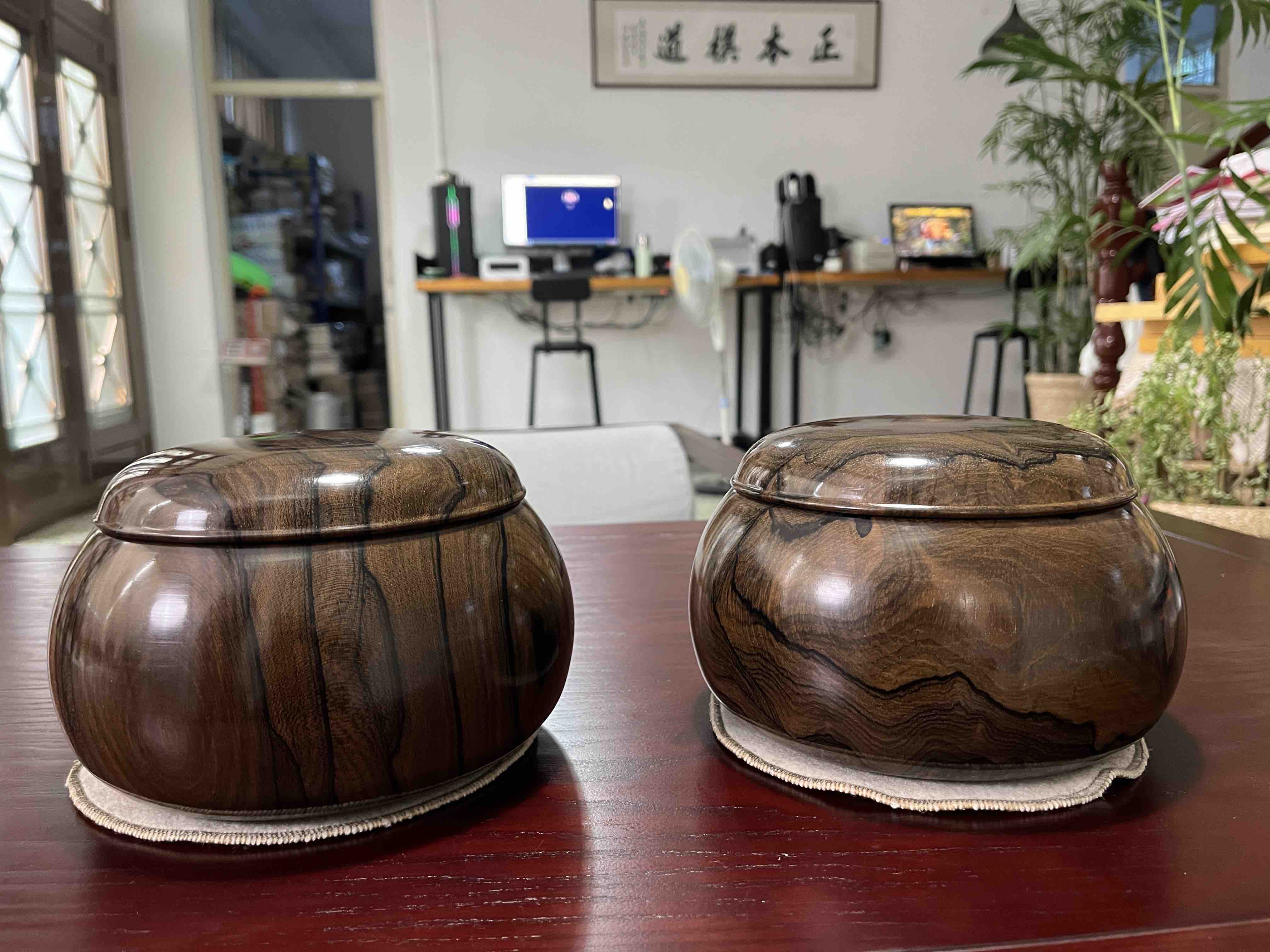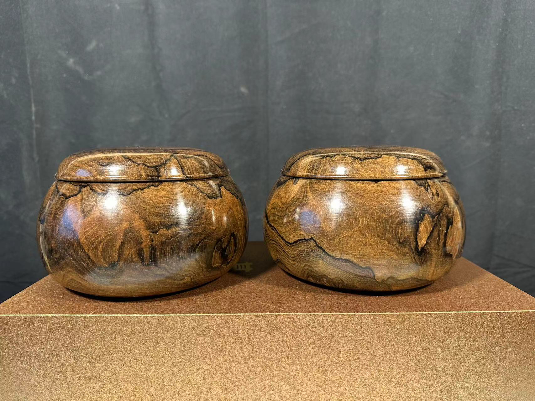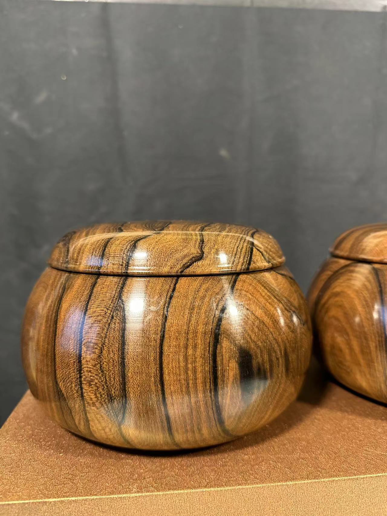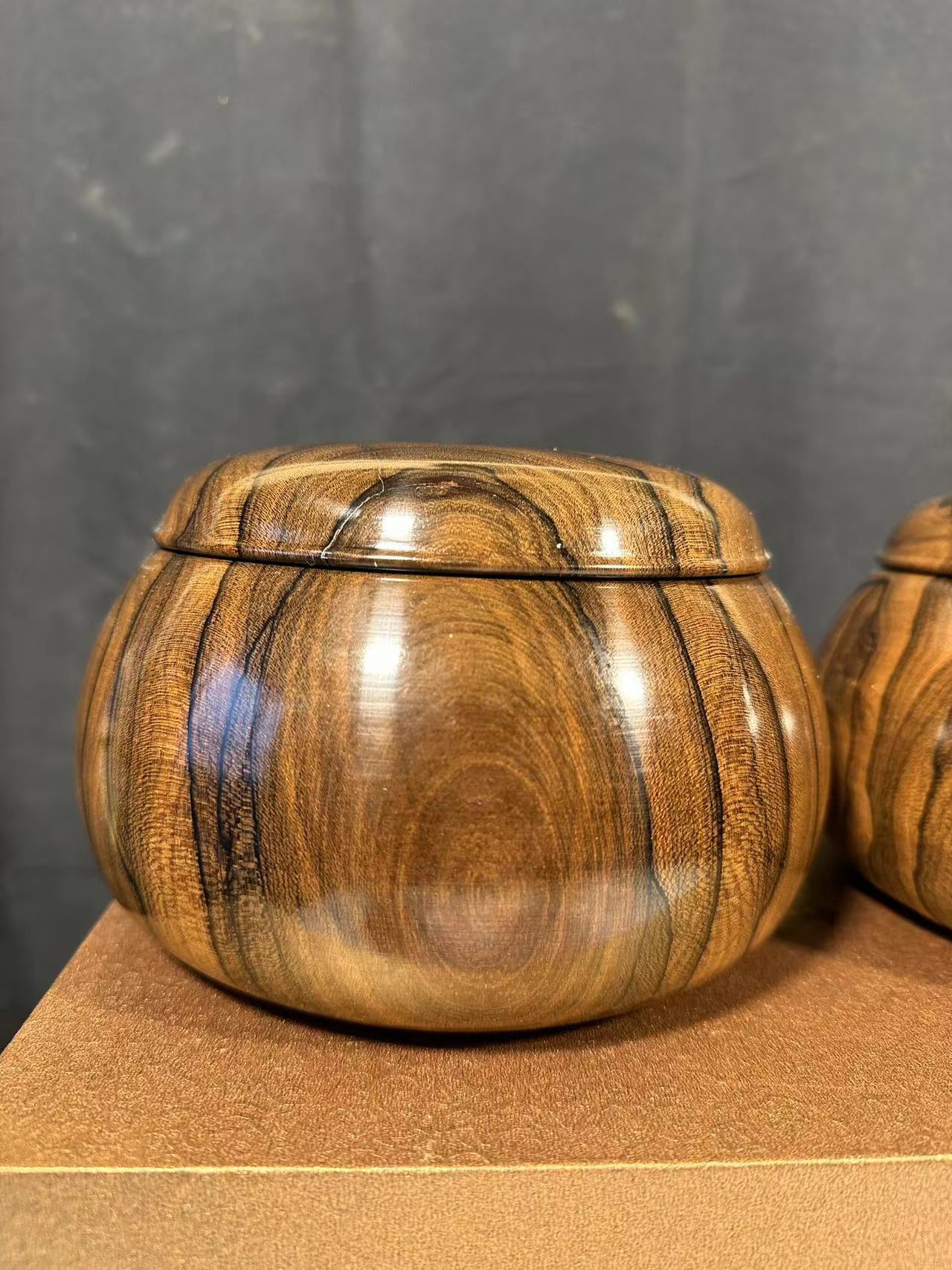 铭木棋笥 黑柿木围棋罐(日本工艺)渡边制作48号