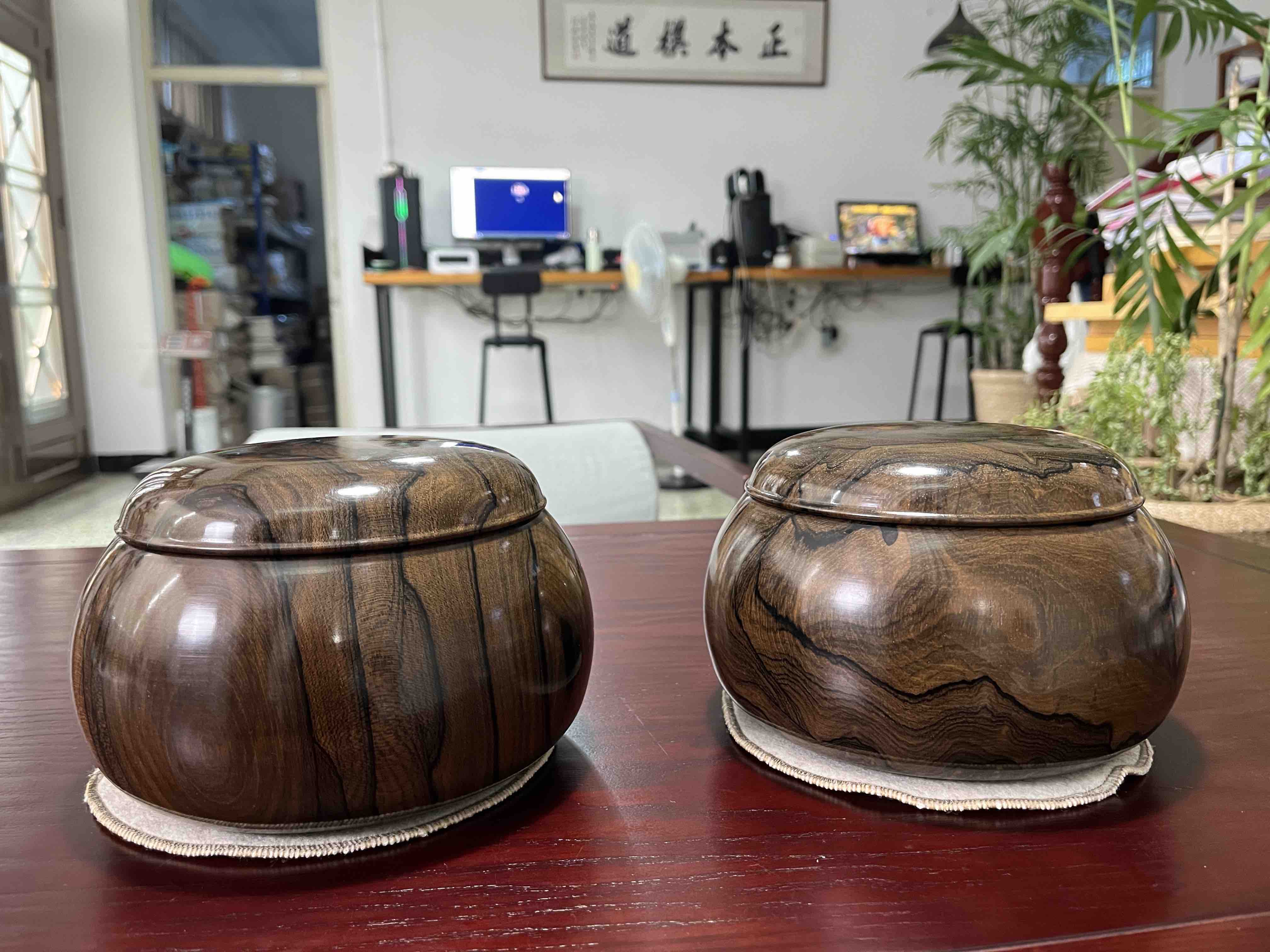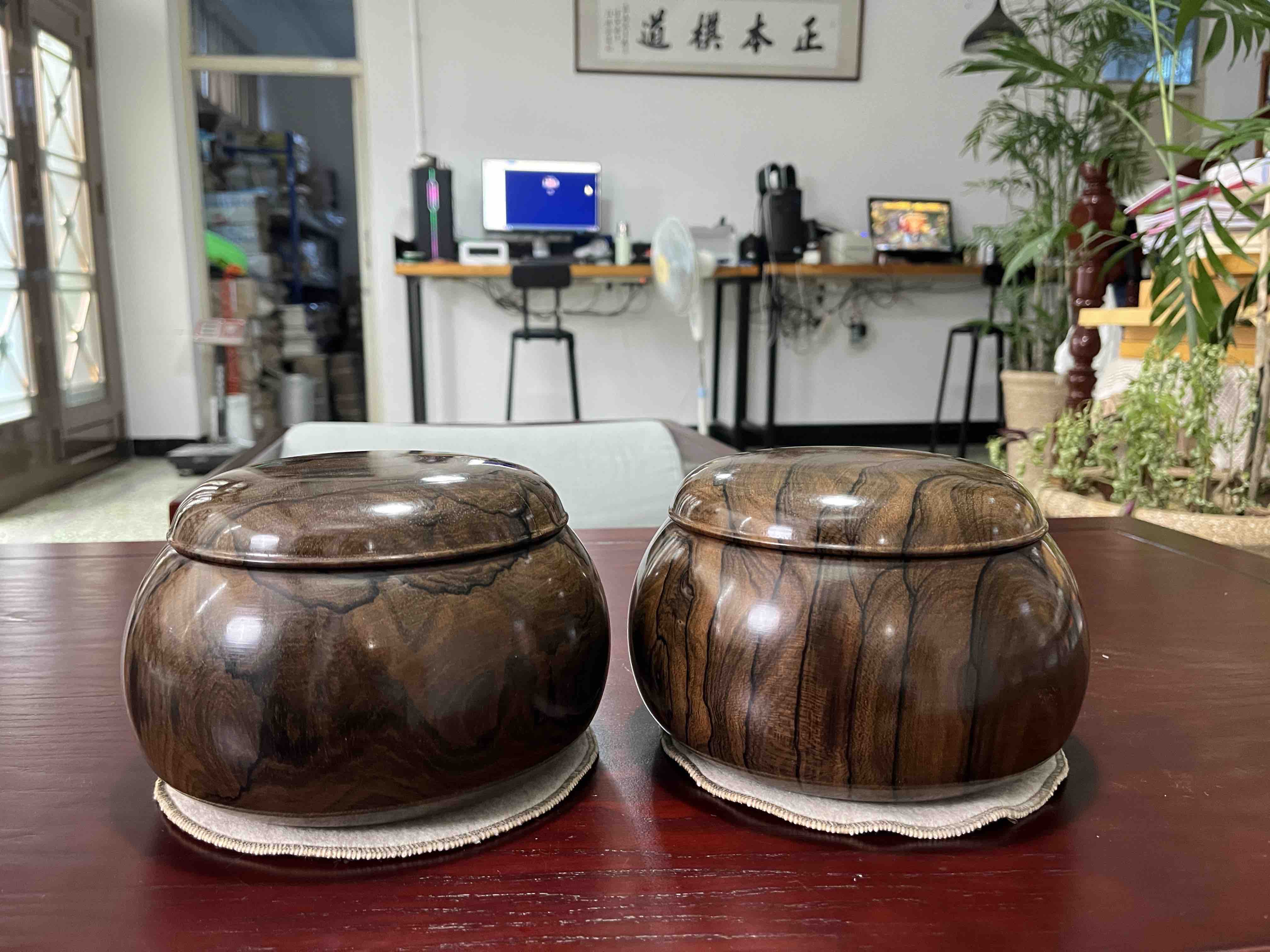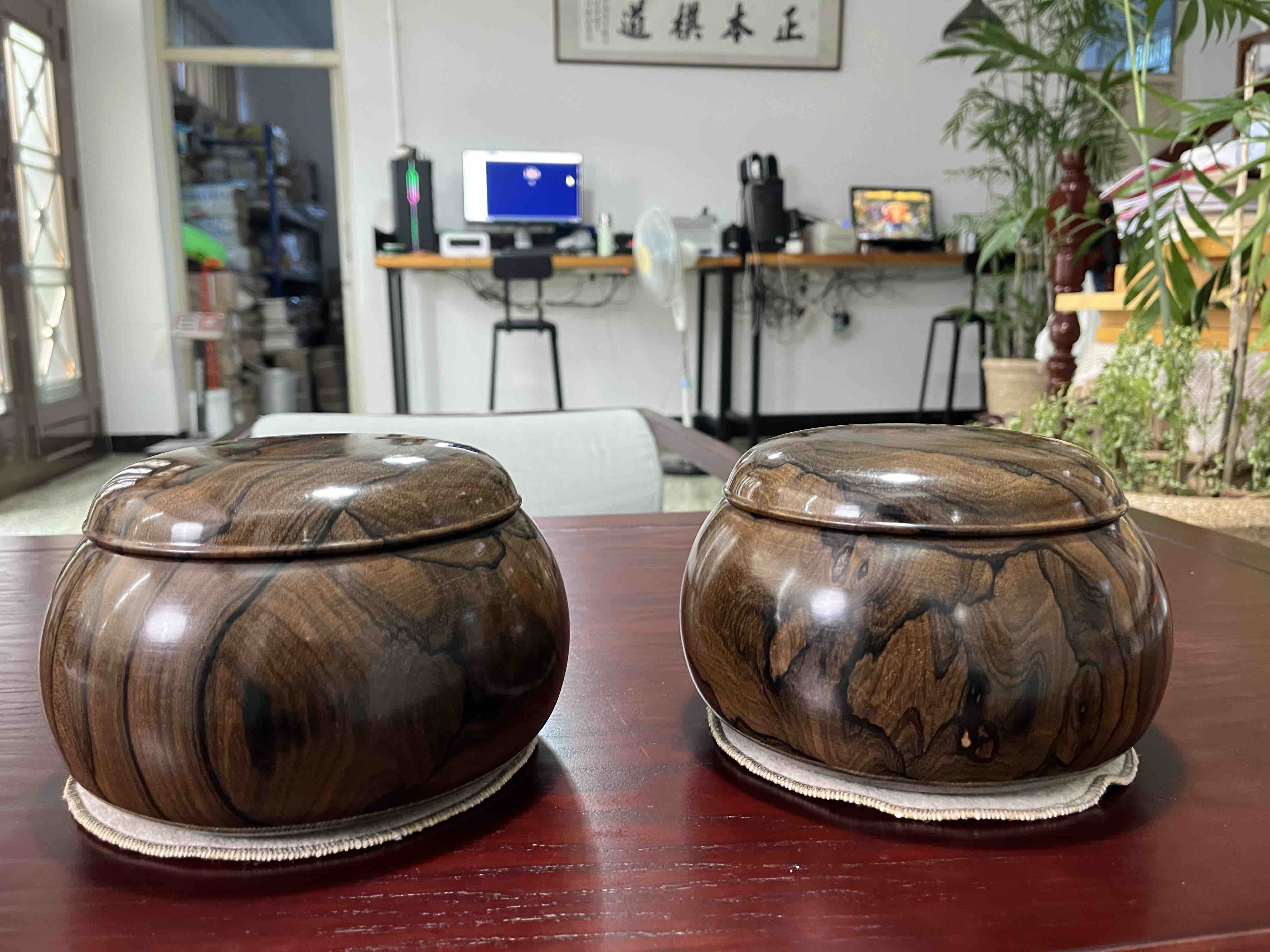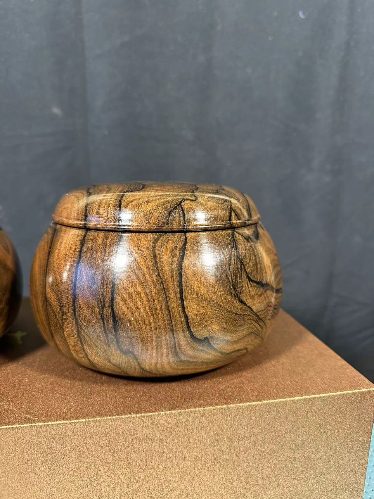 铭木棋笥 黑柿木围棋罐(日本工艺)渡边制作48号