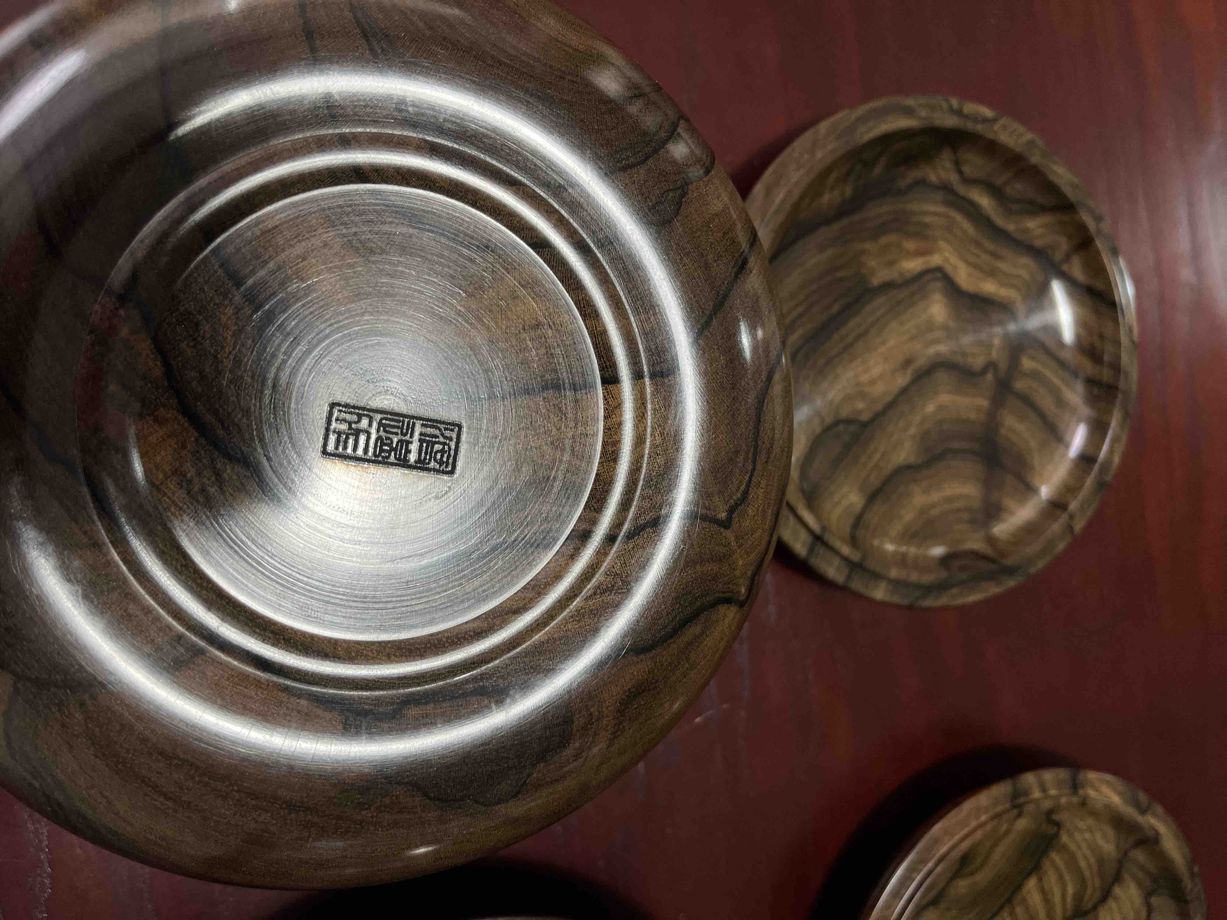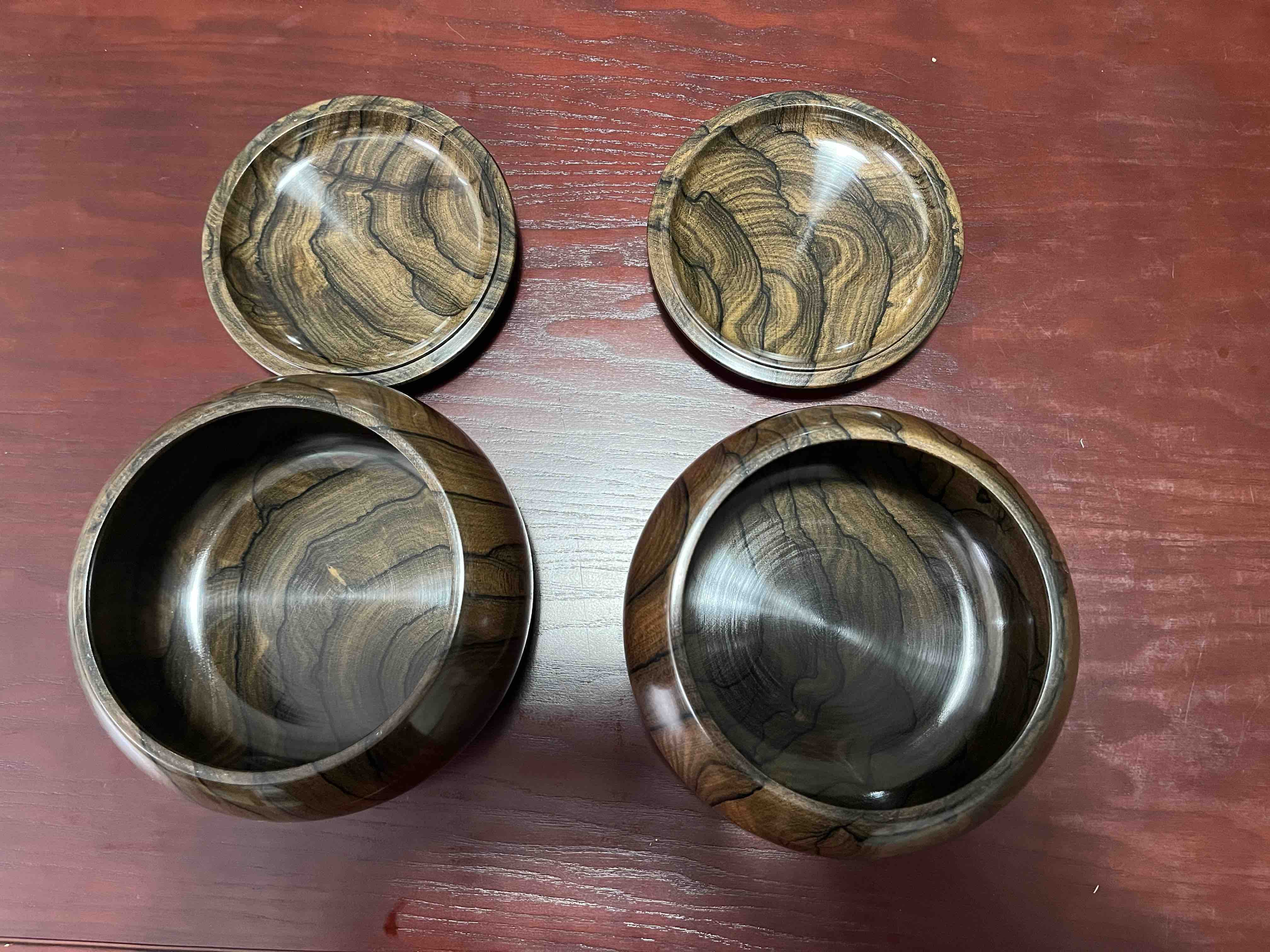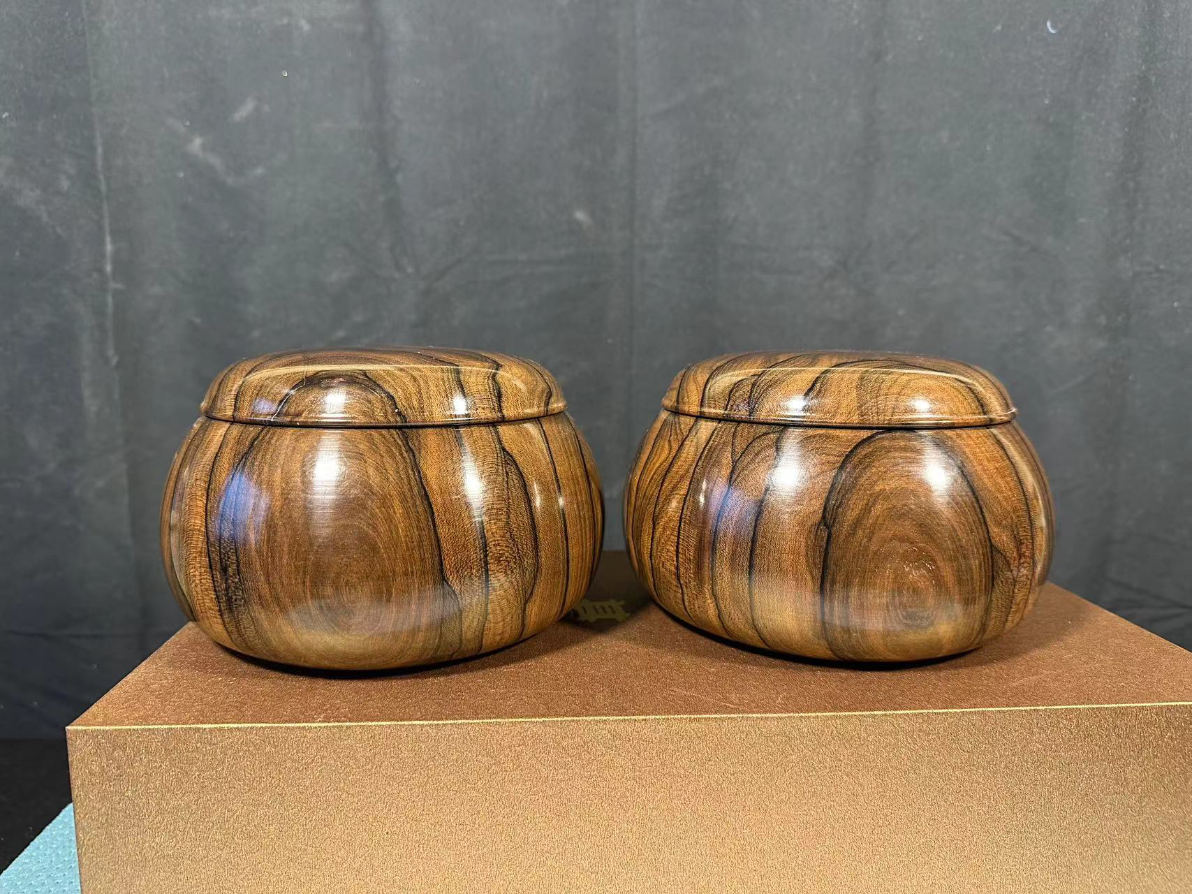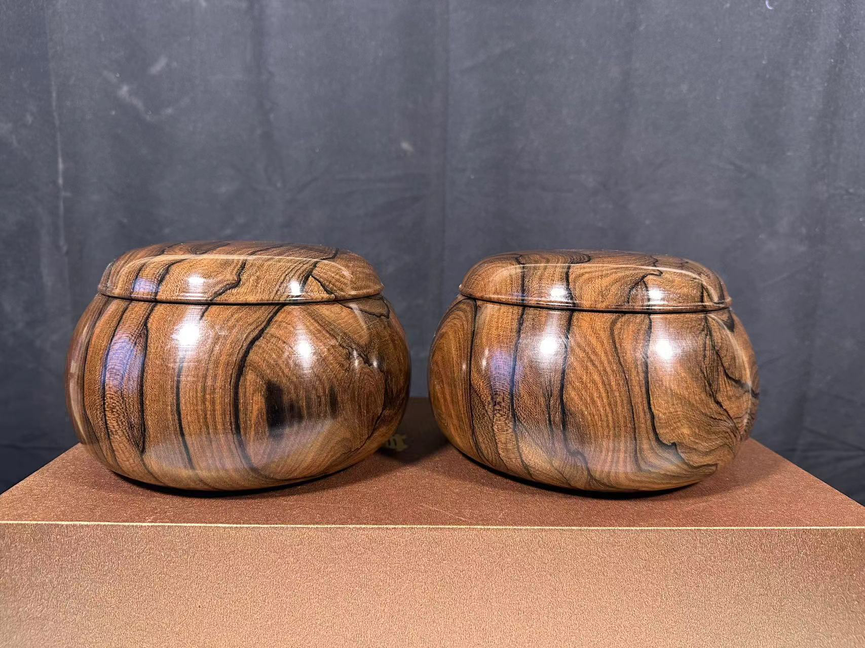 铭木棋笥 黑柿木围棋罐(日本工艺)渡边制作48号