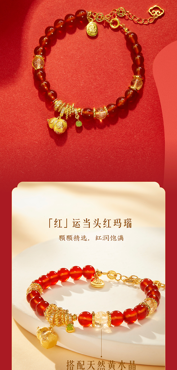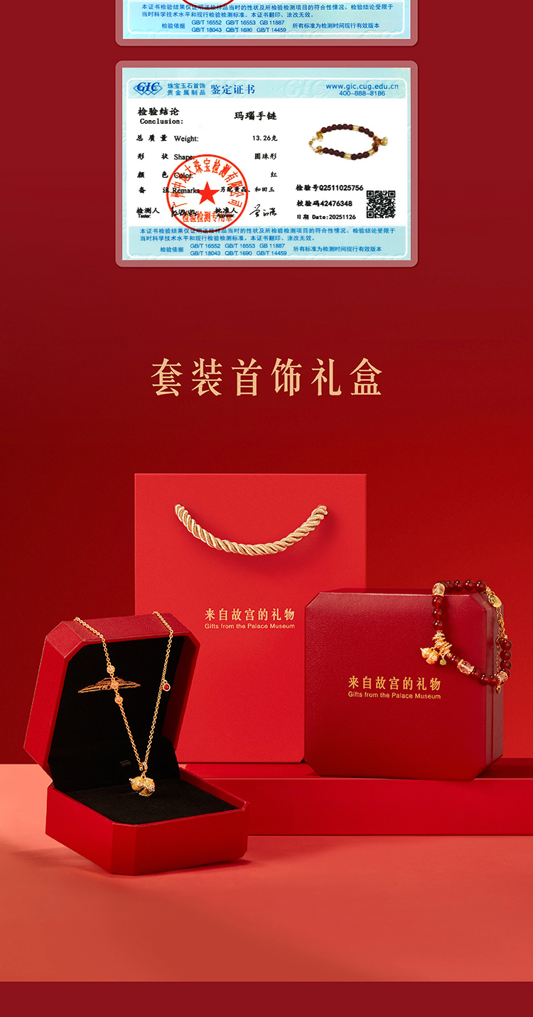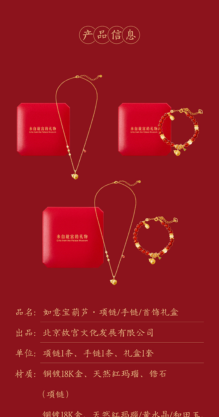 【故宫饰品】如意宝葫芦红玛瑙手链项链文创新年本命年圣诞生日礼物