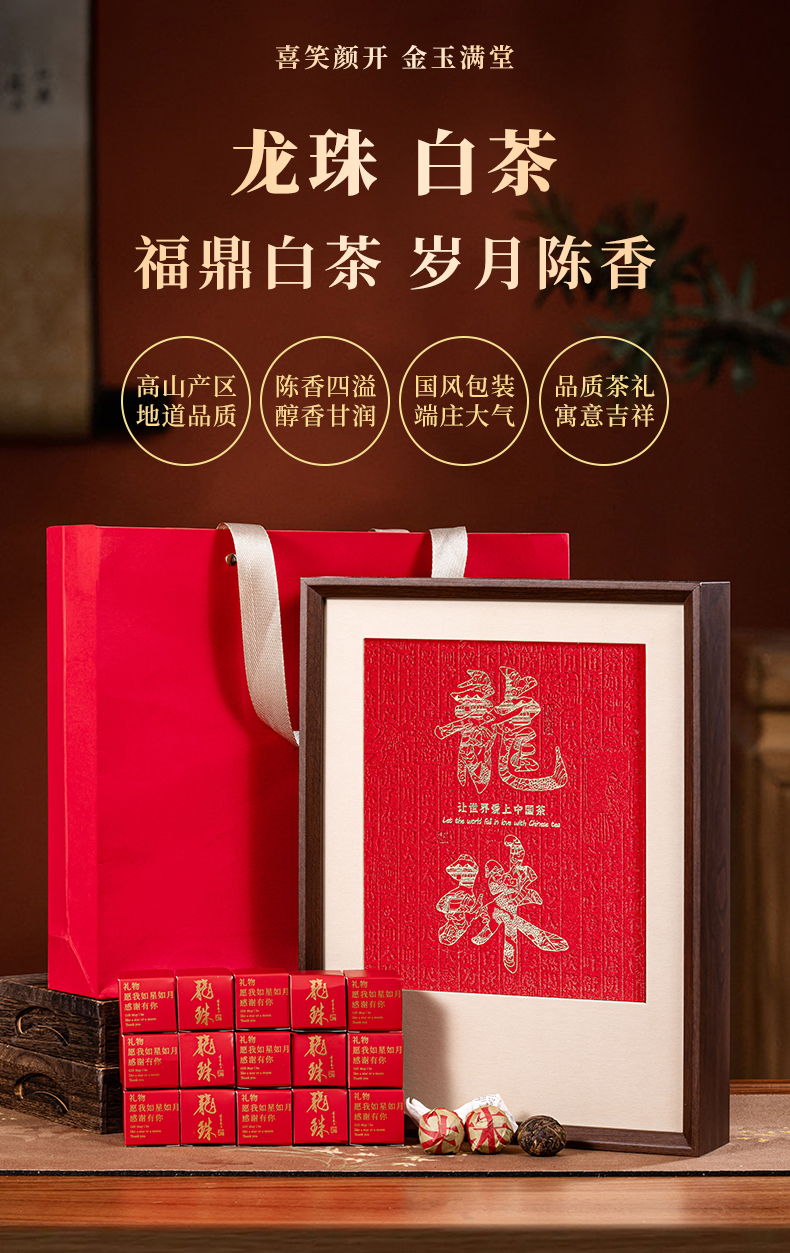 热卖中!!【东方雅意 非遗传承】 金奖龙珠白茶高端礼盒 陈香四溢 醇香甘润 国风包装 寓意吉祥 每颗独立包装30粒/盒