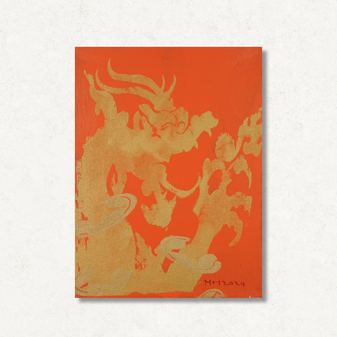 SHM138 孙洪敏《祥龙》40*40CM 布面油画 手绘原作 已装框(白色木制)艺术家本人特供 仅有1张现货顺丰包邮