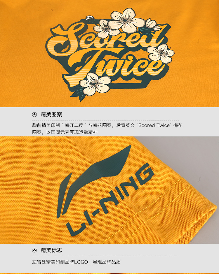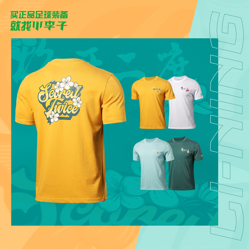 正品Lining/李宁足球运动休闲短袖男女款T恤文化衫AHSR411