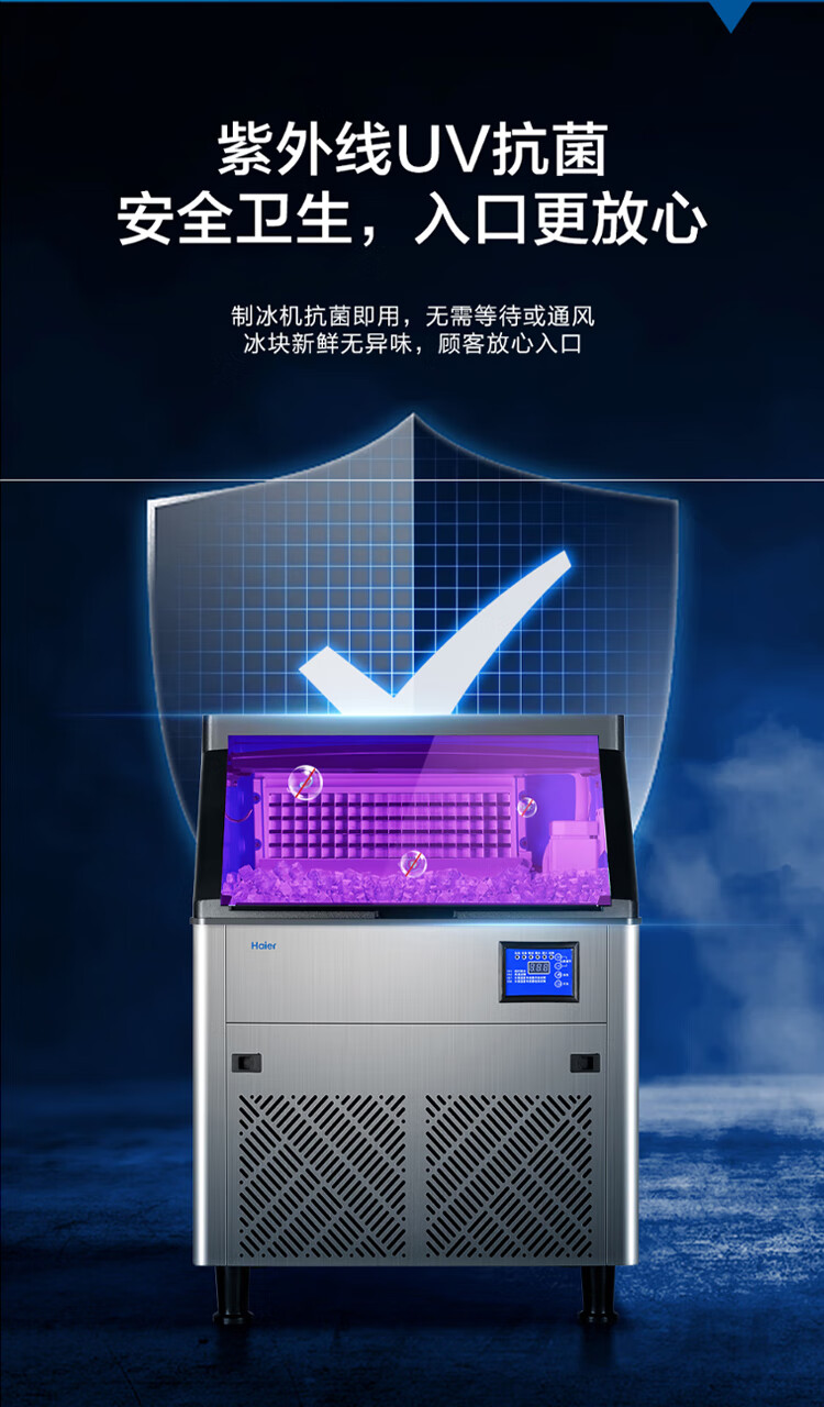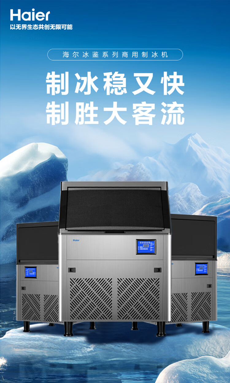 海尔制冰机大型商用奶茶店大容量全自动方冰块制作机器饮品店36公斤/55公斤/95公斤家用商用制冰冰箱 【 60冰格 55KG】IMY-55DL1SS 对规格咨询客服