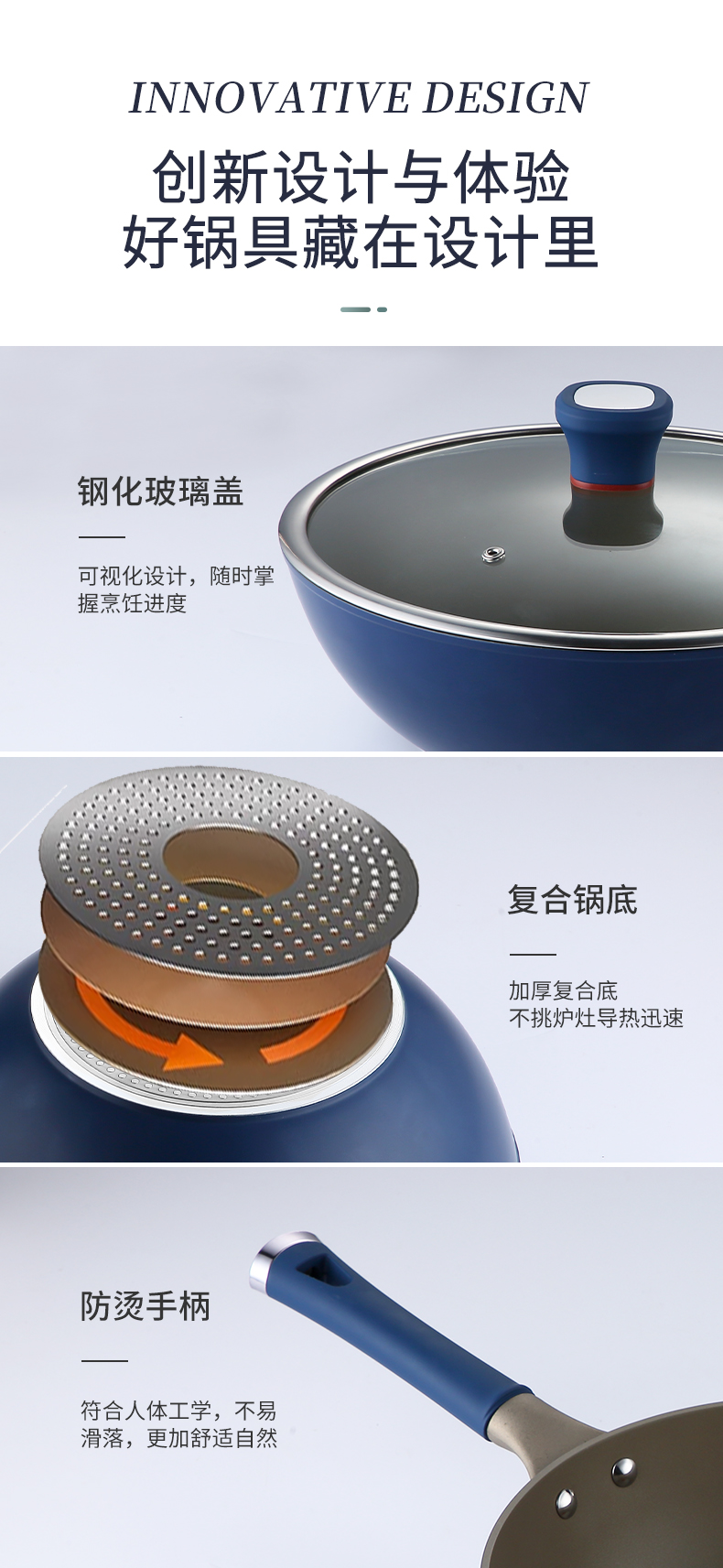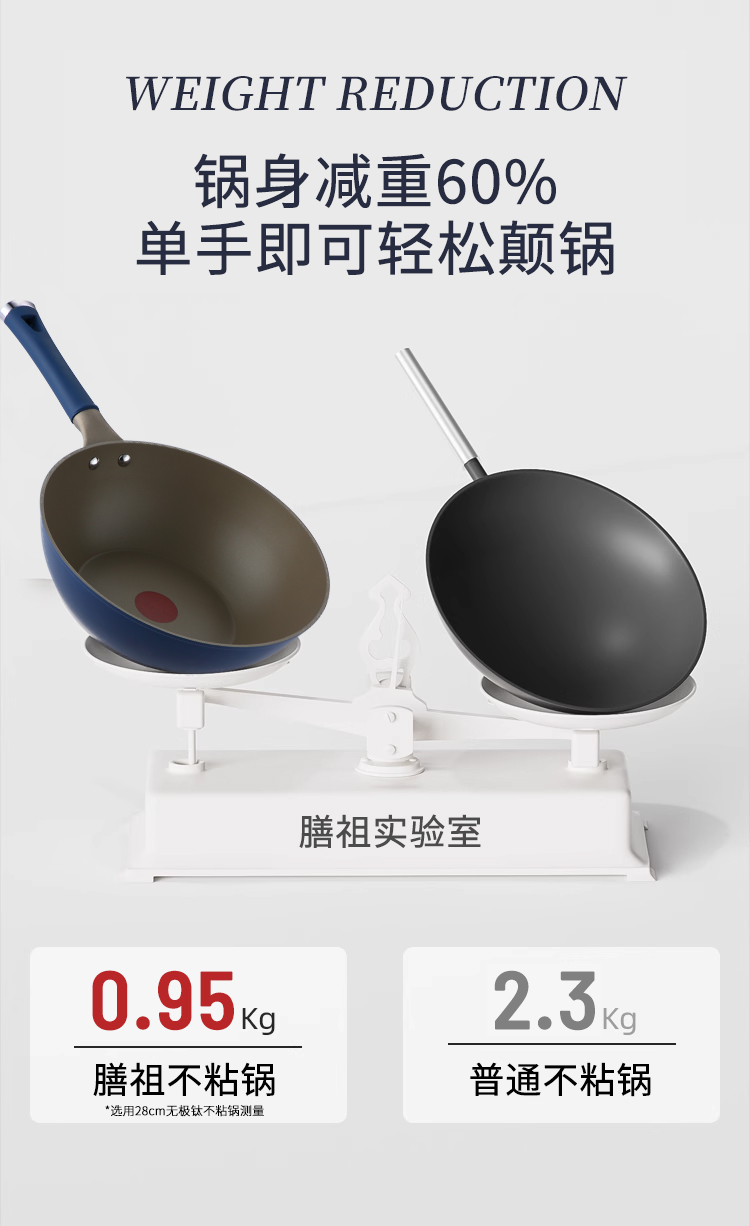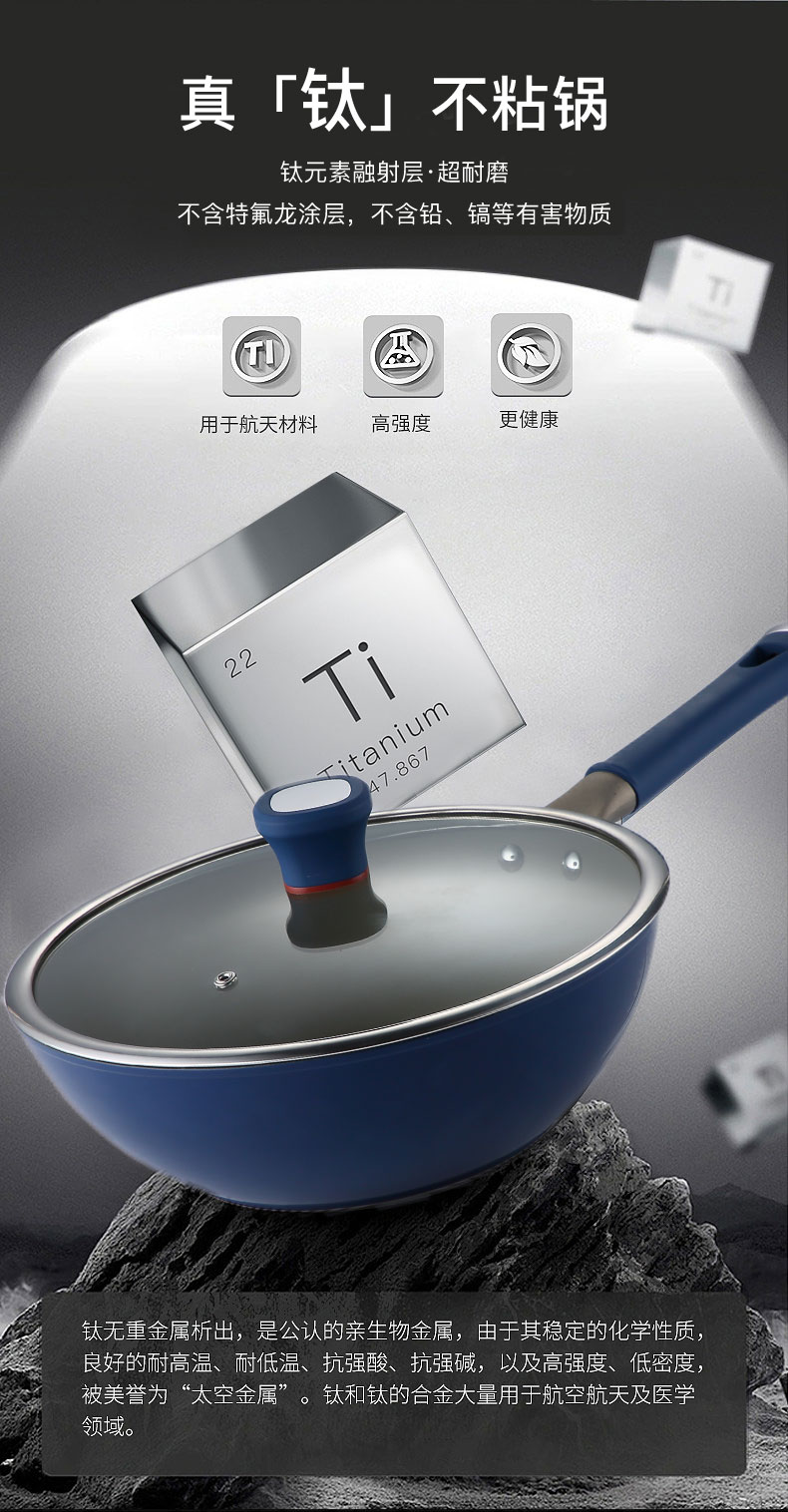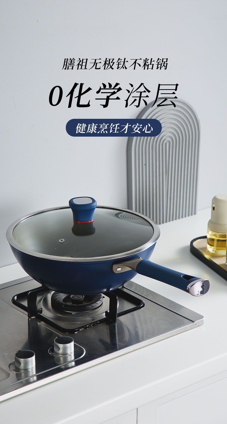 膳祖无极钛不粘锅 无化学图层 火红点智控温 健康烹饪更安心