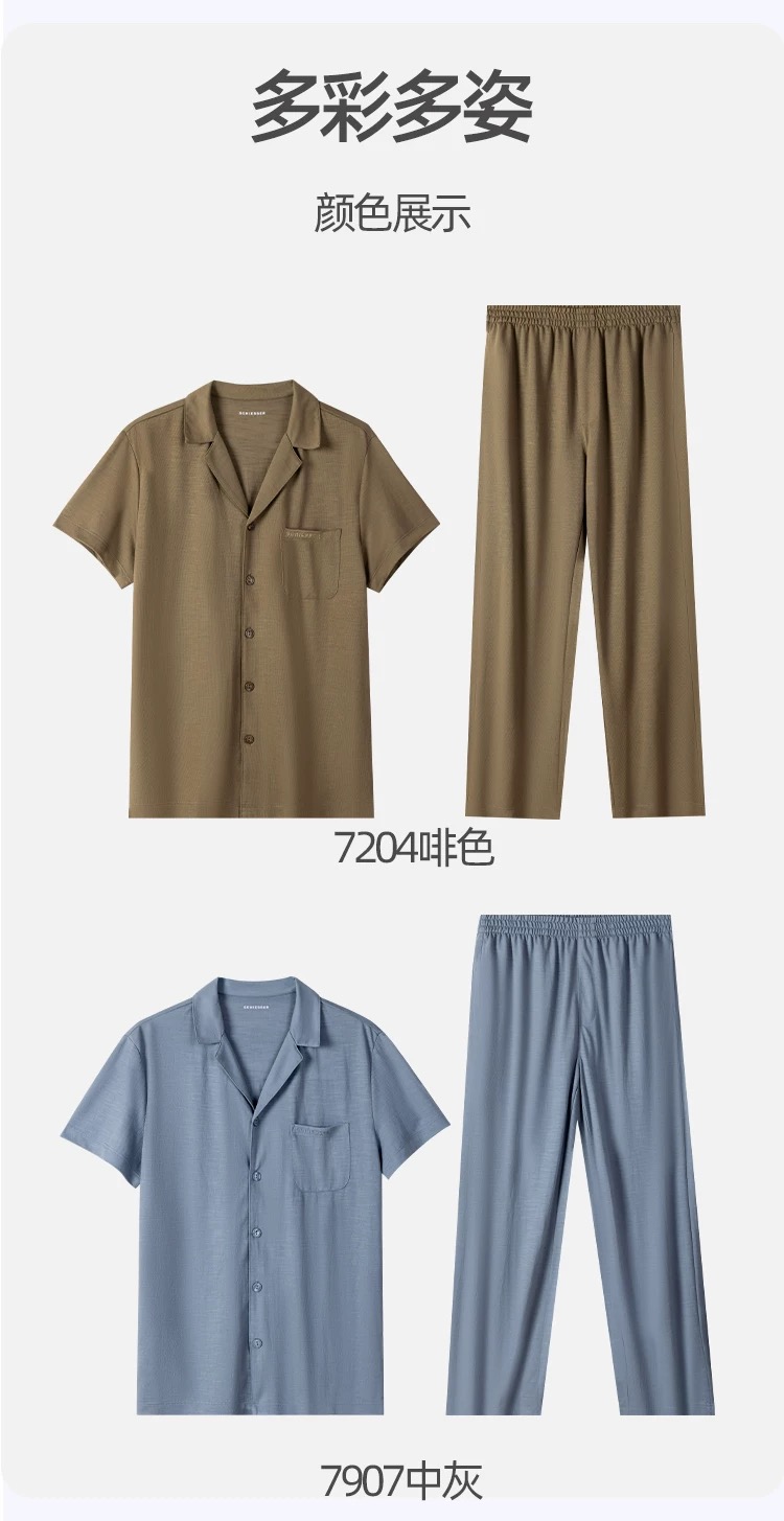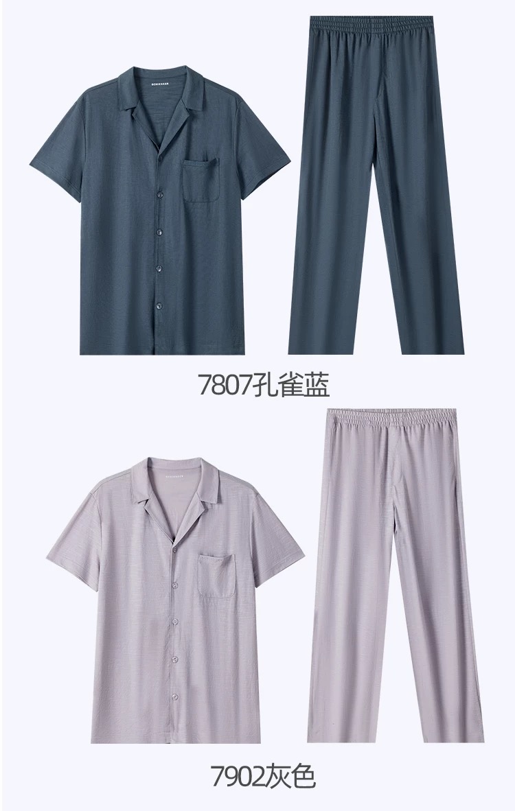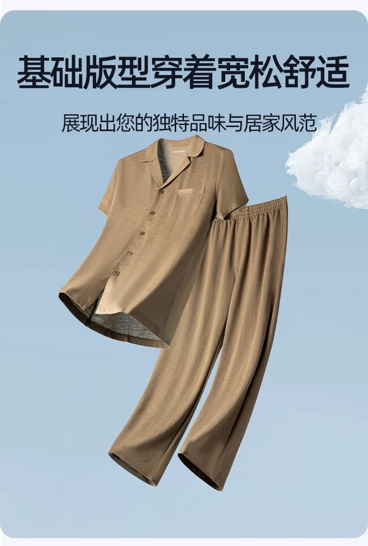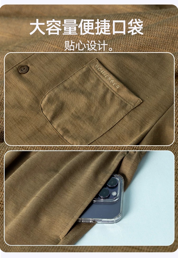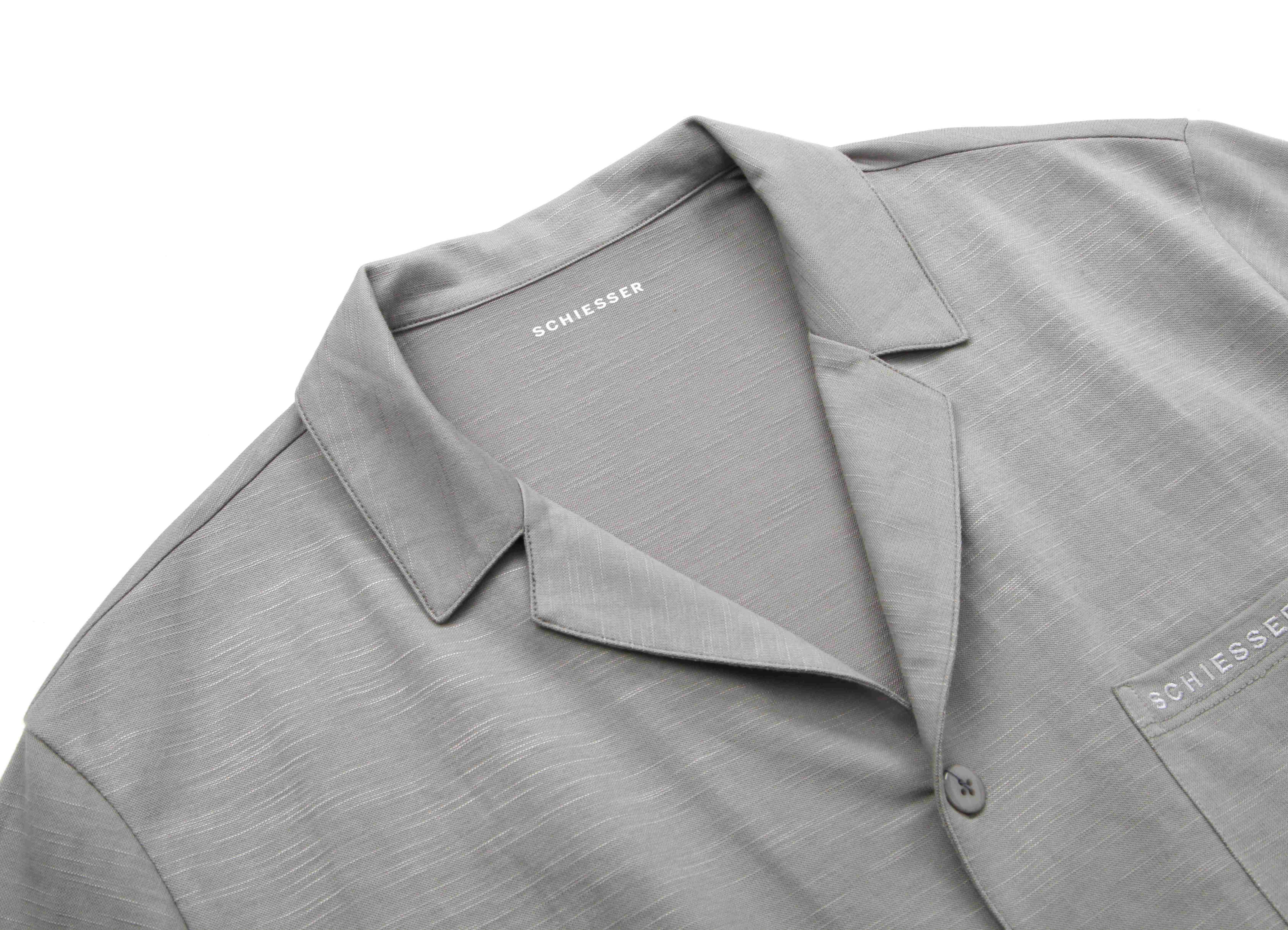 【科技麻】SCHIESSER 德国舒雅男士睡衣春夏款亚麻透气开衫棉莫代尔家居服短袖长裤套装35/21352H