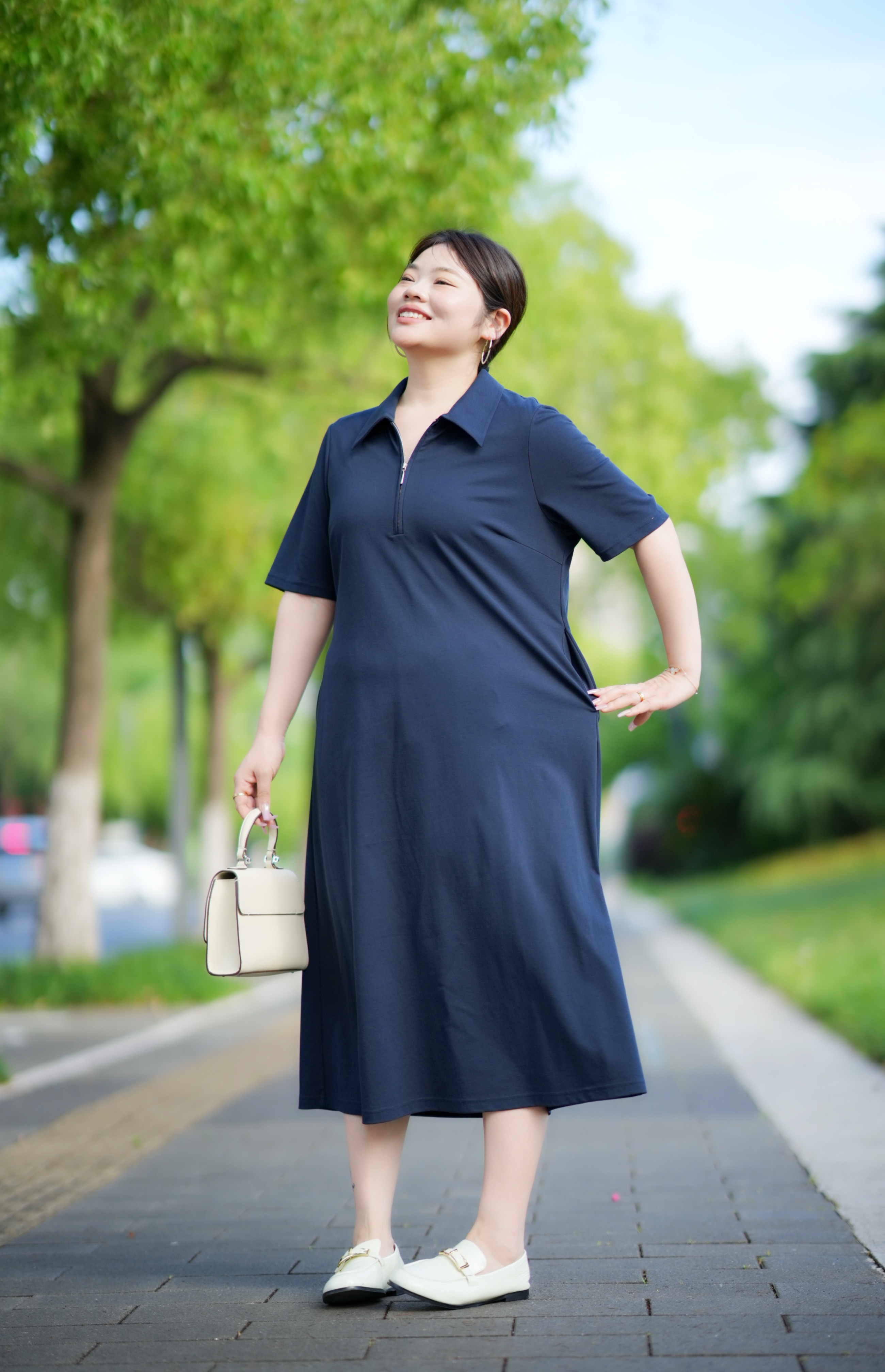 一件藏蓝裙,即可从容应对职场通勤的干练需求、日常休闲的舒适惬意、