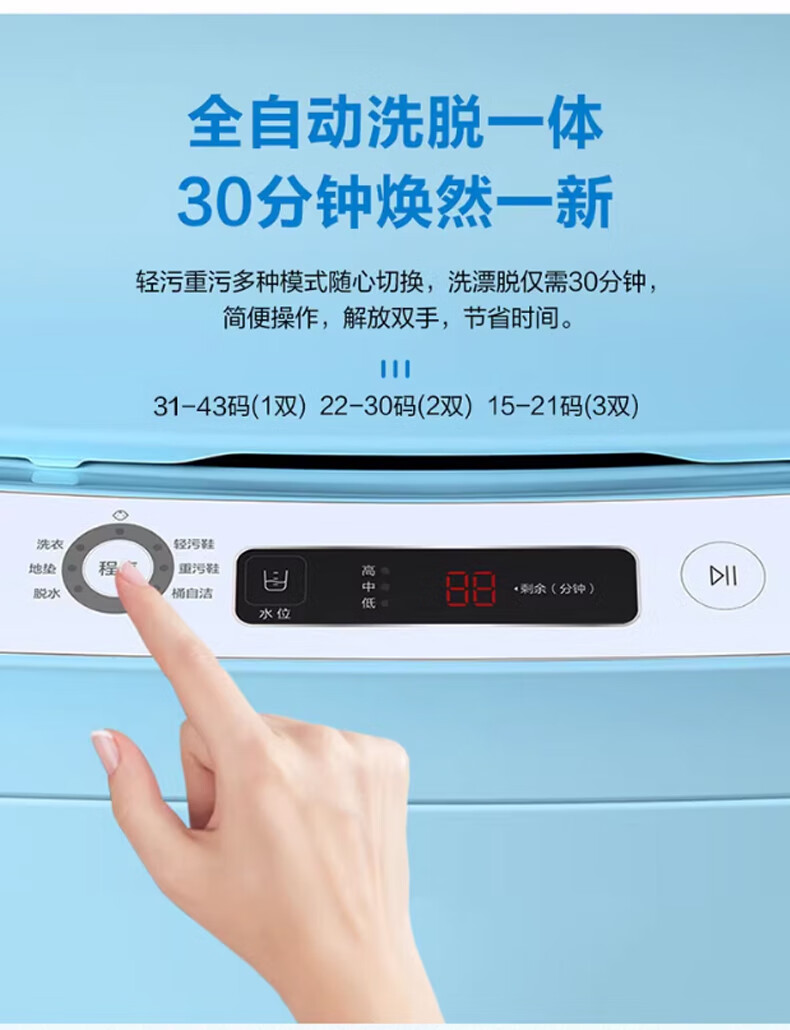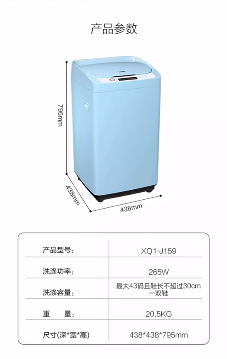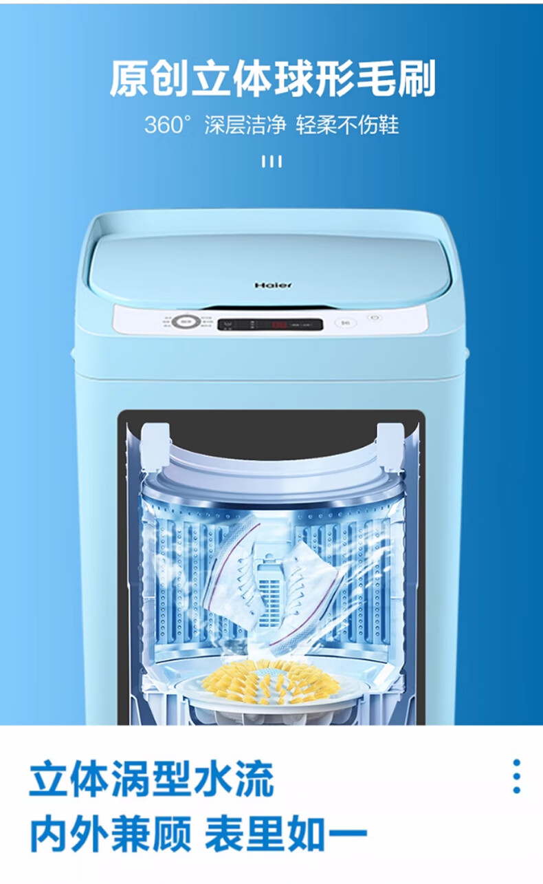 海尔(Haier)洗鞋迷你波轮洗衣机 3公斤家用洗鞋懒人神器 电离除菌>99% 可洗43码不卡鞋360°洁净J159