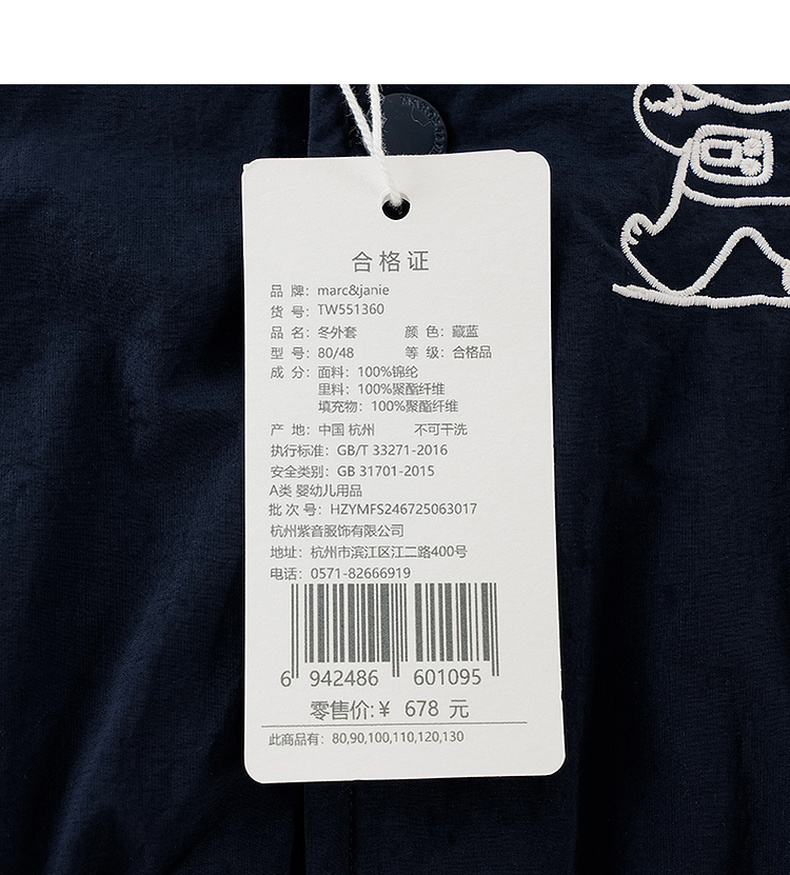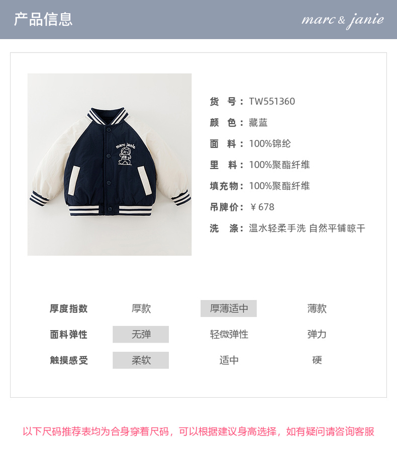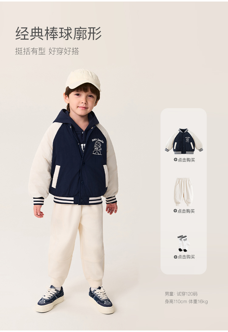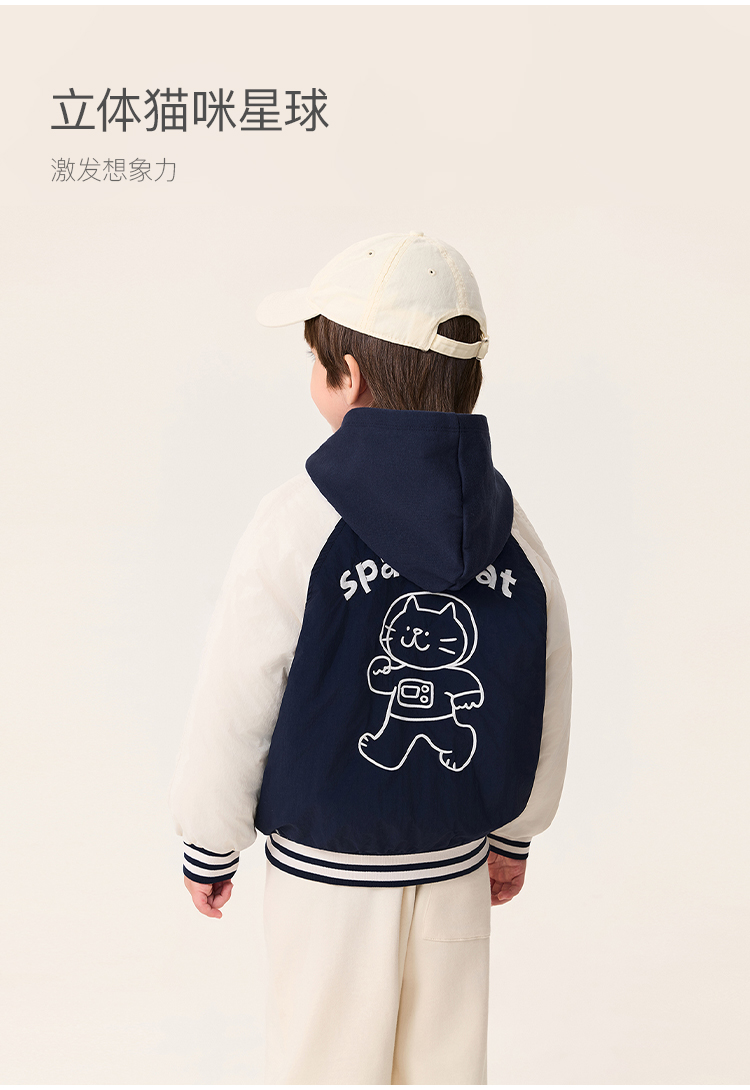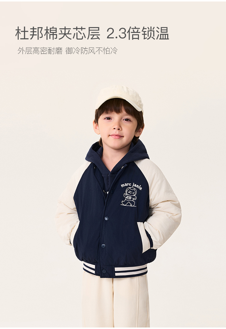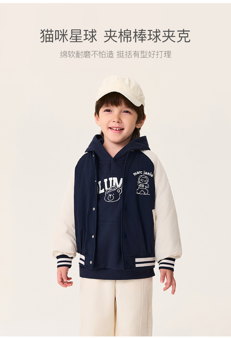 【无氟防泼水】马克珍妮男童猫咪星球夹棉棒球夹克秋冬新款551360